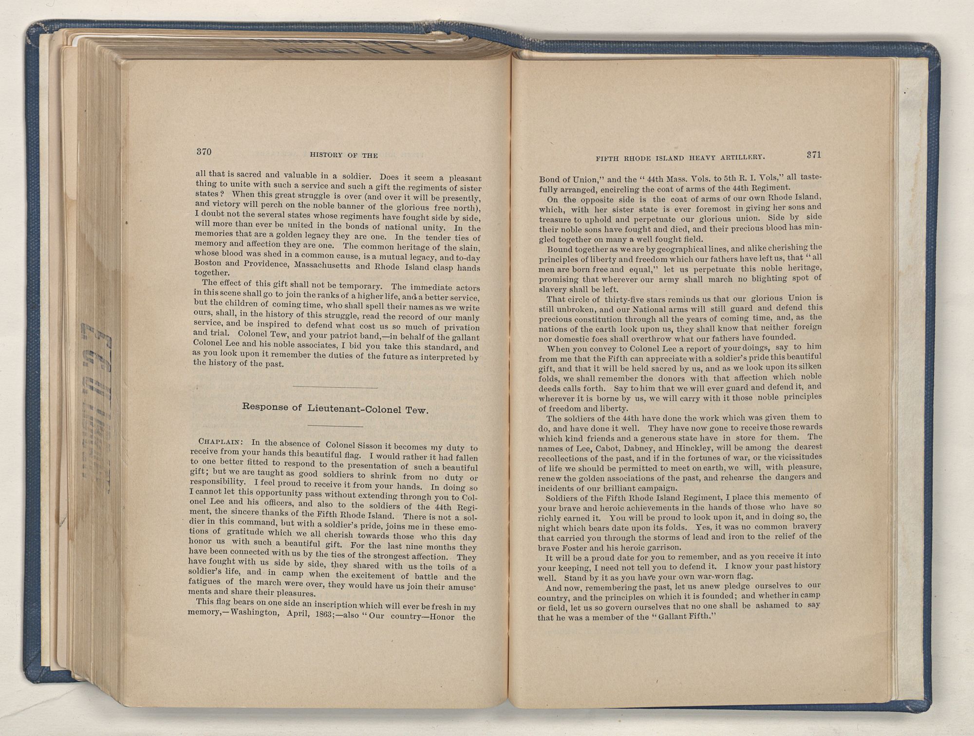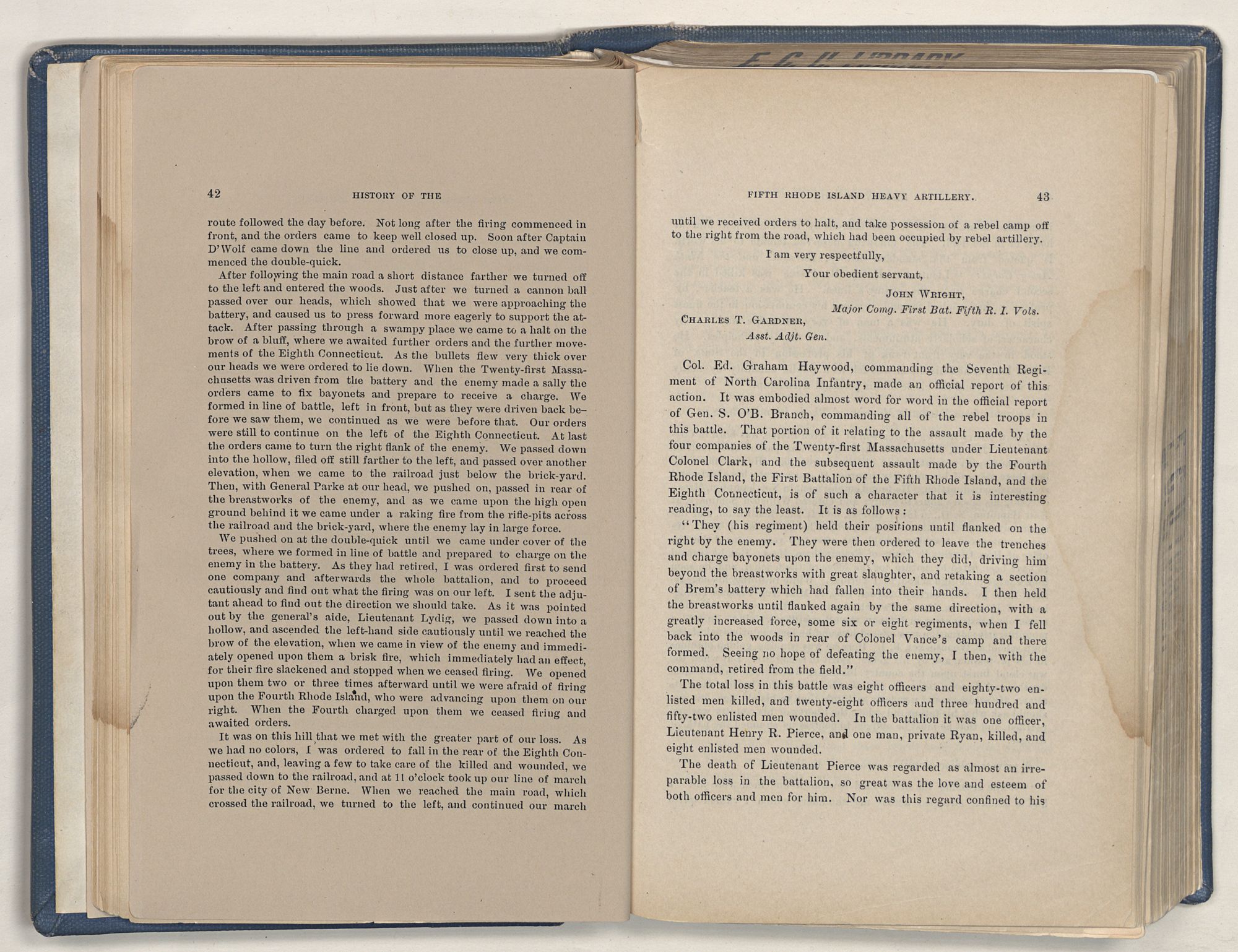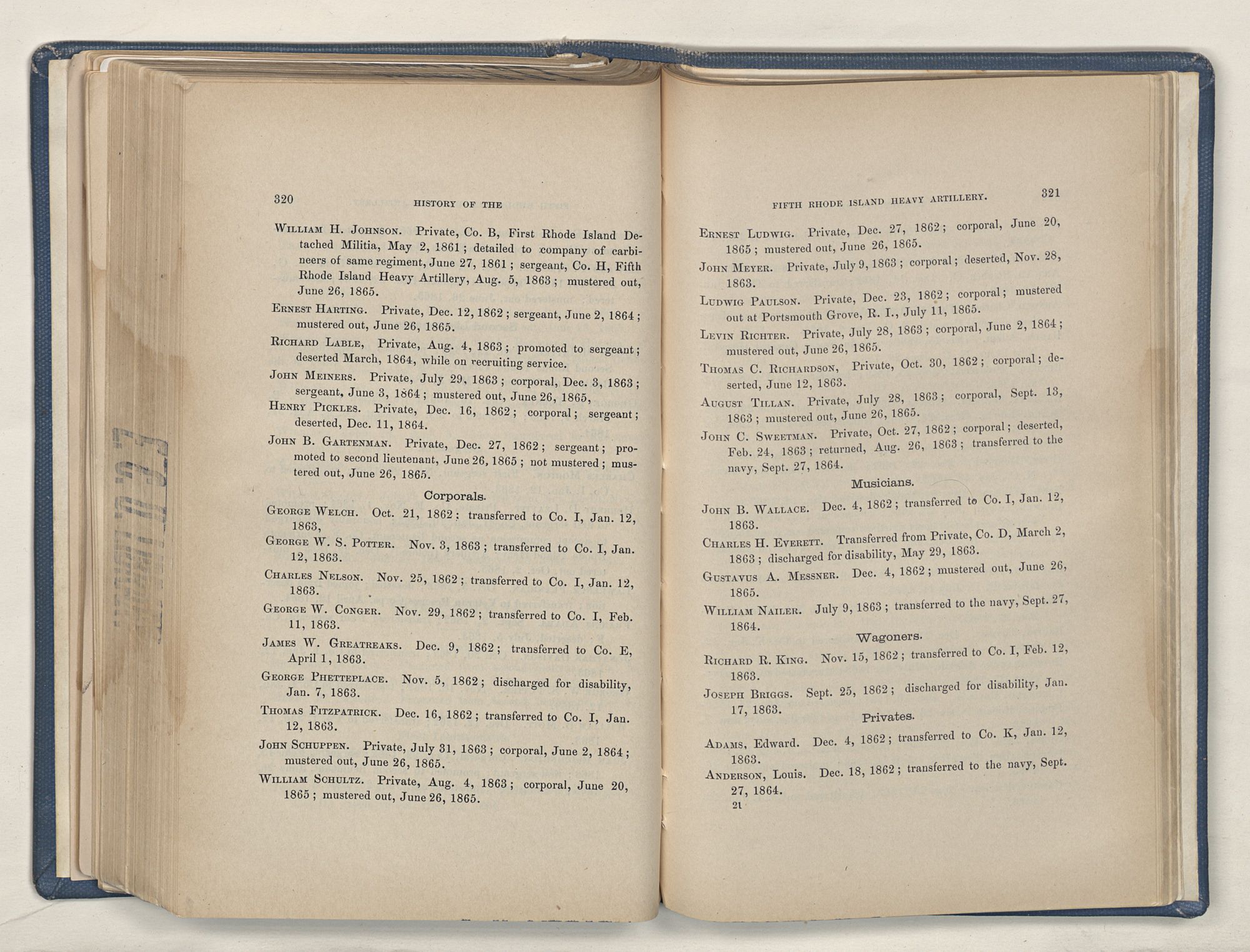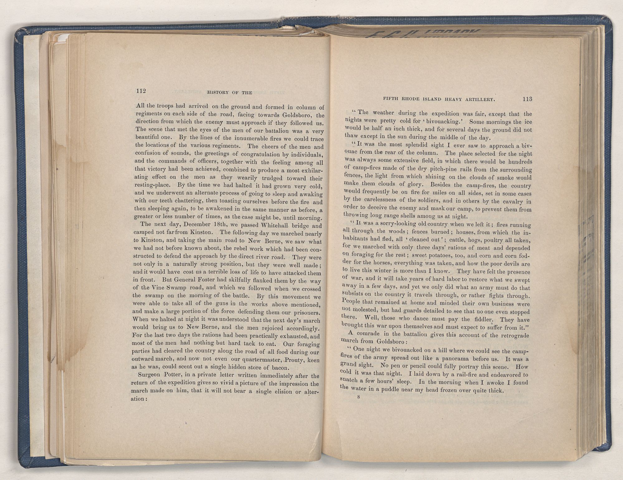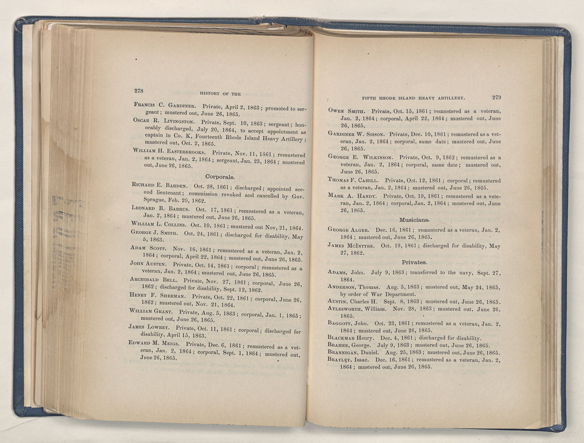 Henry T. Sisson, Colonel Commanding 5th Regiment Rhode Island ArtilleryHISTORYOF THEFIFTH REGIMENTOF Rhode Island Heavy Artillery,DURINGTHREE YEARS AND A HALF OF SERVICE INNORTH CAROLINA. January 1862-June 1865. COMPILED UNDER THE SUPERVISION OFJohn K. Burlingame.PROVIDENCE:SNOW & FARNHAM.Printers and Publishers,1892.