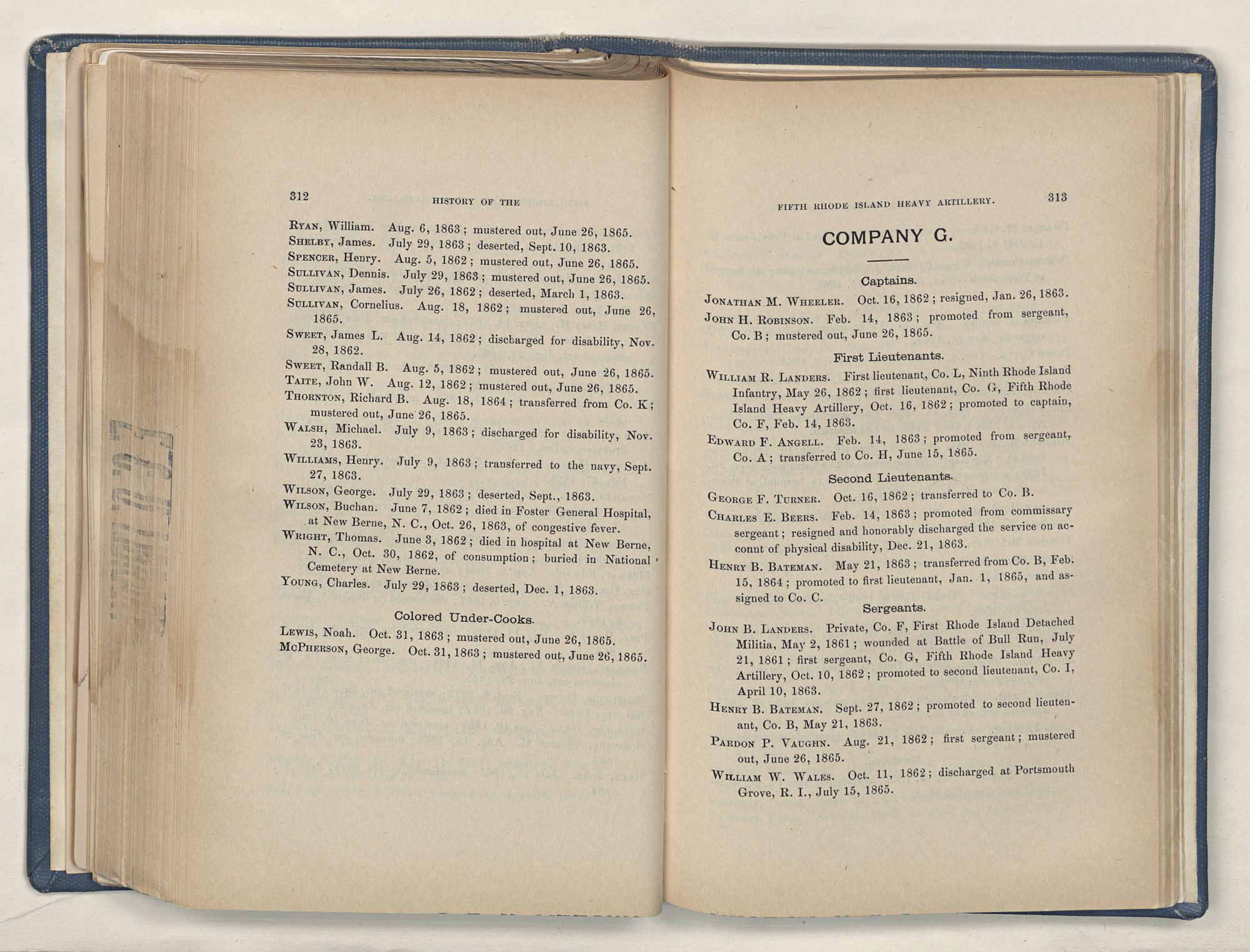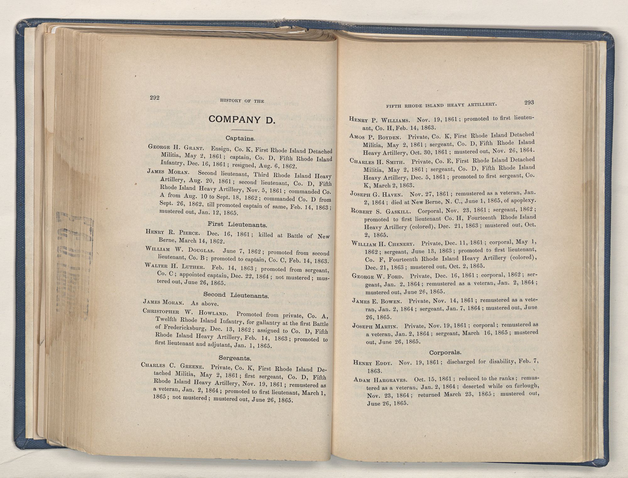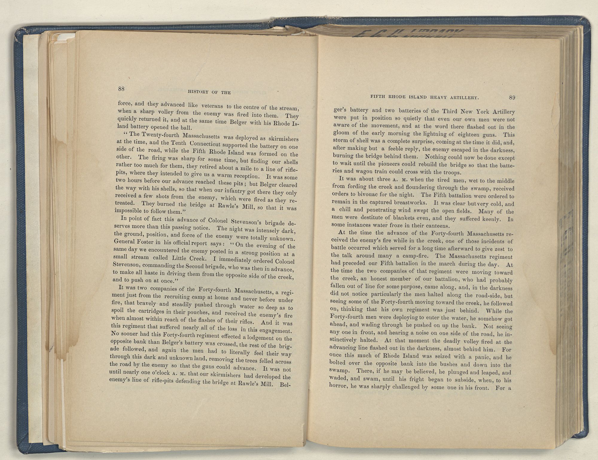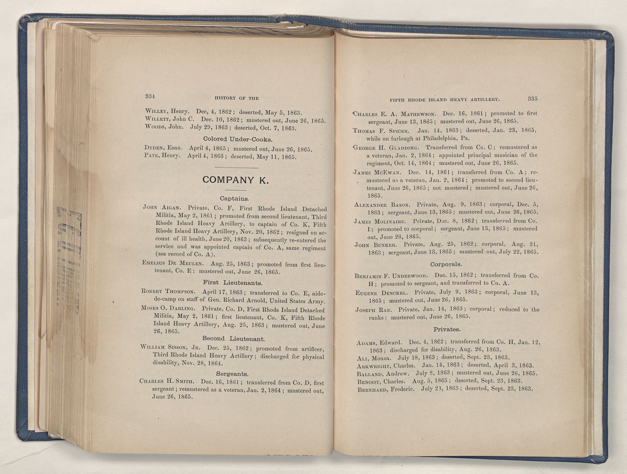 At the twentieth Annual Reunion of the Fifth Rhode Island and Battery F Veteran Association, held at Silver Spring, on Friday, July 25, 1890, a Committee consisting of Comrades Colonel James Moran, Dr. Albert Potter, Joshua C. Drown, Jr., William H. Chenery, and Christopher W. Howland, was appointed to petition the General Assembly for an appropriation to assist the Committee to publish a history of the Fifth Rhode Island Heavy Artillery.