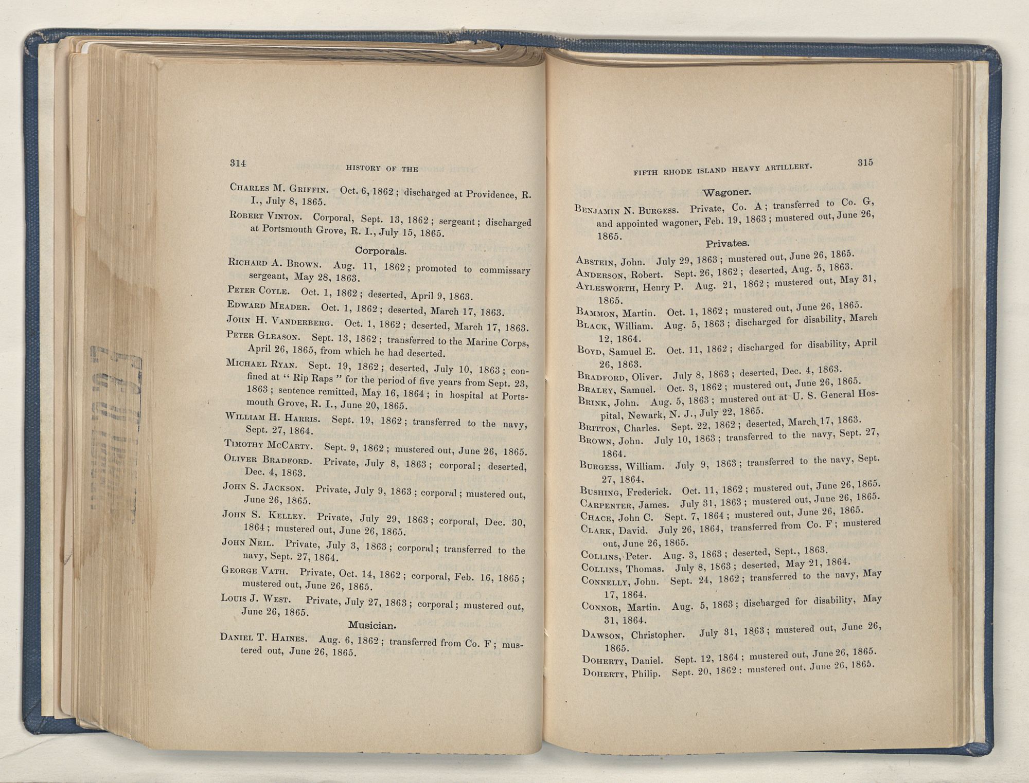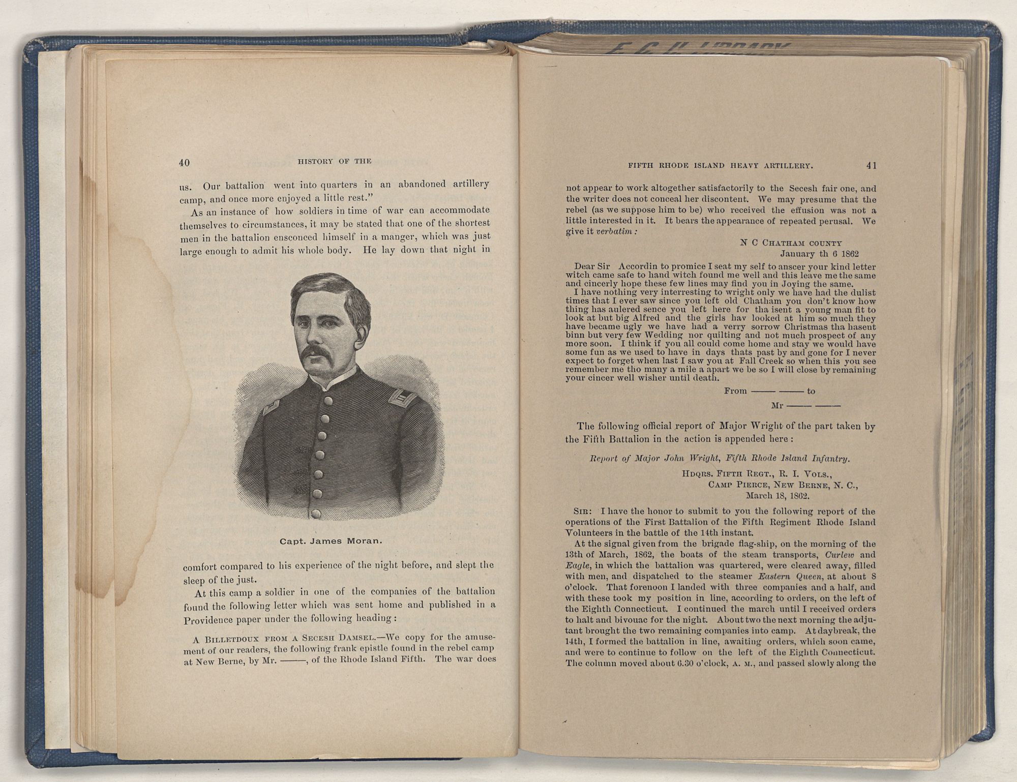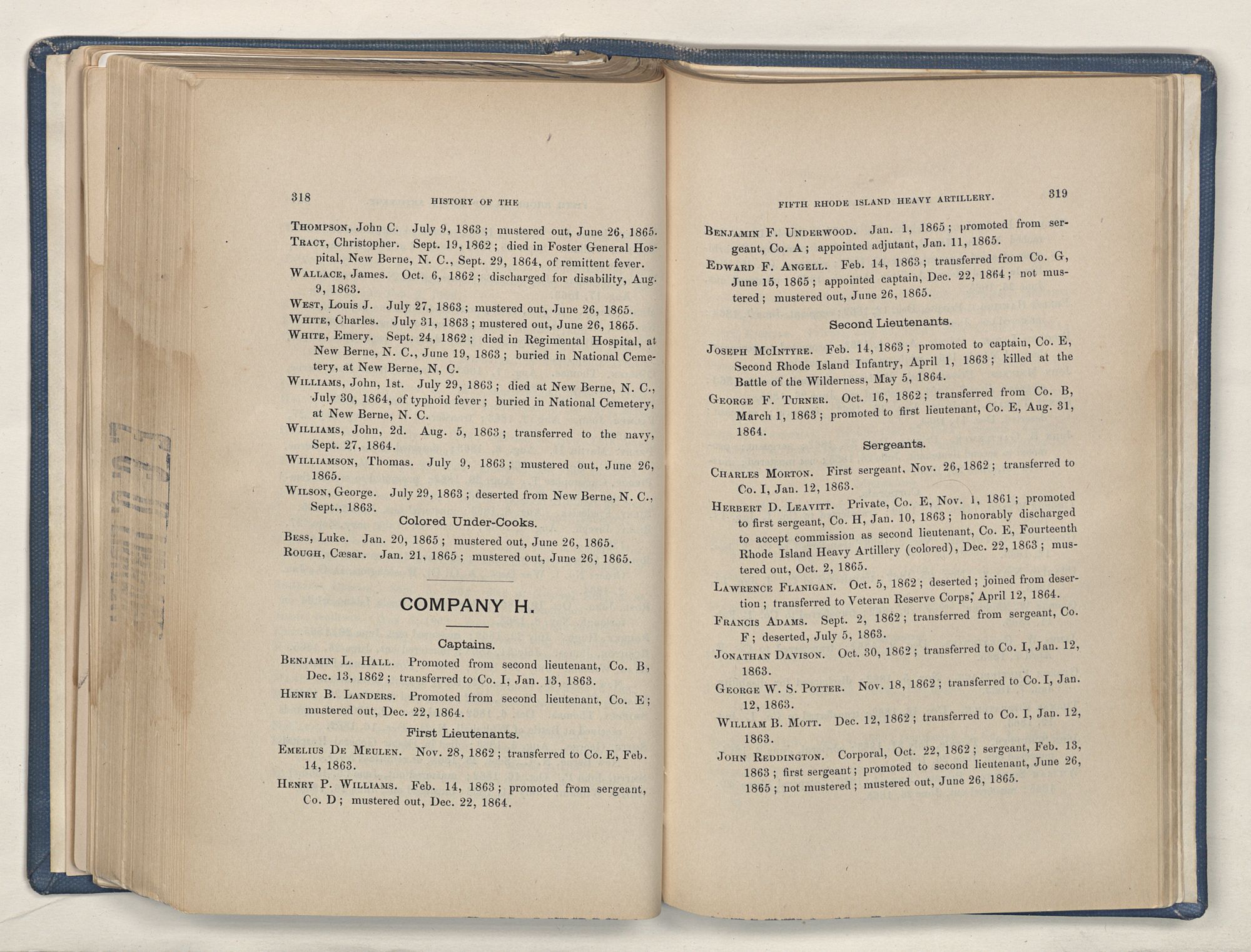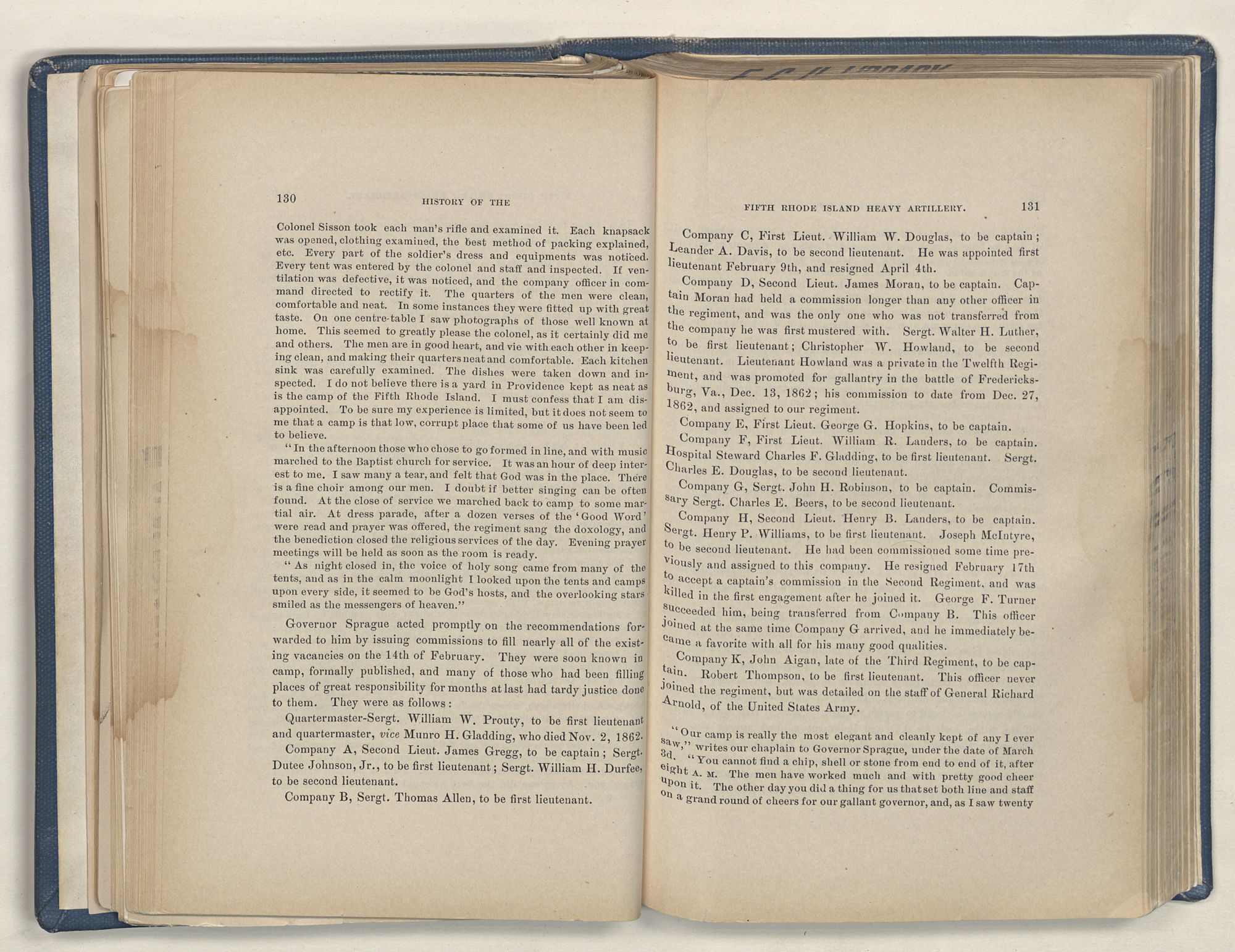 At the twentieth Annual Reunion of the Fifth Rhode Island and Battery F Veteran Association, held at Silver Spring, on Friday, July 25, 1890, a Committee consisting of Comrades Colonel James Moran, Dr. Albert Potter, Joshua C. Drown, Jr., William H. Chenery, and Christopher W. Howland, was appointed to petition the General Assembly for an appropriation to assist the Committee to publish a history of the Fifth Rhode Island Heavy Artillery.