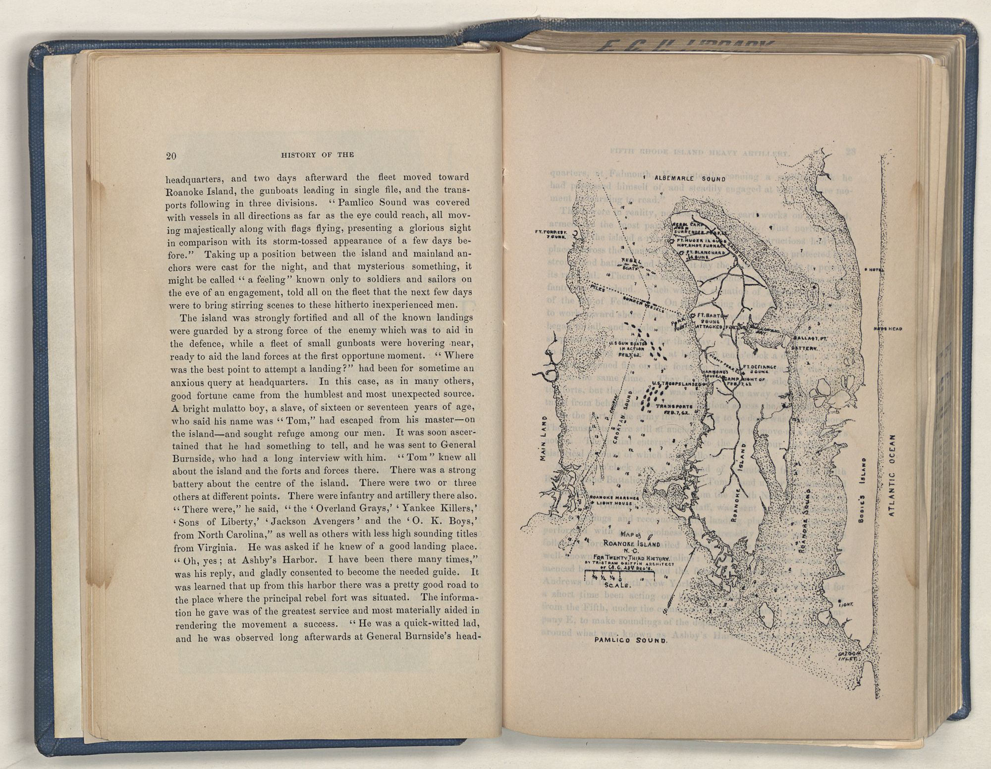 General plan of operations—Off for Roanoke Island—Waiting to land — The slave boy “Tom,” and his information — “Tom” guides a reconnoitering party of the Fifth to Ashby's Landing — The party fired upon by the rebels — Corporal Viall wounded — The army lands—Battle of Roanoke Island — The rebel forces compelled to surrender—The Fifth guards the hospital—Incidents—Expedition up Currituck Sound—Adventures of the Rhode Island boys on the mainland—Roanoke Island made secure—Kindness of General Burnside, . . . . 19-29