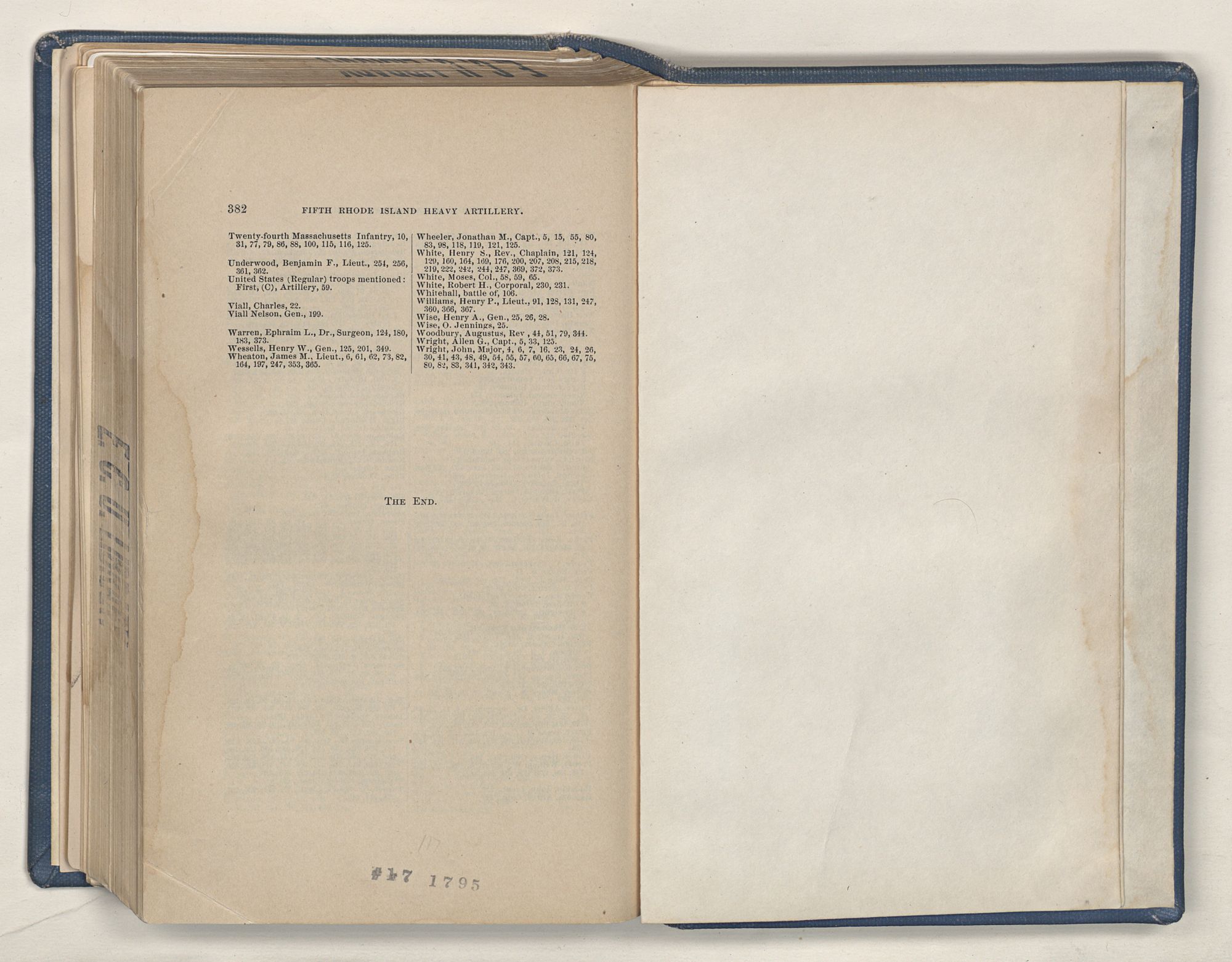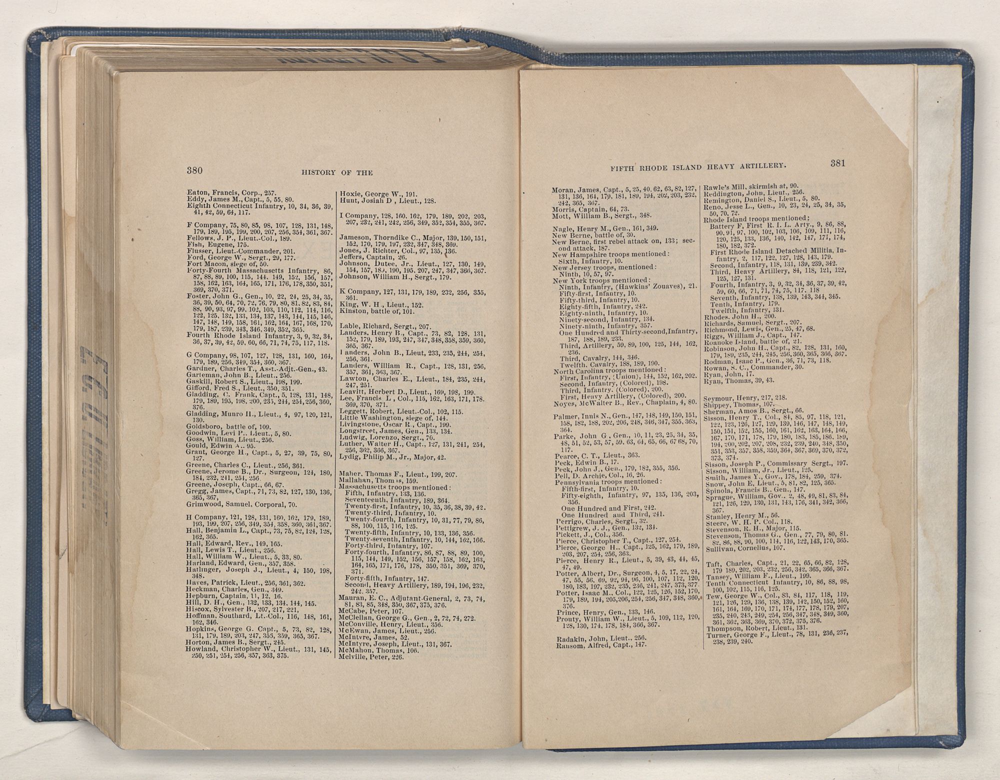 Battery F, First R. I. L. Arty., 9, 86, 88, 90, 91, 97, 100, 102, 103, 106, 109, 111, 116, 120, 125, 133, 136, 140, 142, 147, 171, 174, 180, 182, 372.