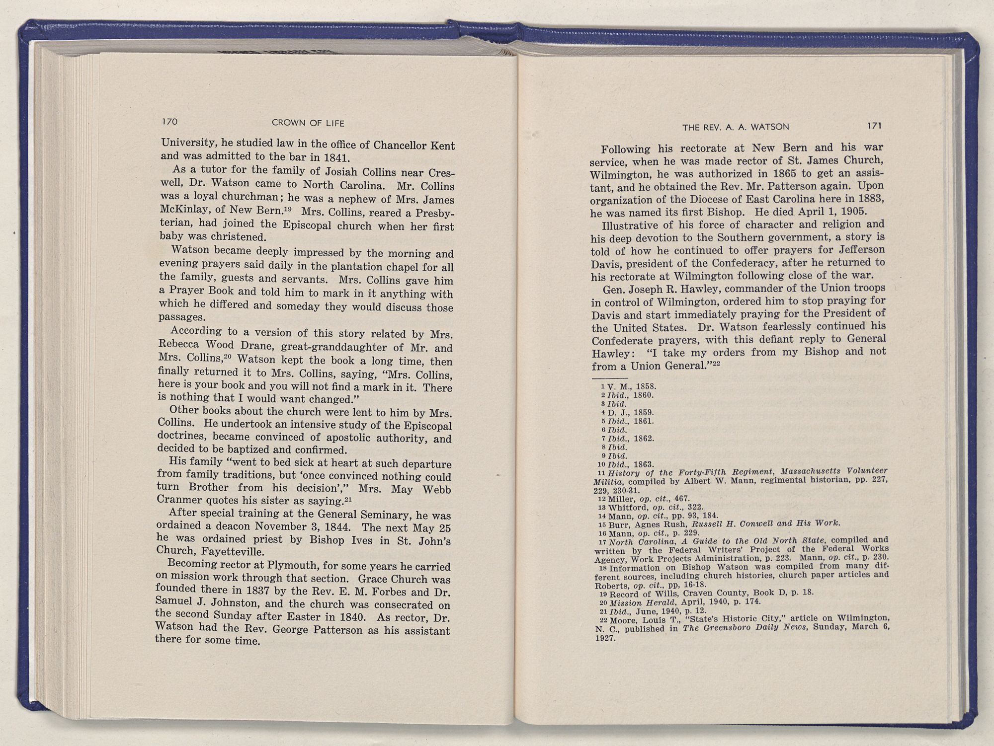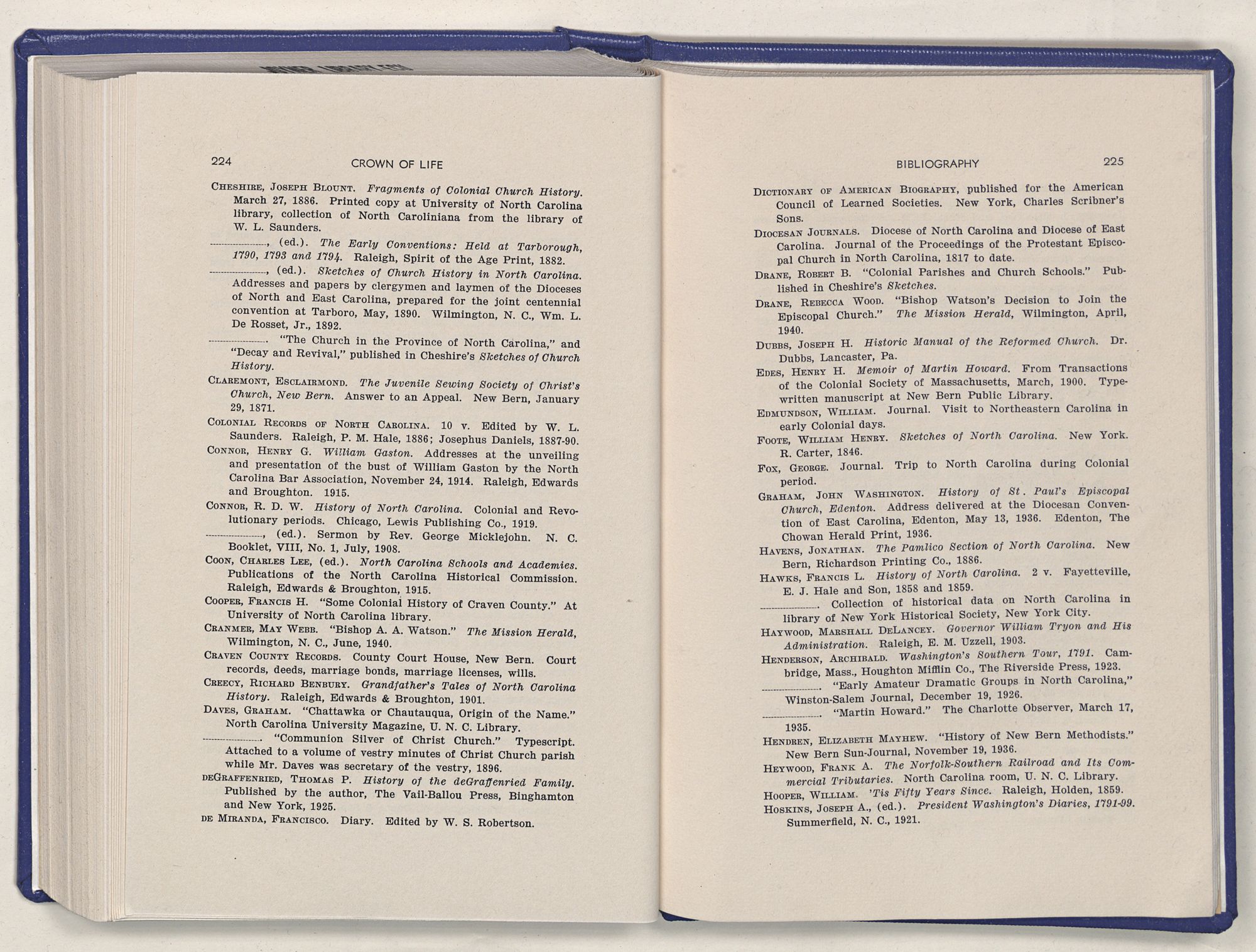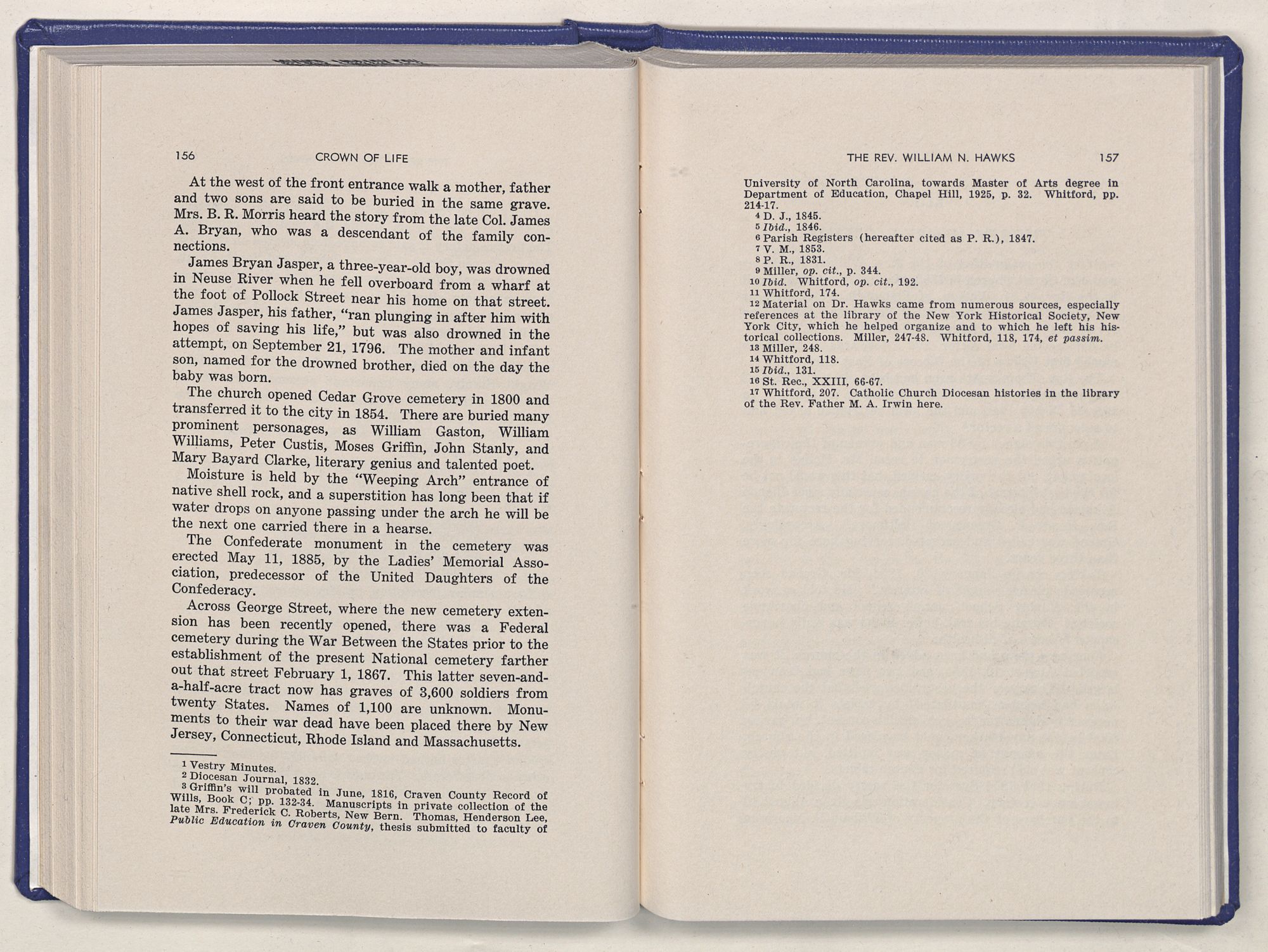 Crown of LifeHISTORY OF CHRIST CHURCH NEW BERN, N. C. 1715-1940BY GERTRUDE S. CARRAWAYAUTHORIZED BY THE VESTRY OF CHRIST CHURCH PROTESTANT EPISCOPAL CHURCH THE REV. CHARLES E. WILLIAMS, RECTOR E. K. BISHOP, SENIOR WARDENNEW BERNOWEN G. DUNN, PUBLISHER1940