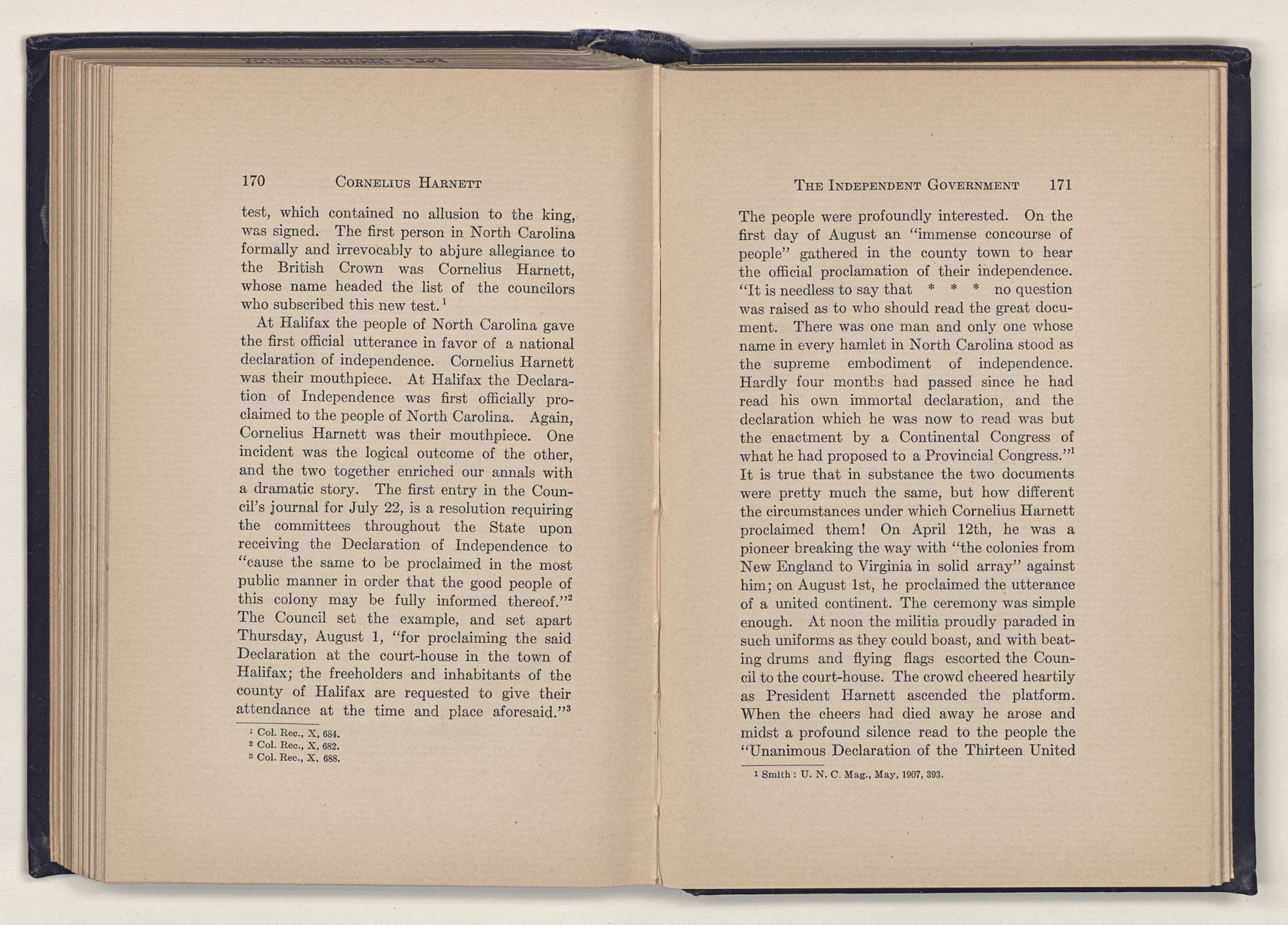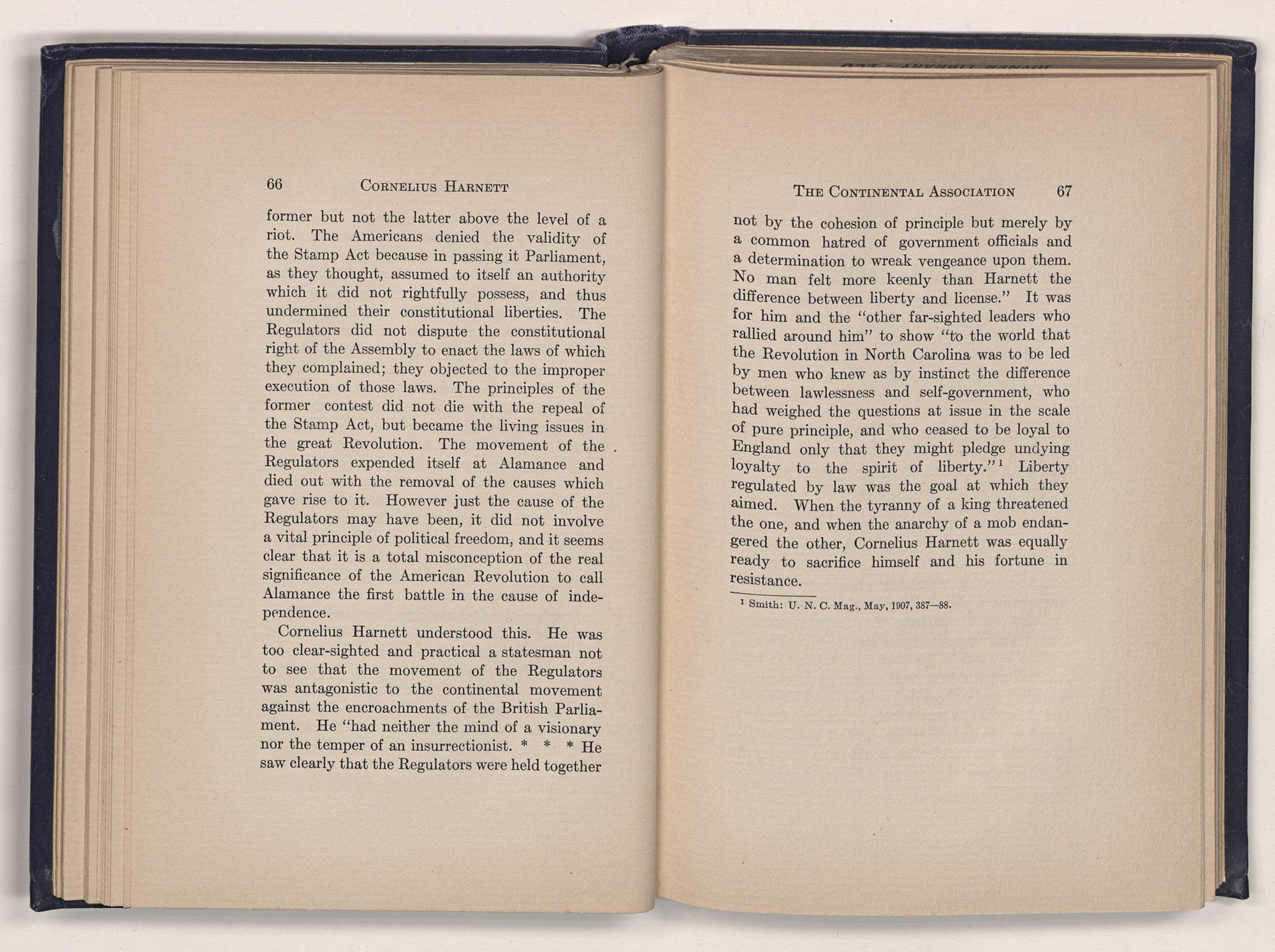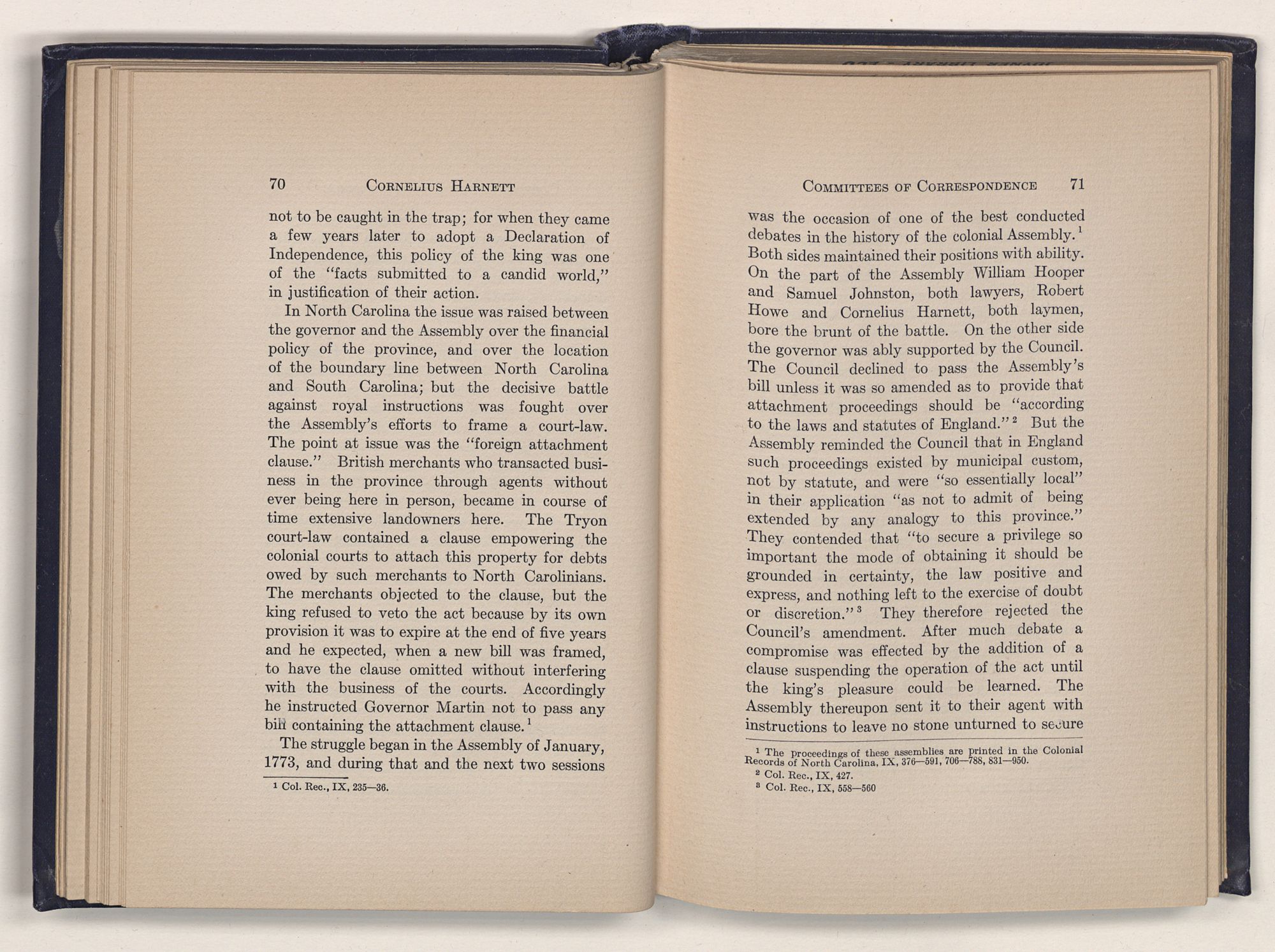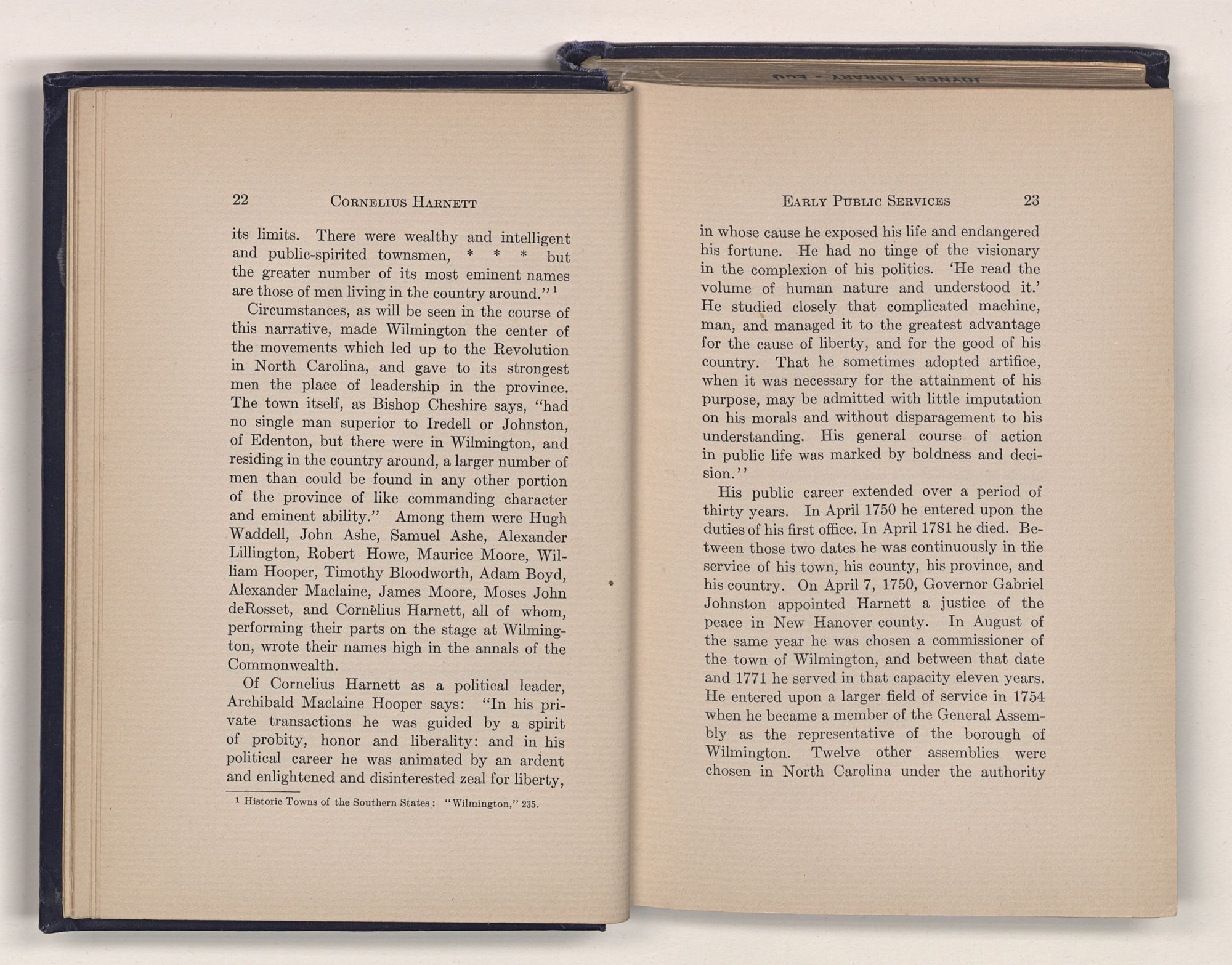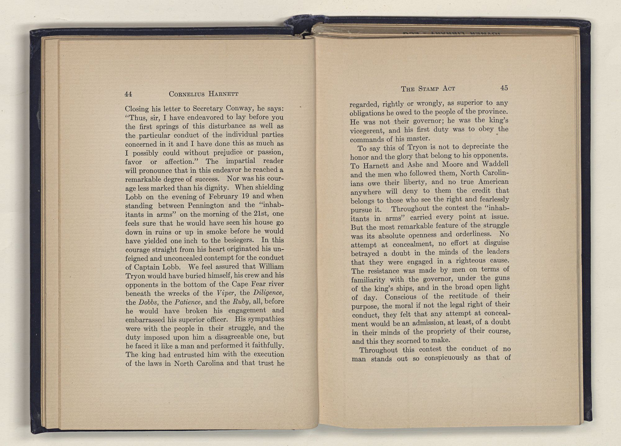 1 C. Alphonso Smith: “Our Debt to Cornelius Harnett,” in North Carolina University Magazine, May 1907, 379.Act and witnessed the gathering of the storm which broke into Revolution in 1775.