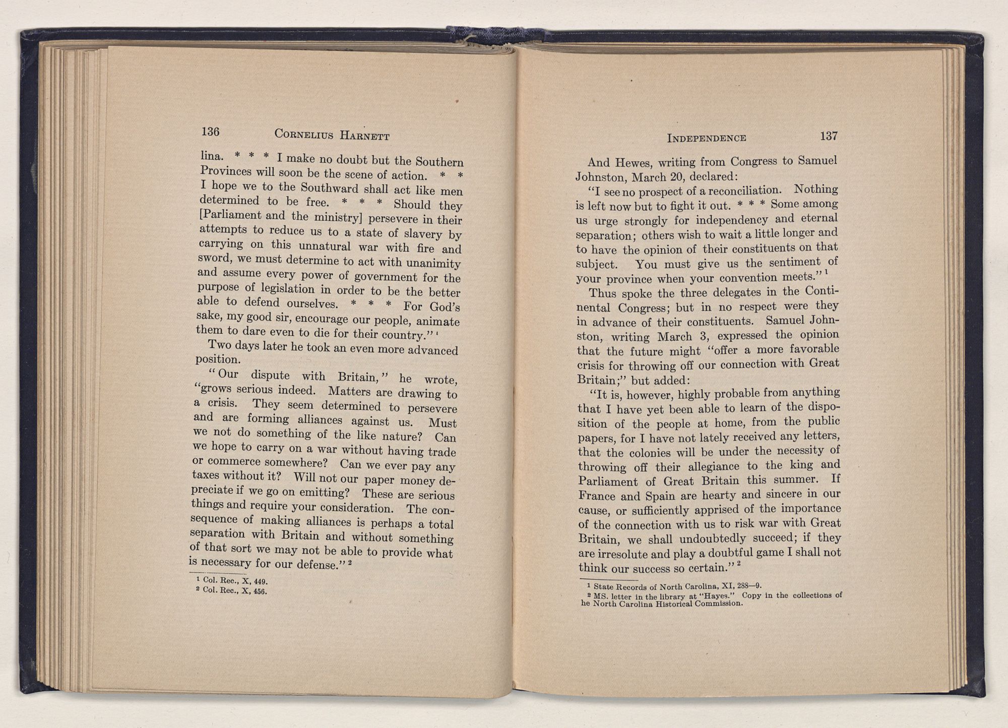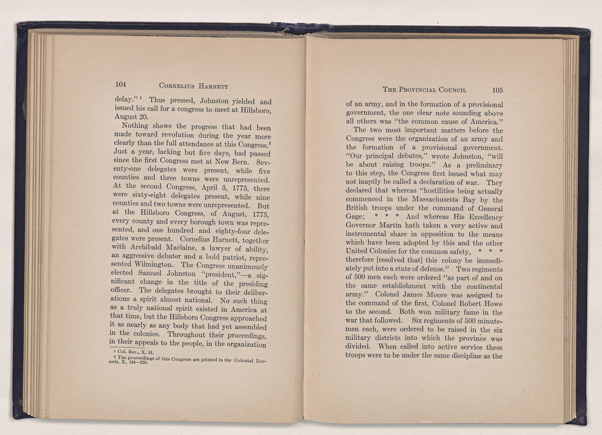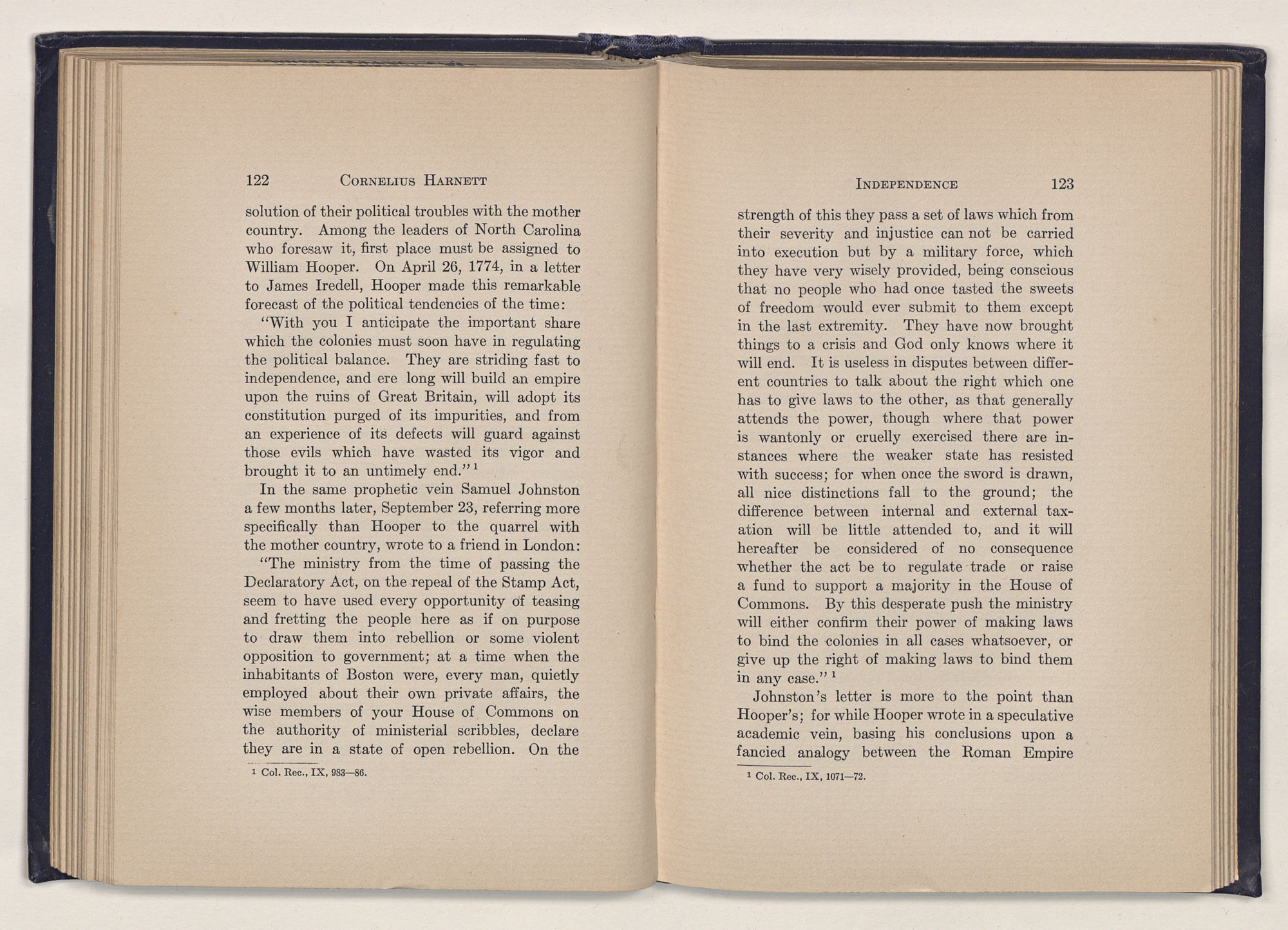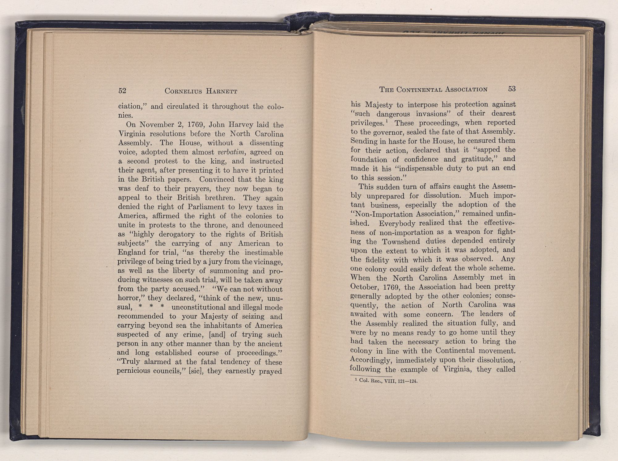 1 C. Alphonso Smith: “Our Debt to Cornelius Harnett,” in North Carolina University Magazine, May 1907, 379.Act and witnessed the gathering of the storm which broke into Revolution in 1775.