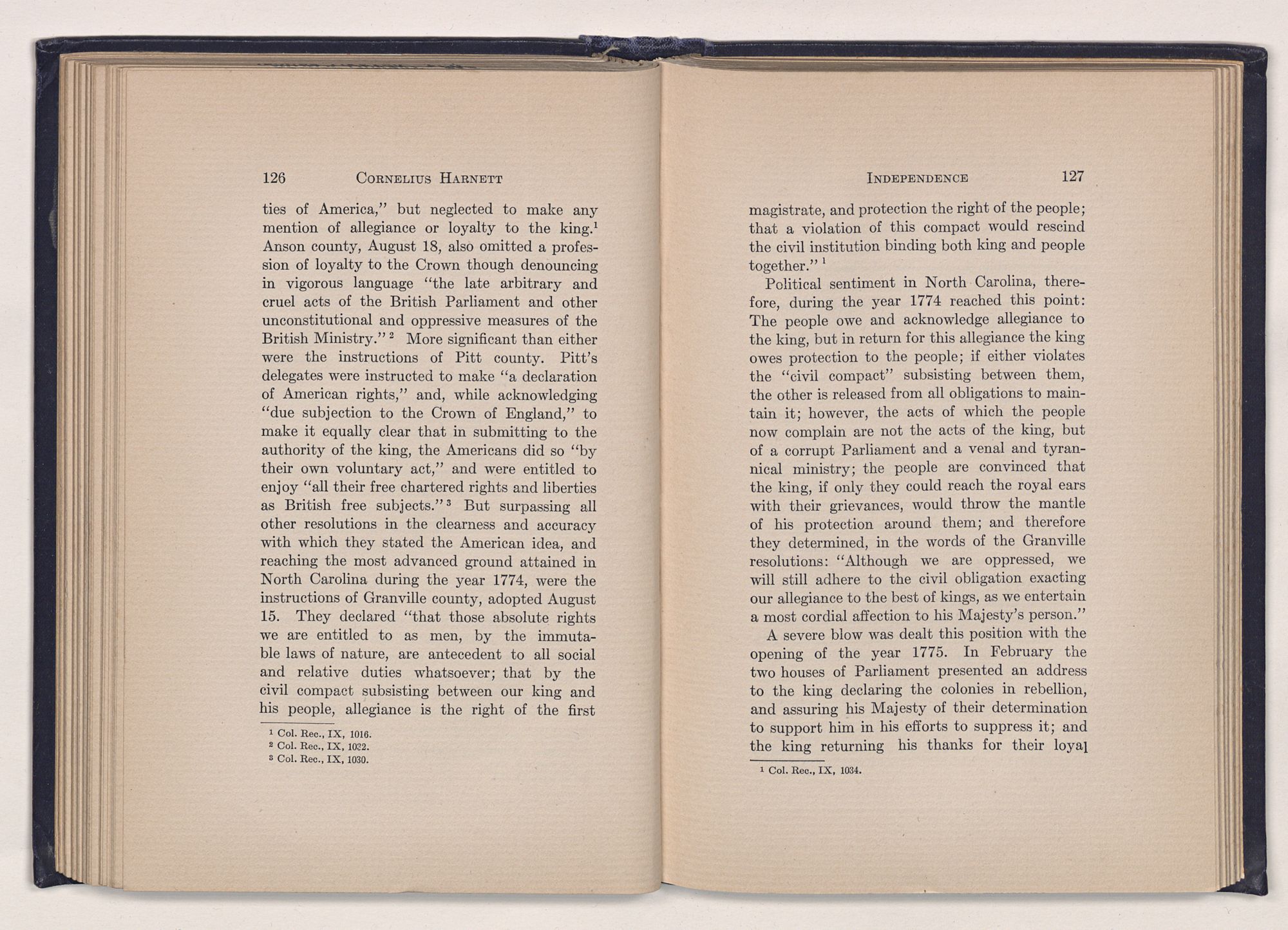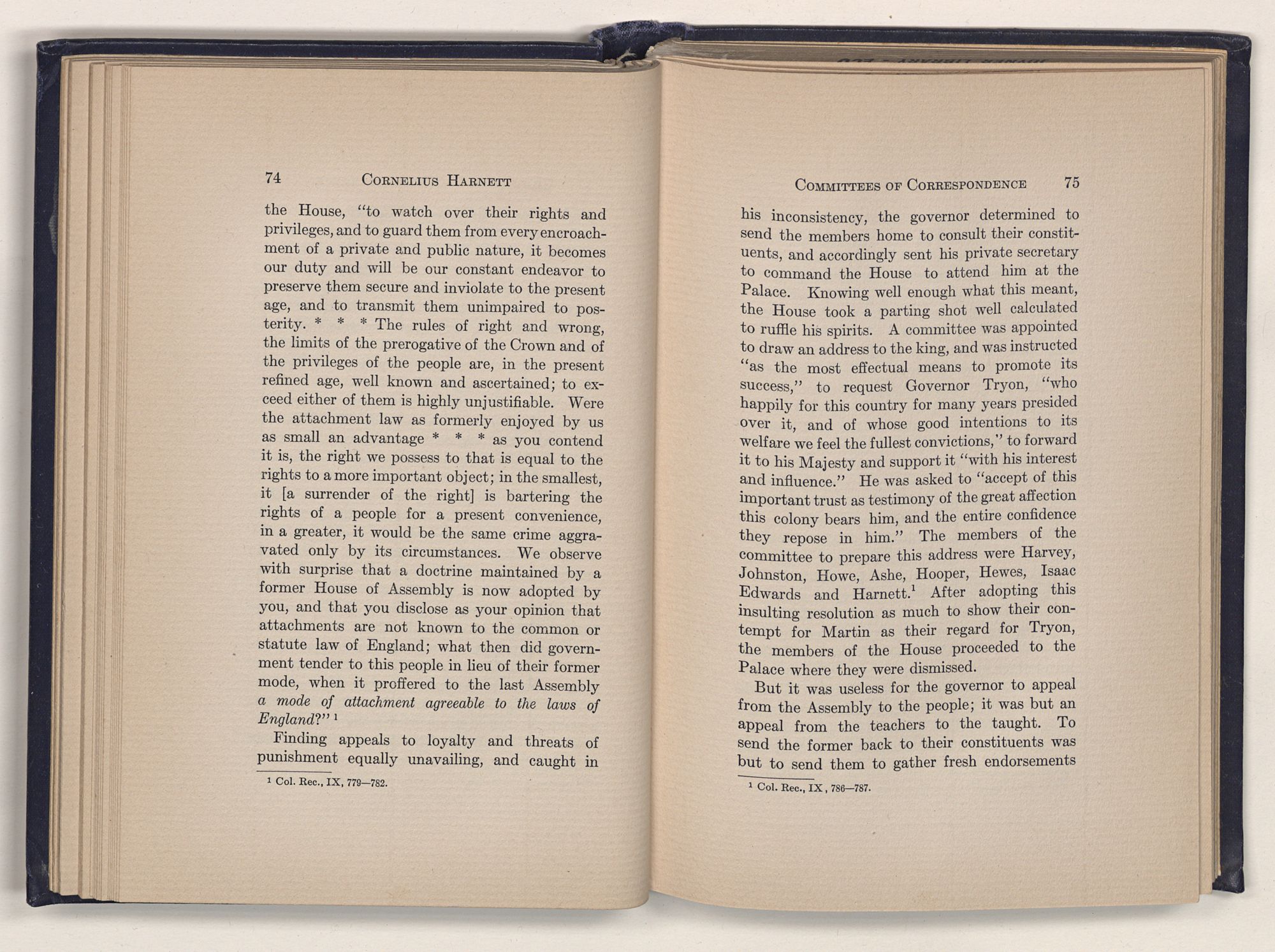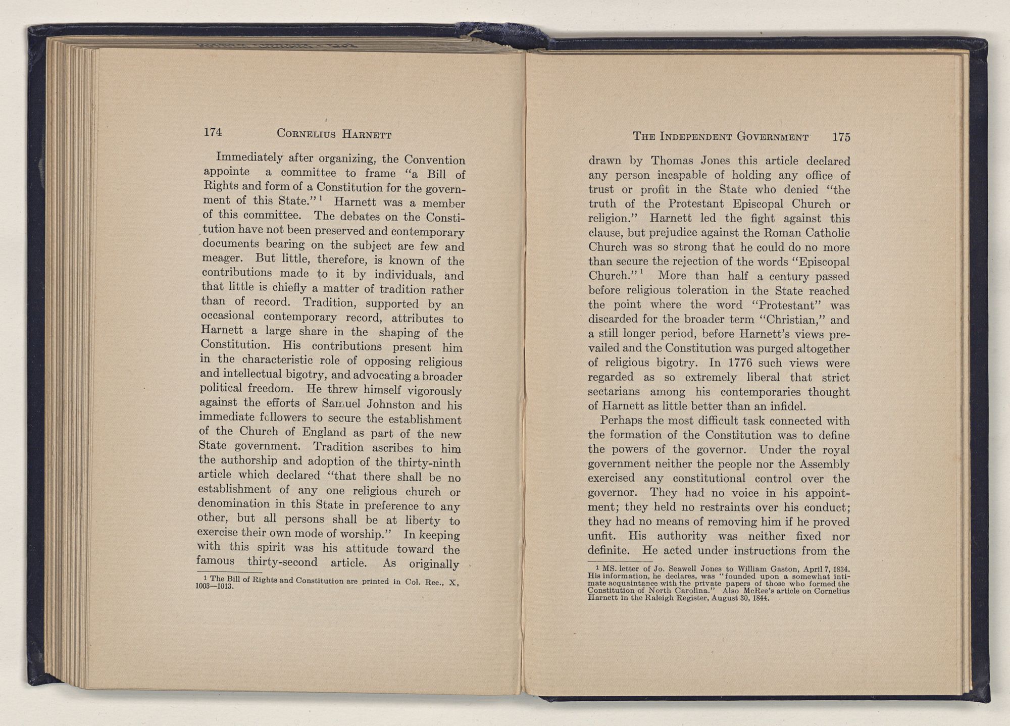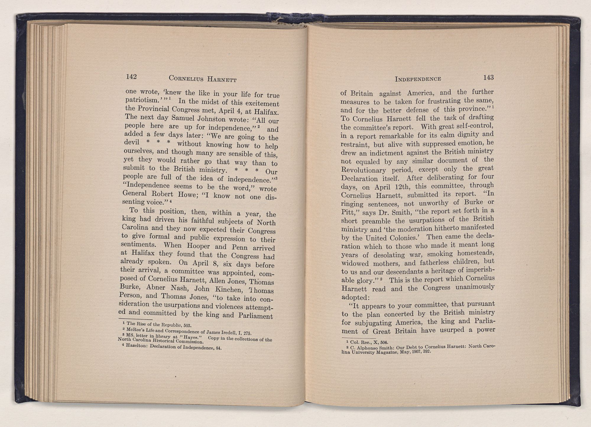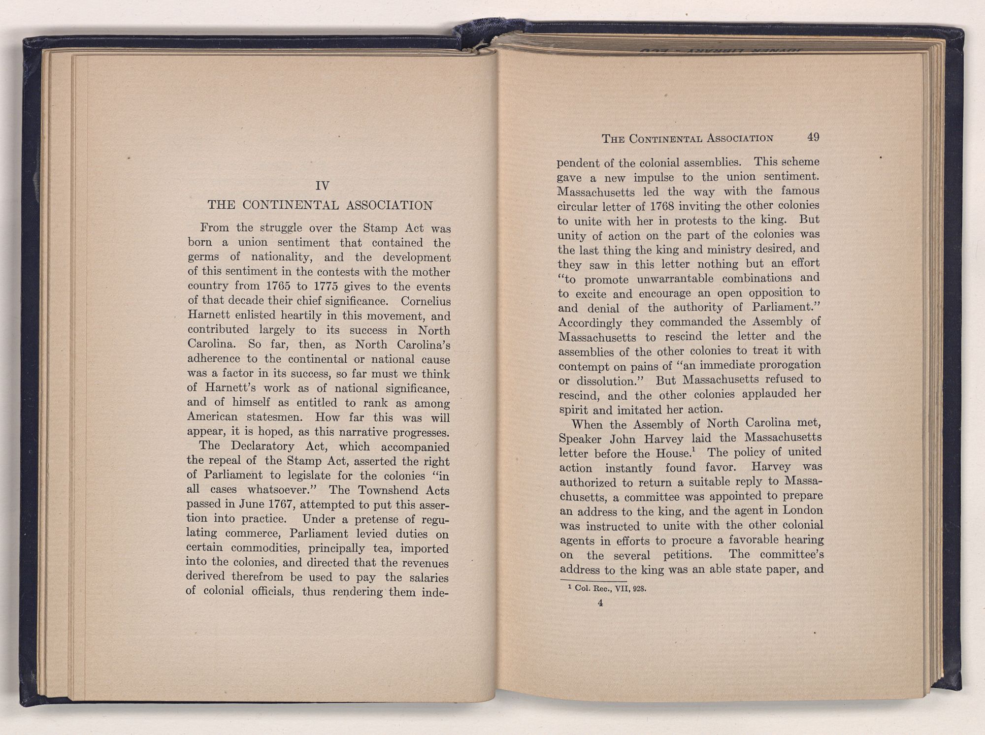 1 C. Alphonso Smith: “Our Debt to Cornelius Harnett,” in North Carolina University Magazine, May 1907, 379.Act and witnessed the gathering of the storm which broke into Revolution in 1775.