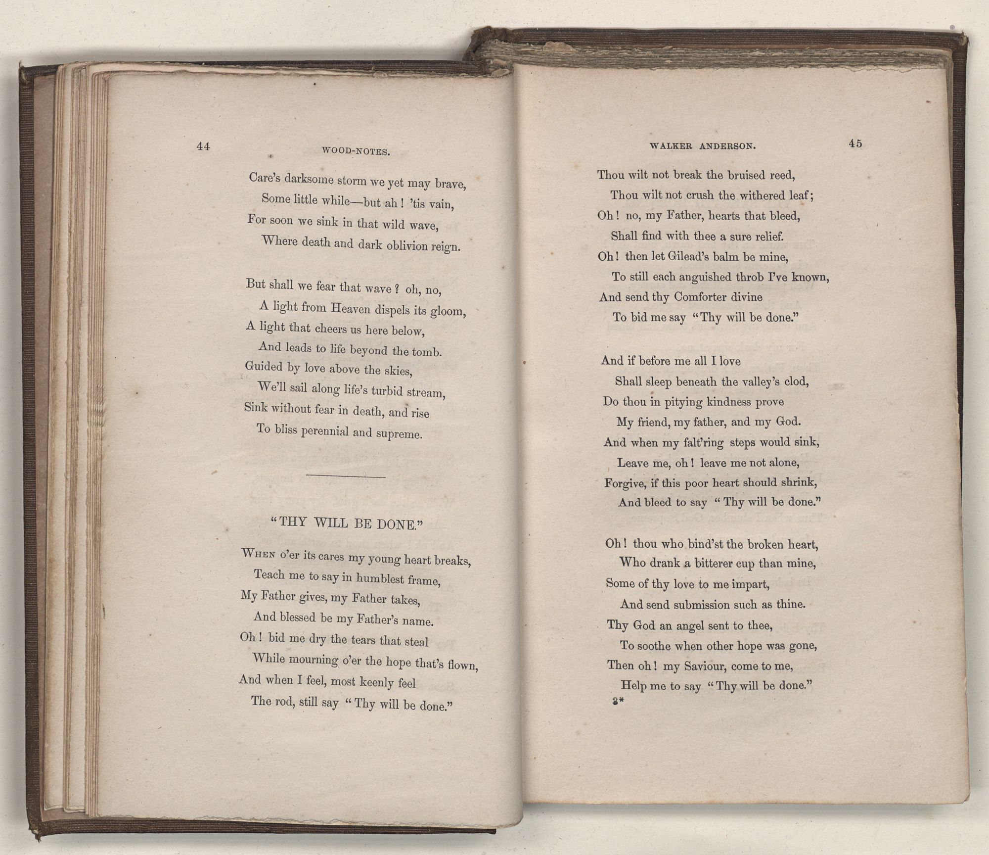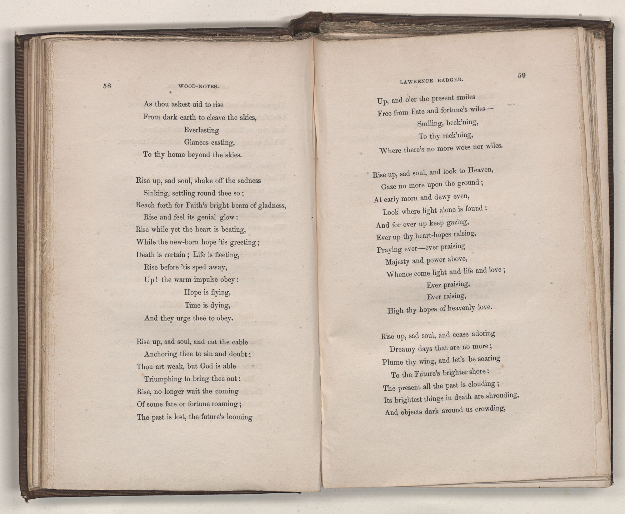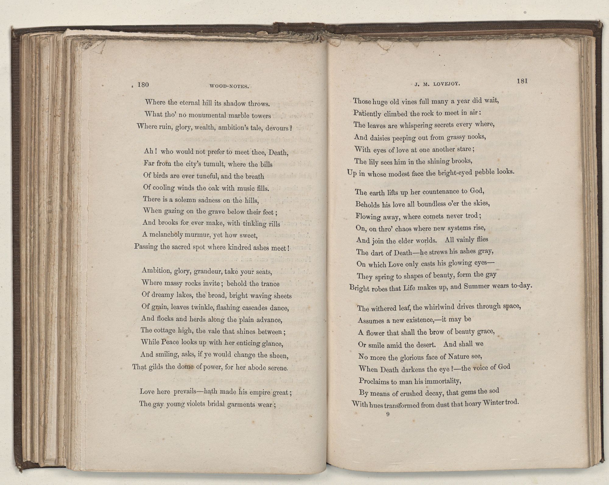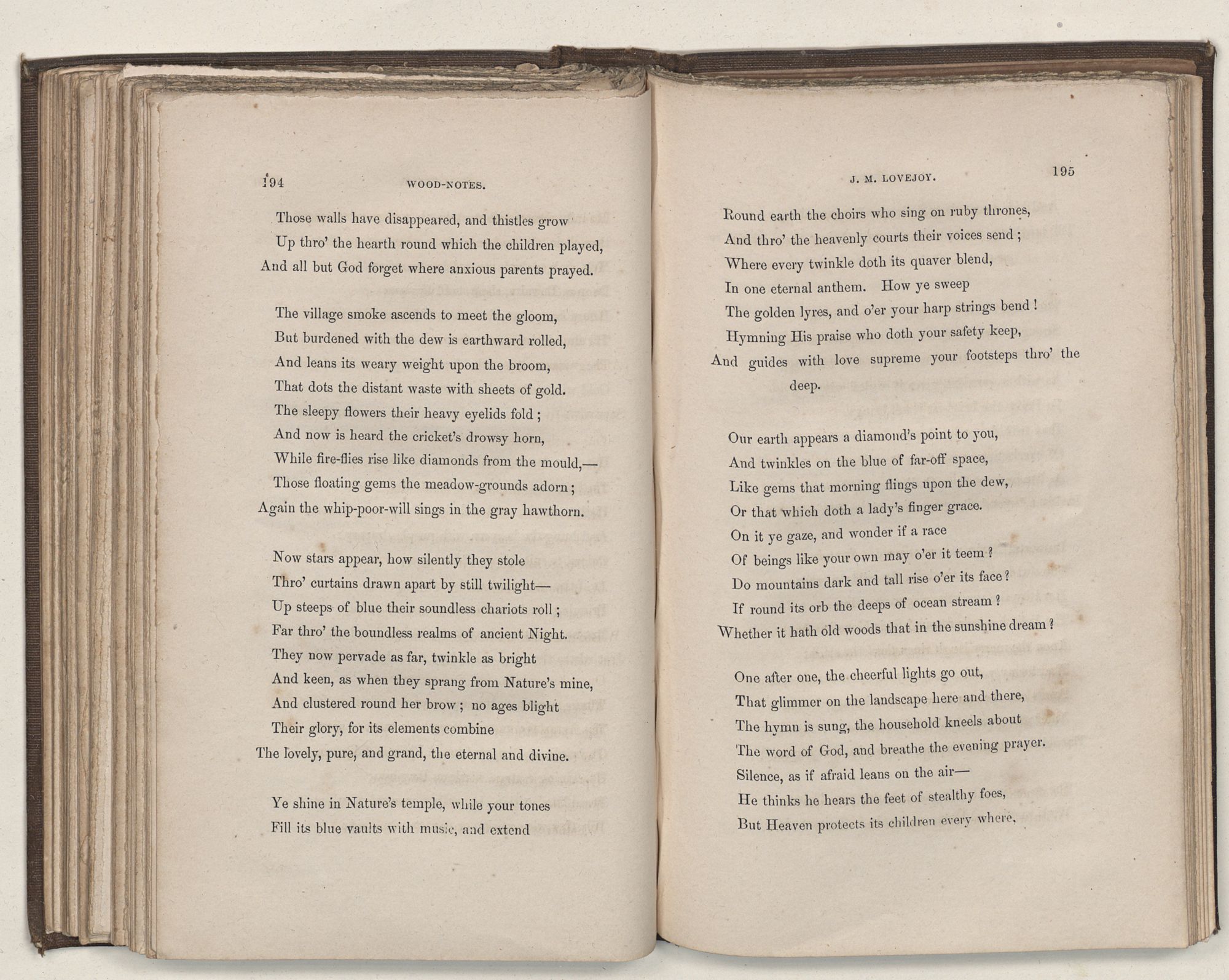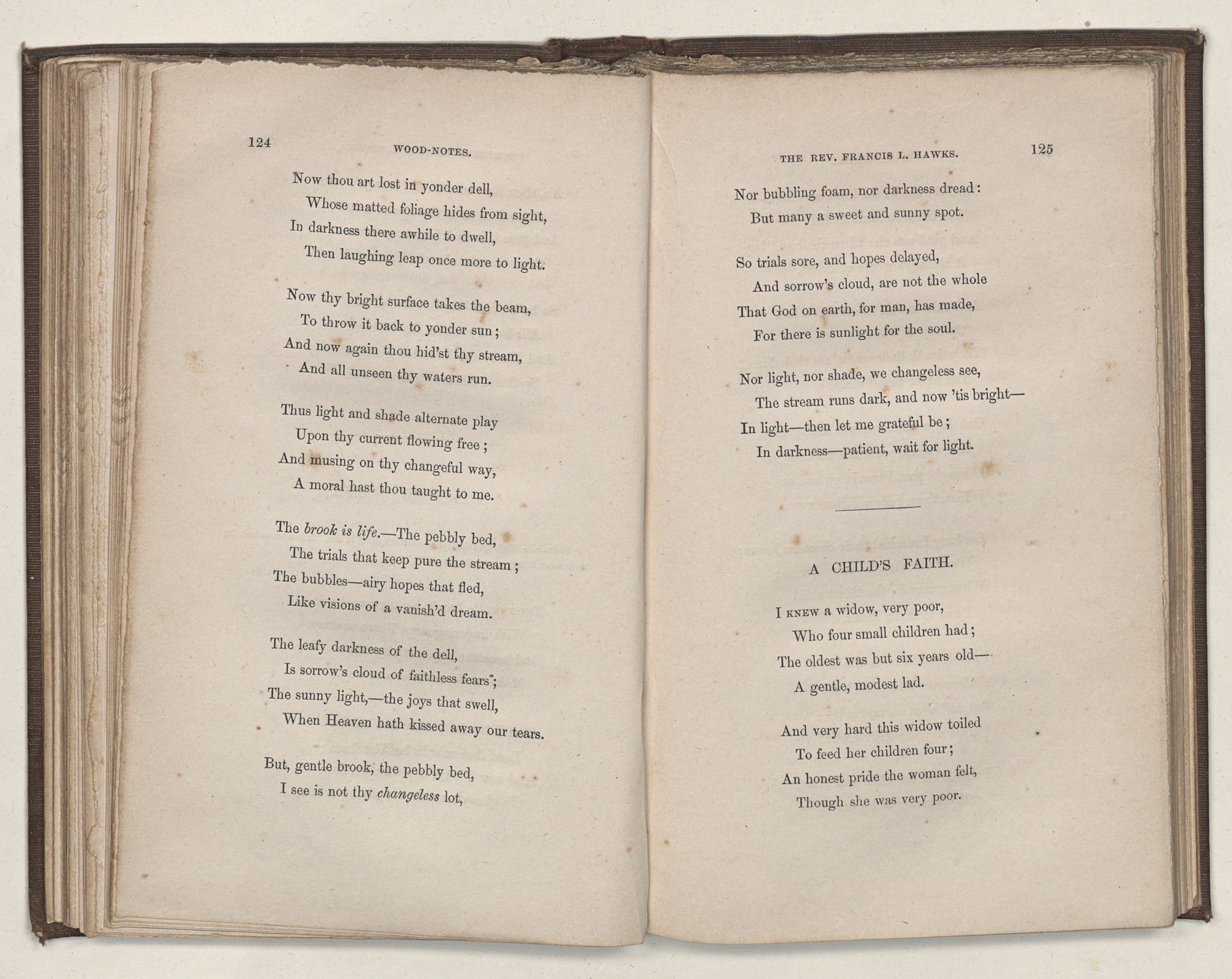 “the poets that are sownBy Nature; men endowed with highest gifts,The vision and the faculty divine.”As the note of the mocking-bird in our native woods is sweeter to the ear of patriotism than the song of the nightingale in foreign climes, so it is hoped that these Wood-Notes will be dear to North Carolinians. In this utilitarian age we are too prone to consider poetry as an ingenious trifling, unmanly and unwise; but it should be remembered that in every age and nation it has been the record of the highest and noblest thoughts of the best and purest of men. Irving has well remarked that “it is the gift of poetry to hallow every place in which it moves.” The learned jurist who can unbend his mind to write a May-day song for children, shows a goodness of heart as worthy of praise as his noble talents and profound learning, which awaken the admiration of the whole country; and the grave divine, who, in