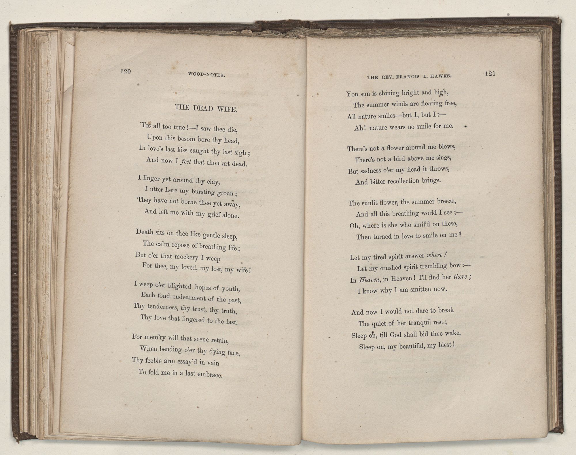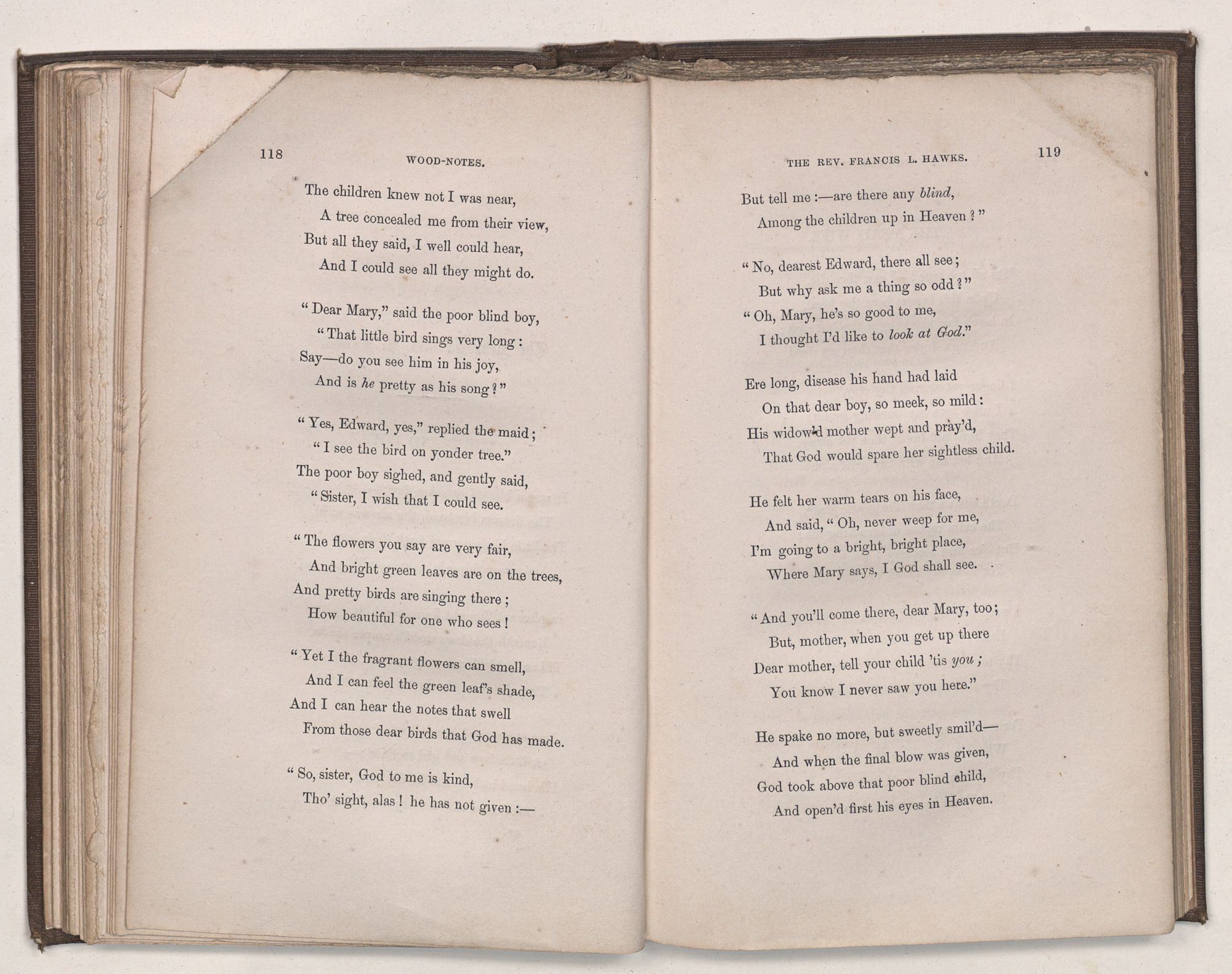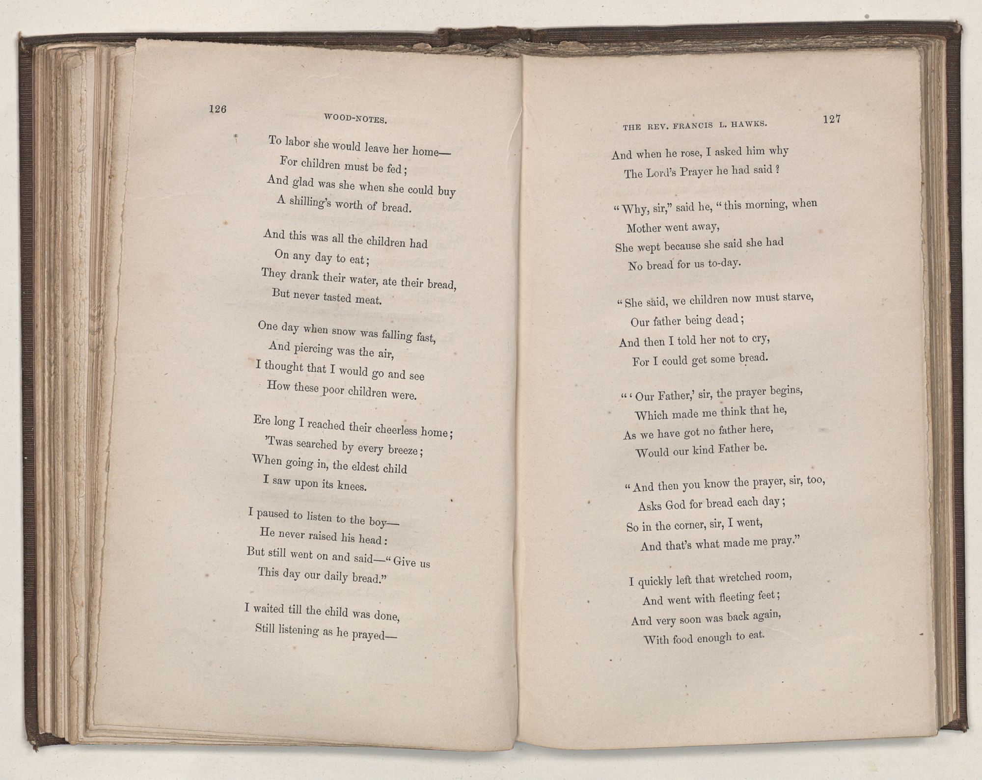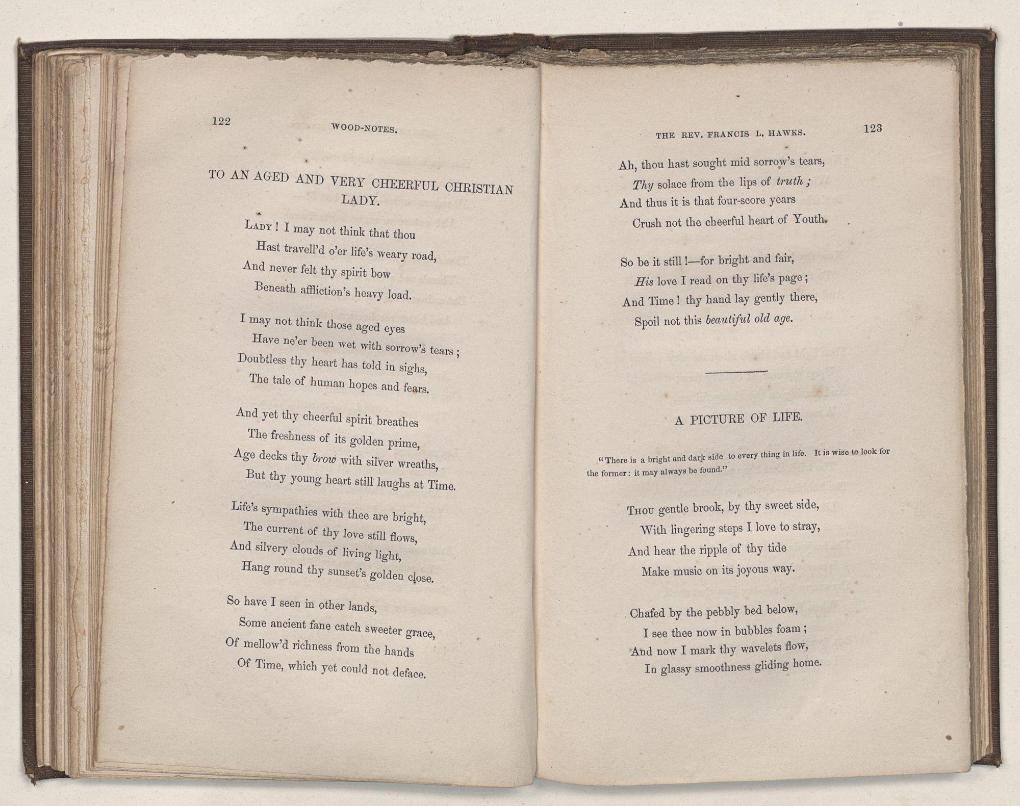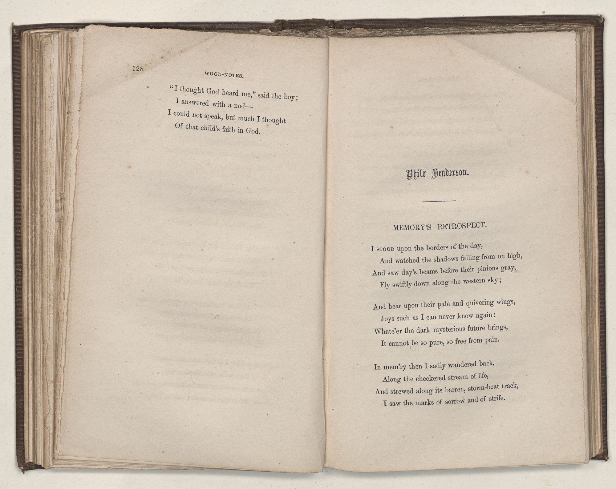 “the poets that are sownBy Nature; men endowed with highest gifts,The vision and the faculty divine.”As the note of the mocking-bird in our native woods is sweeter to the ear of patriotism than the song of the nightingale in foreign climes, so it is hoped that these Wood-Notes will be dear to North Carolinians. In this utilitarian age we are too prone to consider poetry as an ingenious trifling, unmanly and unwise; but it should be remembered that in every age and nation it has been the record of the highest and noblest thoughts of the best and purest of men. Irving has well remarked that “it is the gift of poetry to hallow every place in which it moves.” The learned jurist who can unbend his mind to write a May-day song for children, shows a goodness of heart as worthy of praise as his noble talents and profound learning, which awaken the admiration of the whole country; and the grave divine, who, in