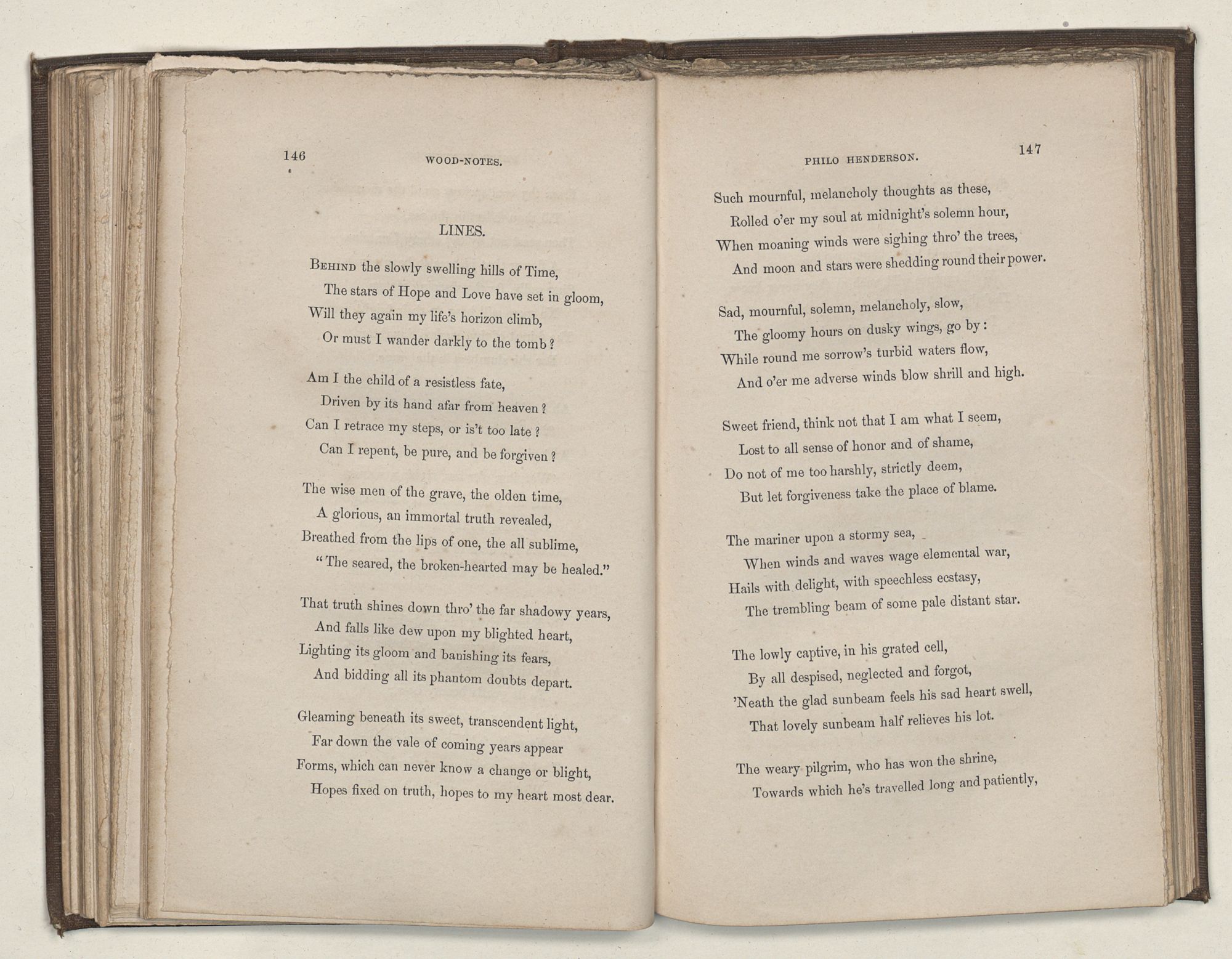 BEHIND the slowly swelling hills of Time,The stars of Hope and Love have set in gloom,Will they again my life's horizon climb,Or must I wander darkly to the tomb?Am I the child of a resistless fate,Driven by its hand afar from heaven?Can I retrace my steps, or is't too late?Can I repent, be pure, and be forgiven?The wise men of the grave, the olden time,A glorious, an immortal truth revealed,Breathed from the lips of one, the all sublime,“The seared, the broken-hearted may be healed.”That truth shines down thro’ the far shadowy years,And falls like dew upon my blighted heart,Lighting its gloom and banishing its fears,And bidding all its phantom doubts depart.Gleaming beneath its sweet, transcendent light,Far down the vale of coming years appearFroms, which can never know a change or blight,Hopes fixed on truth, hopes to my heart most dear.Such mournful, melancholy thoughts as these,Rolled o'er my soul at midnight's solemn hour,When moaning winds were sighing thro’ the trees,And moon and stars were shedding round their power.Sad, mournful, solemn, melancholy, slow,The gloomy hours on dusky wings, go by:While round me sorrow's turbid waters flow,And o'er me adverse winds blow shrill and high.Sweet friend, think not that I am what I seem,Lost to all sense of honor and of shame,Do not of me too harshly, strictly deem,But let forgiveness take the place of blame.The mariner upon a stormy sea,When winds and waves wage elemental war,Hails with delight, with speechless ecstasy,The trembling beam of some pale distant star.The lowly captive, in his grated cell,By all despised, neglected and forgot,’Neath the glad sunbeam feels his sad heart swell,That lovely sunbeam half relieves his lot.The weary pilgrim, who has won the shrine,Towards which he's travelled long and patiently,