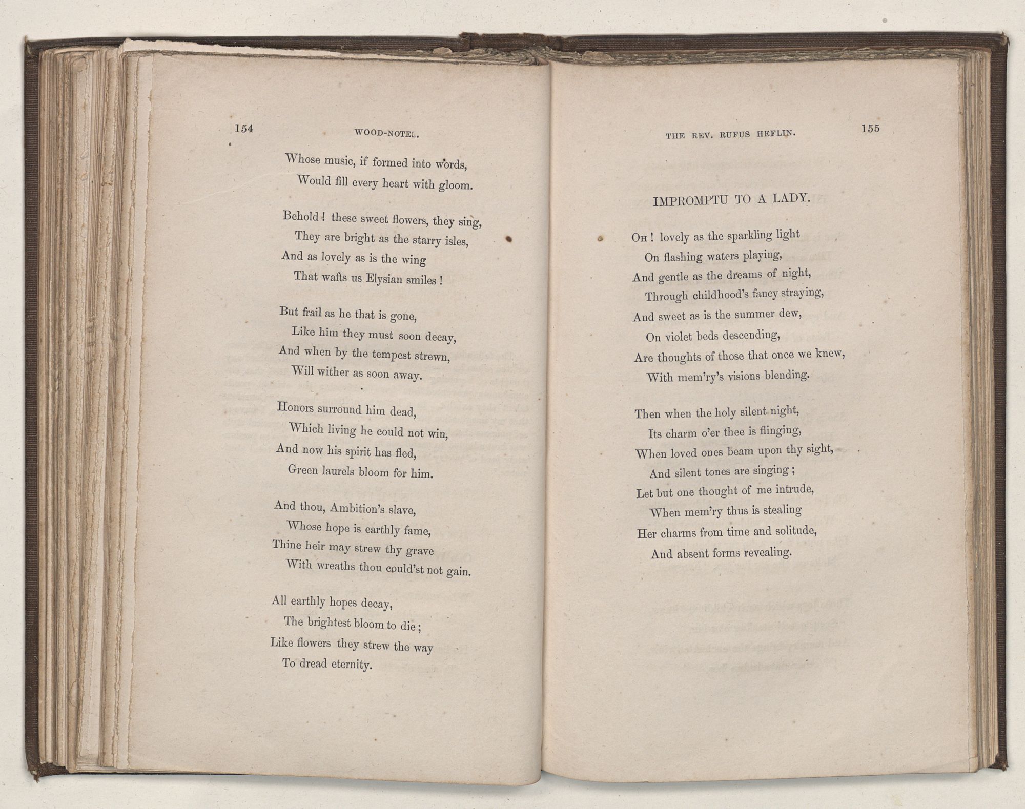 The following poems from the pen of the Rev. Mr. Heflin, were written when he was quite a youth, before he had entertained any thoughts of becoming a minister. It is to be regretted that circumstances prevented him from cultivating the evident poetic talent they exhibit. In a letter to a friend he says, “Conscious that my imagination preponderates in an undue degree, I have of set purpose abstained from poetry. I believed that a practical style was best adapted to usefulness in the ministry, and was so passionately fond of poetry that I felt my only safety to be in total abstinence.”