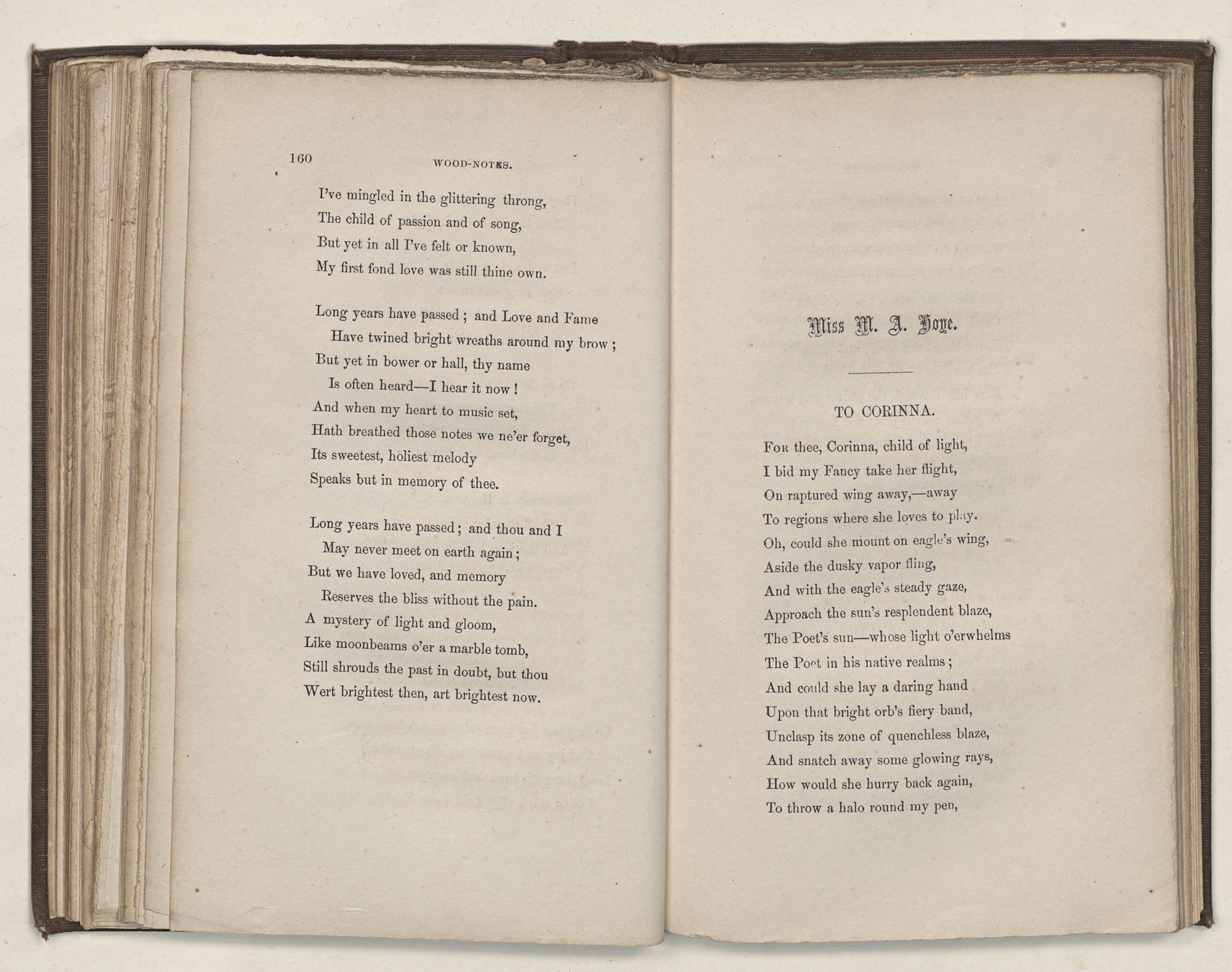 FOR thee, Corinna, child of light,I bid my Fancy take her flight,On raptured wing away,—awayTo regions where she loves to play.Oh, could she mount on eagle's wing,Aside the dusky vapor fling,And with the eagle's steady gaze,Approach the sun's resplendent blaze,The Poet's sun—whose light o'erwhelmsThe Poet in his native realms;And could she lay a daring handUpon that bright orb's fiery band,Unclasp its zone of quenchless blaze,And snatch away some glowing rays,How would she hurry back again,To throw a halo round my pen,