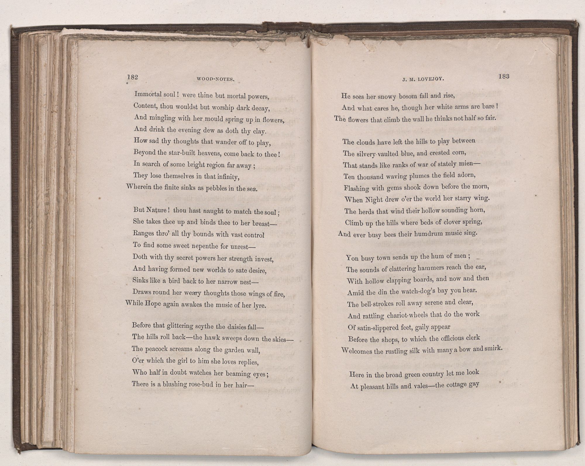 Immortal soul! were thine but mortal powers,Content, thou wouldst but worship dark decay,And mingling with her mould spring up in flowers,And drink the evening dew as doth thy clay.How sad thy thoughts that wander off to play,Beyond the star-built heavens, come back to thee!In search of some bright region far away;They lose themselves in that infinity,Wherein the finite sinks as pebbles in the sea.But Nature! thou hast naught to match the soul;She takes thee up and binds thee to her breast—Ranges thro’ all thy bounds with vast controlTo find some sweet nepenthe for unrest—Doth with thy secret powers her strength invest,And having formed new worlds to sate desire,Sinks like a bird back to her narrow nest—Draws round her weary thoughts those wings of fire,While Hope again awakes the music of her lyre.Before that glittering scythe the daisies fall—The hills roll back—the hawk sweeps down the skies—The peacock screams along the garden wall,O'er which the girl to him she loves replies,Who half in doubt watches her beaming eyes;There is a blushing rose-bud in her hair—He sees her snowy bosom fall and rise,And what cares he, though her white arms are bare?The flowers that climb the wall he thinks not half so fair.The clouds have left the hills to play betweenThe silvery vaulted blue, and crested corn,That stands like ranks of war of stately mien—Ten thousand waving plumes the field adorn,Flashing with gems shook down before the morn,When Night drew o'er the world her starry wing.The herds that wind their hollow sounding horn,Climb up the hills where beds of clover spring,And ever busy bees their humdrum music sing.Yon busy town sends up the hum of men;The sounds of clattering hammers reach the ear,With hollow clapping boards, and now and thenAmid the din the watch-dog's bay you hear.The bell-strokes roll away serene and clear,And rattling chariot-wheels that do the workOf satin-slippered feet, gaily appearBefore the shops, to which the officious clerkWelcomes the rustling silk with many a bow and smirk.Here in the broad green country let me lookAt pleasant hills and vales—the cottage gay