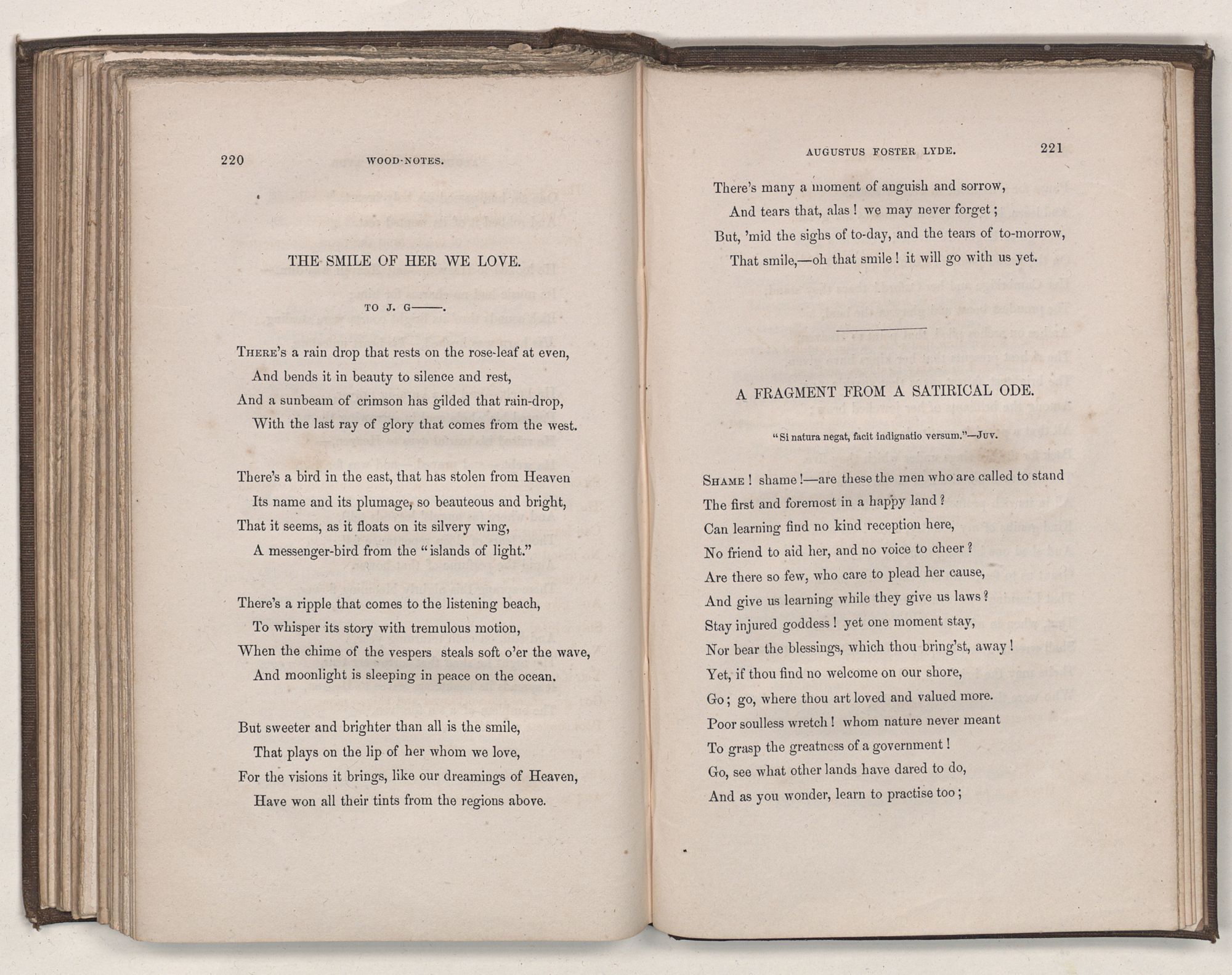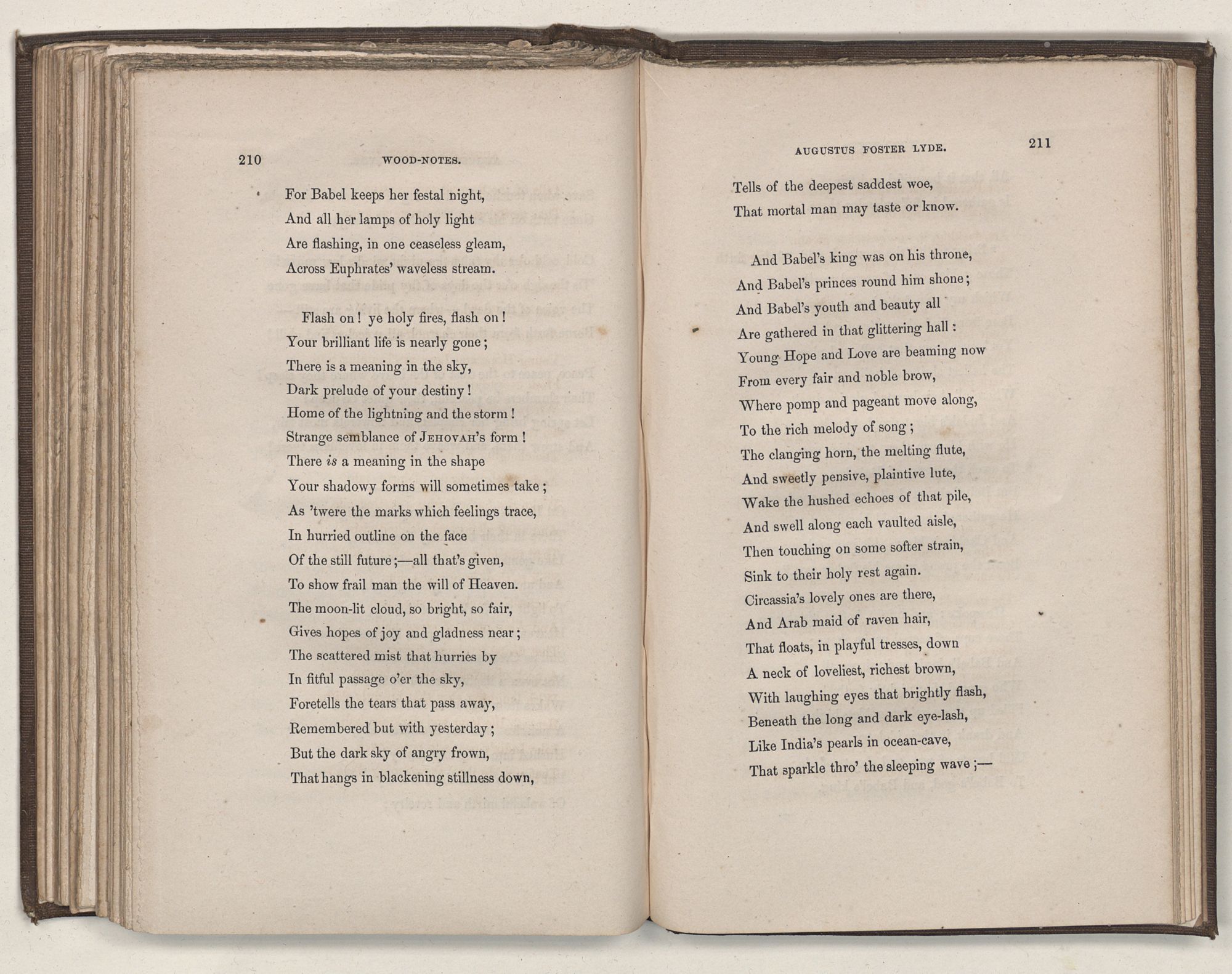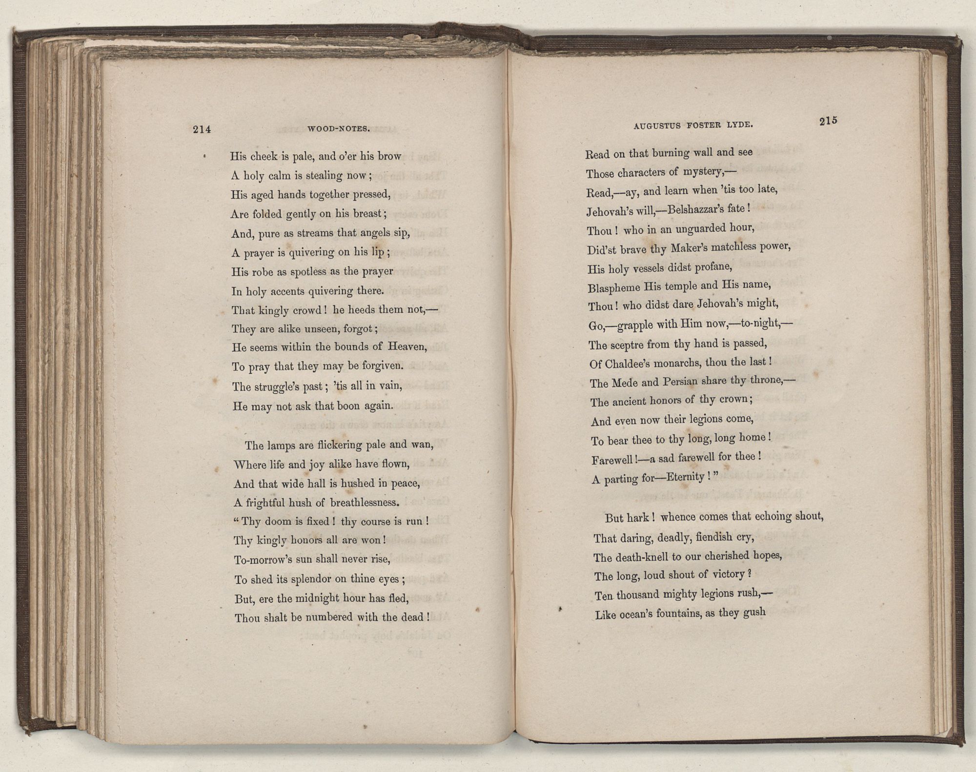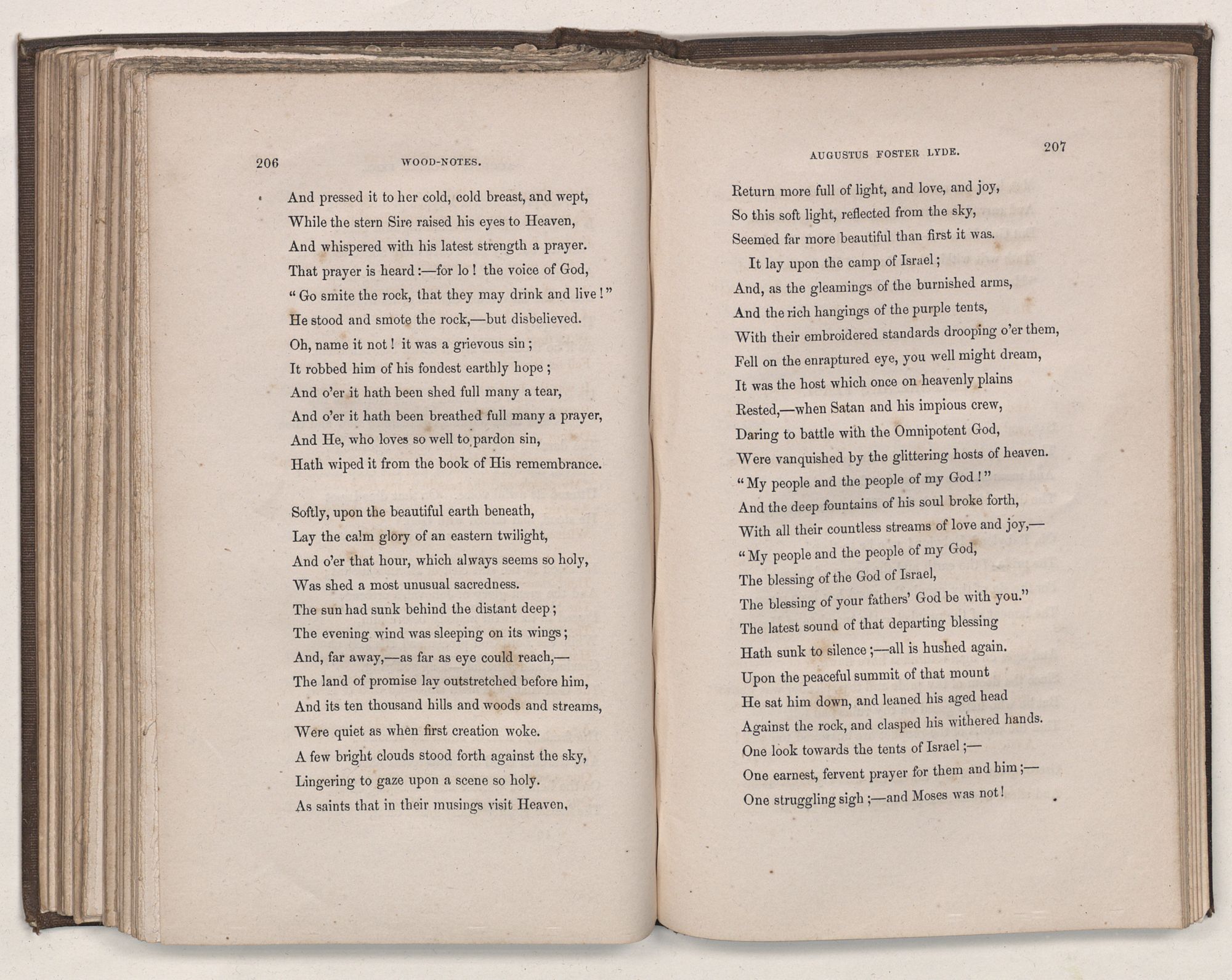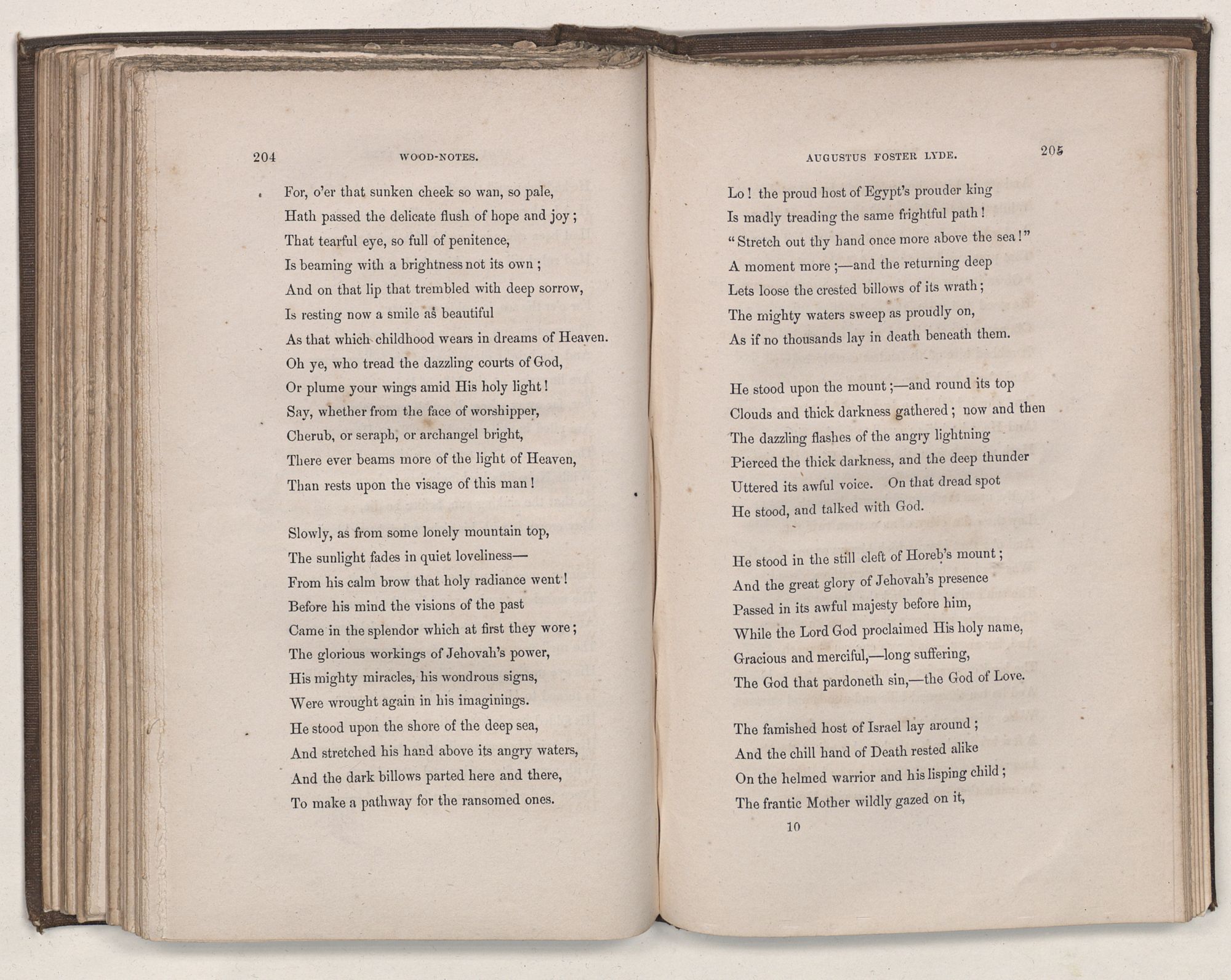 The following poems are from the pen of the Rev. AUGUSTUS FOSTER LYDE, a deacon in the Protestant Episcopal Church, who was born in Wilmington, N. C., and died in Philadelphia in 1834, at the early age of twenty-one. They are selected from a volume called “Buds of Spring,” which was published a few years after his death.