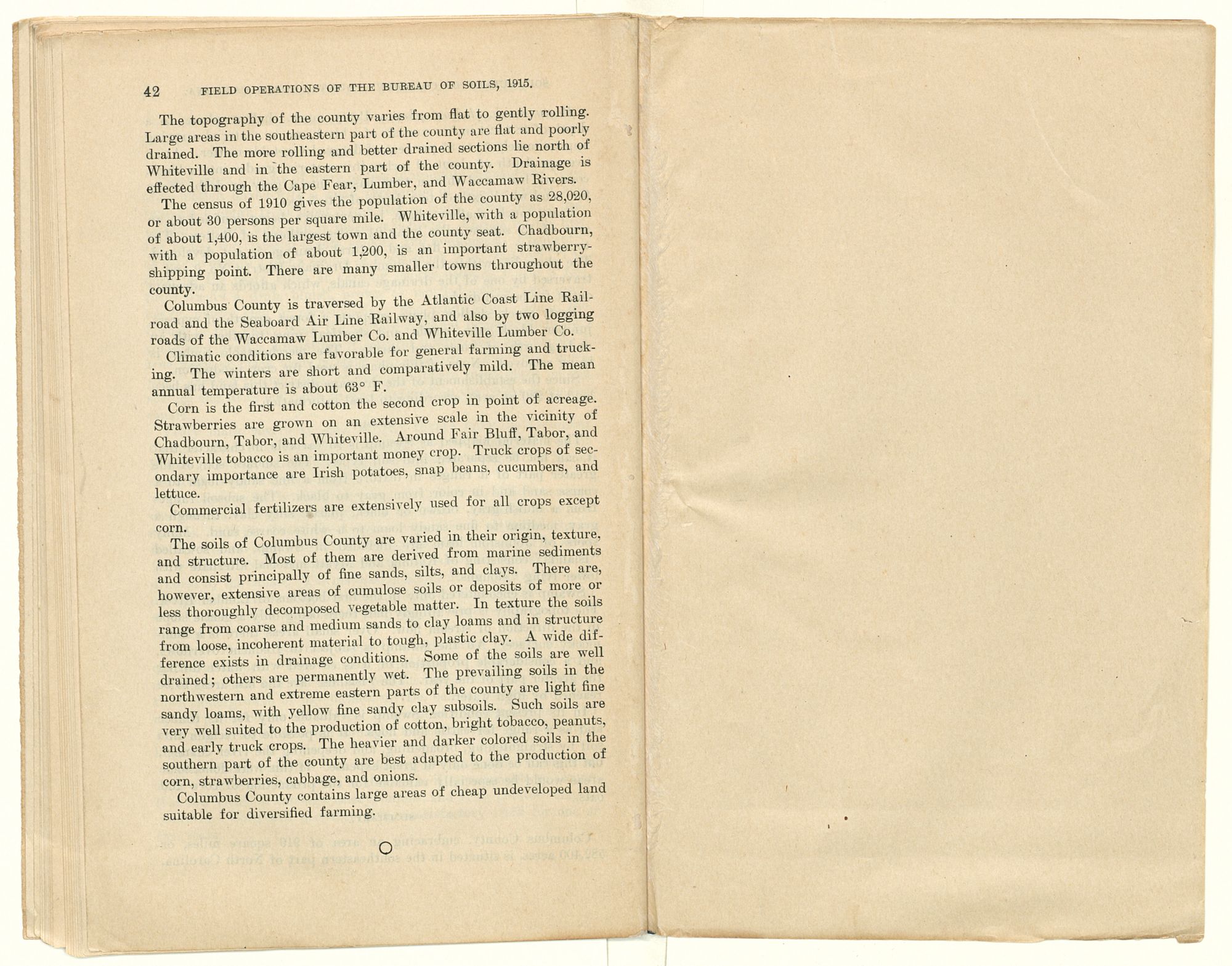 SIR: During the field season of 1915 a soil survey was made of Columbus County, N. C. This work was done in cooperation with the State of North Carolina, and the selection of the area was made after conference with State officials.