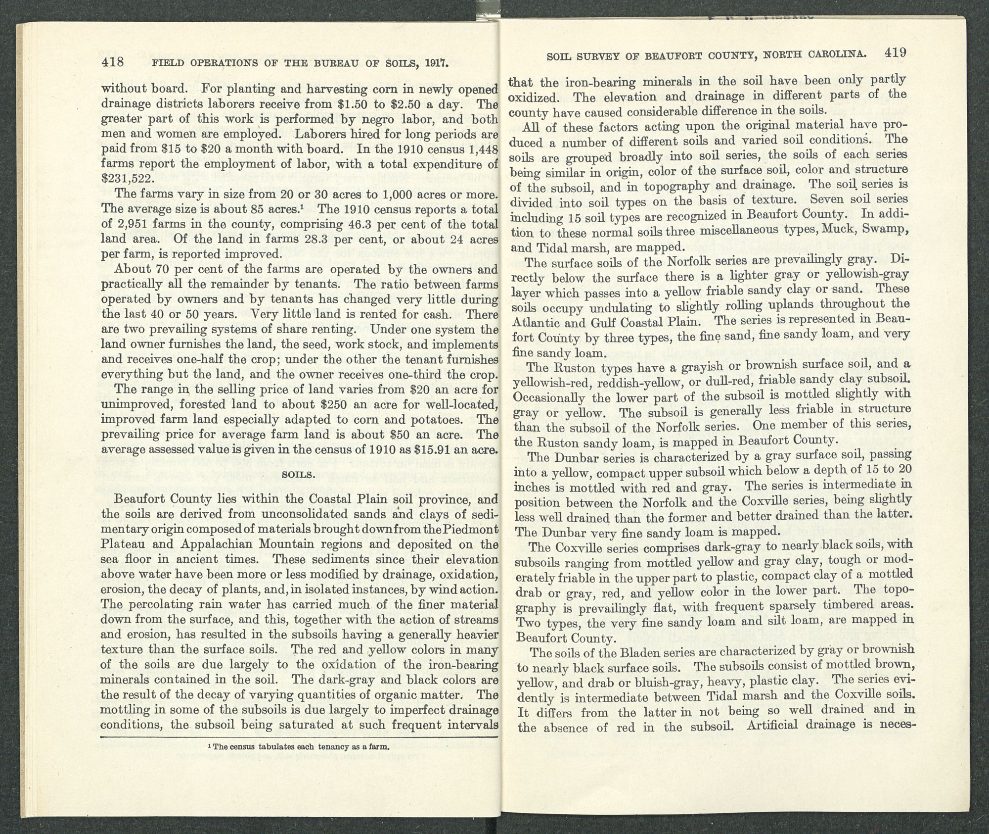 | Soil Survey ofBeaufort County, North Carolina. By W. B. Cobb, In Charge, and E. S. Vanatta, of the United States Department of Agriculture, and L. L. Brinkley, S. F. Davidson, and F. N. McDowell, of the North Carolina Department of Agriculture | 409 |
