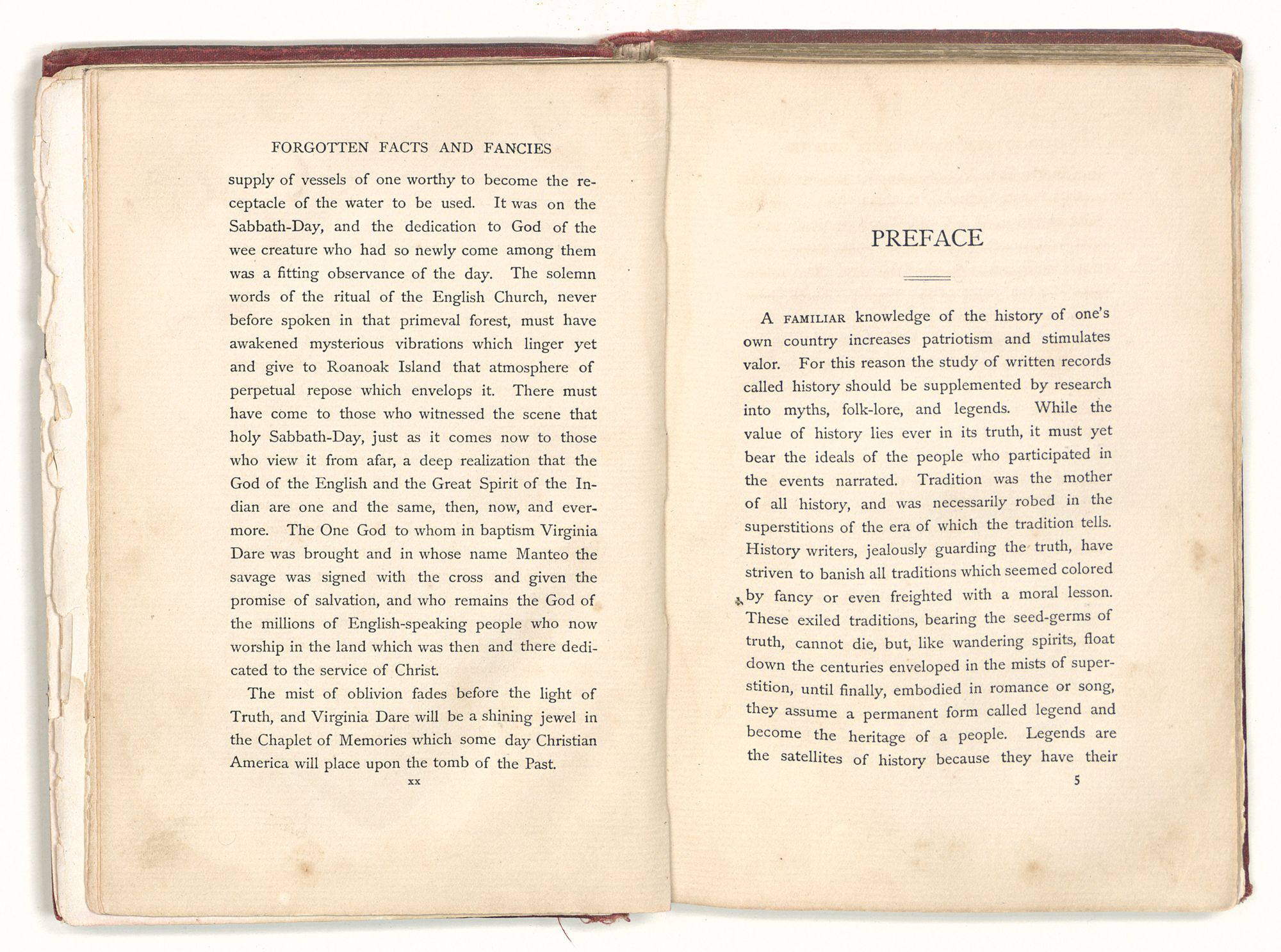 The mist of oblivion fades before the light of Truth, and Virginia Dare will be a shining jewel in the Chaplet of Memories which some day Christian America will place upon the tomb of the Past.