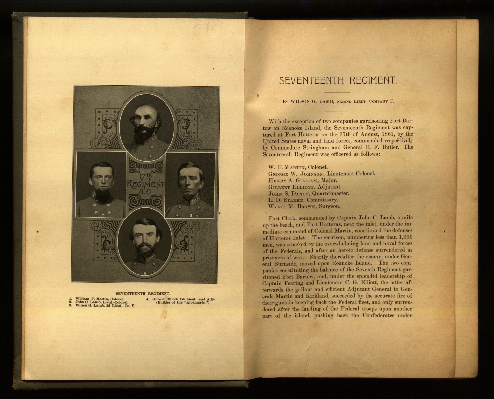 With the exception of two companies garrisoning Fort Bar-tow on Roanoke Island, the Seventeenth Regiment was captured at Fort Hatteras on the 27th of August, 1861, by the United States naval and land forces, commanded respectively by Commodore Stringham and General B. F. Butler. The Seventeenth Regiment was officered as follows: