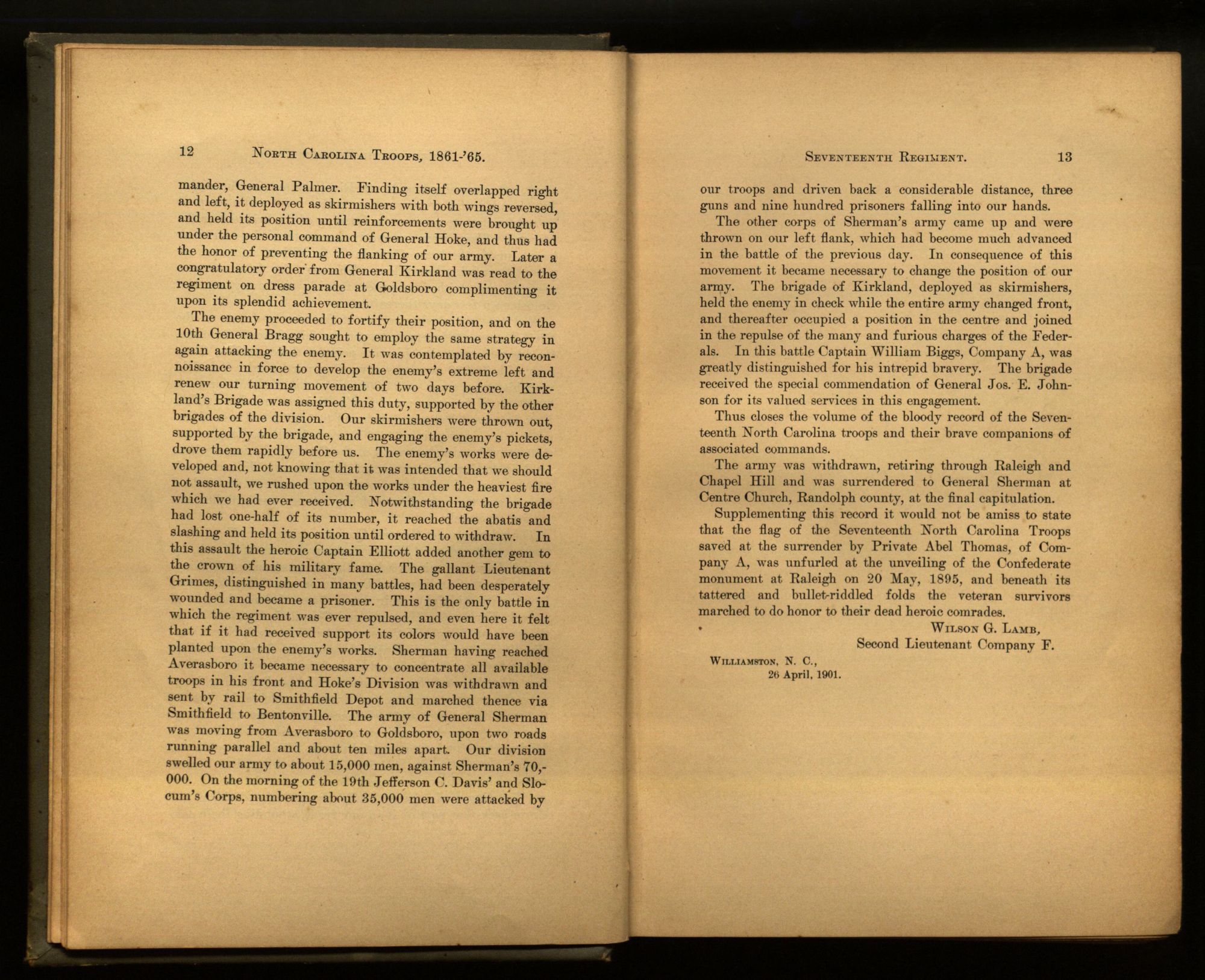 HISTORIES OF THE SEVERAL REGIMENTS AND BATTALIONS FROM NORTH CAROLINA, IN THE GREAT WAR 1861-'65WRITTEN BY MEMBERS OF THE RESPECTIVE COMMANDSEDITED BY WALTER CLARK, (LIEUT.-COLONEL SEVENTIETH REGIMENT N. C. T.)VOL. II.NASH BROTHERS,BOOK AND JOB PRINTERSGOLDSBORO, N. C.