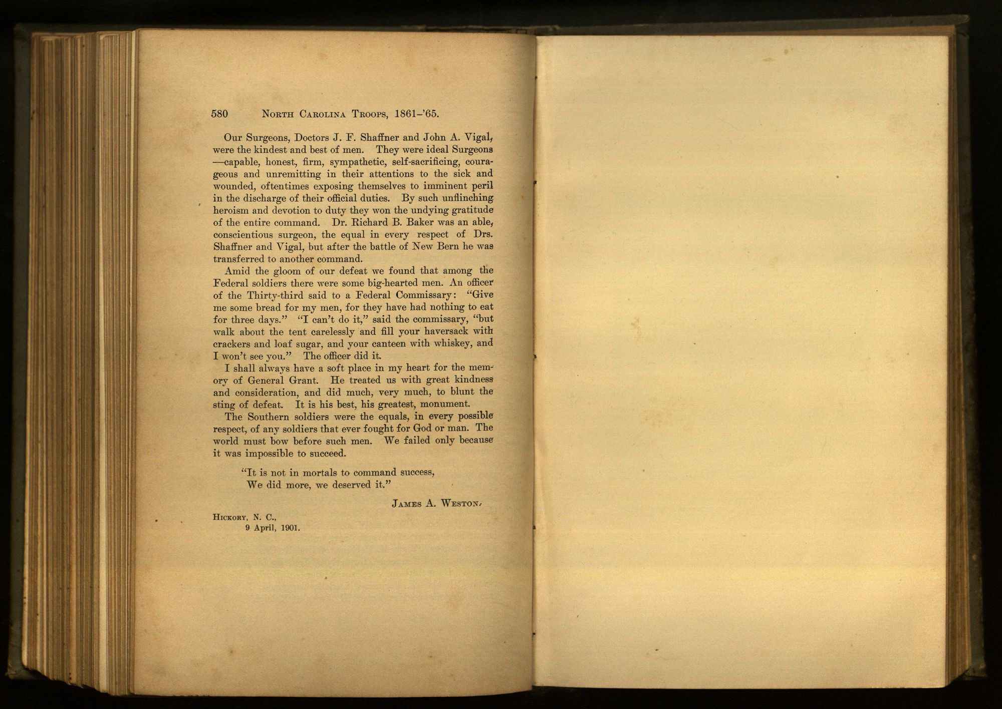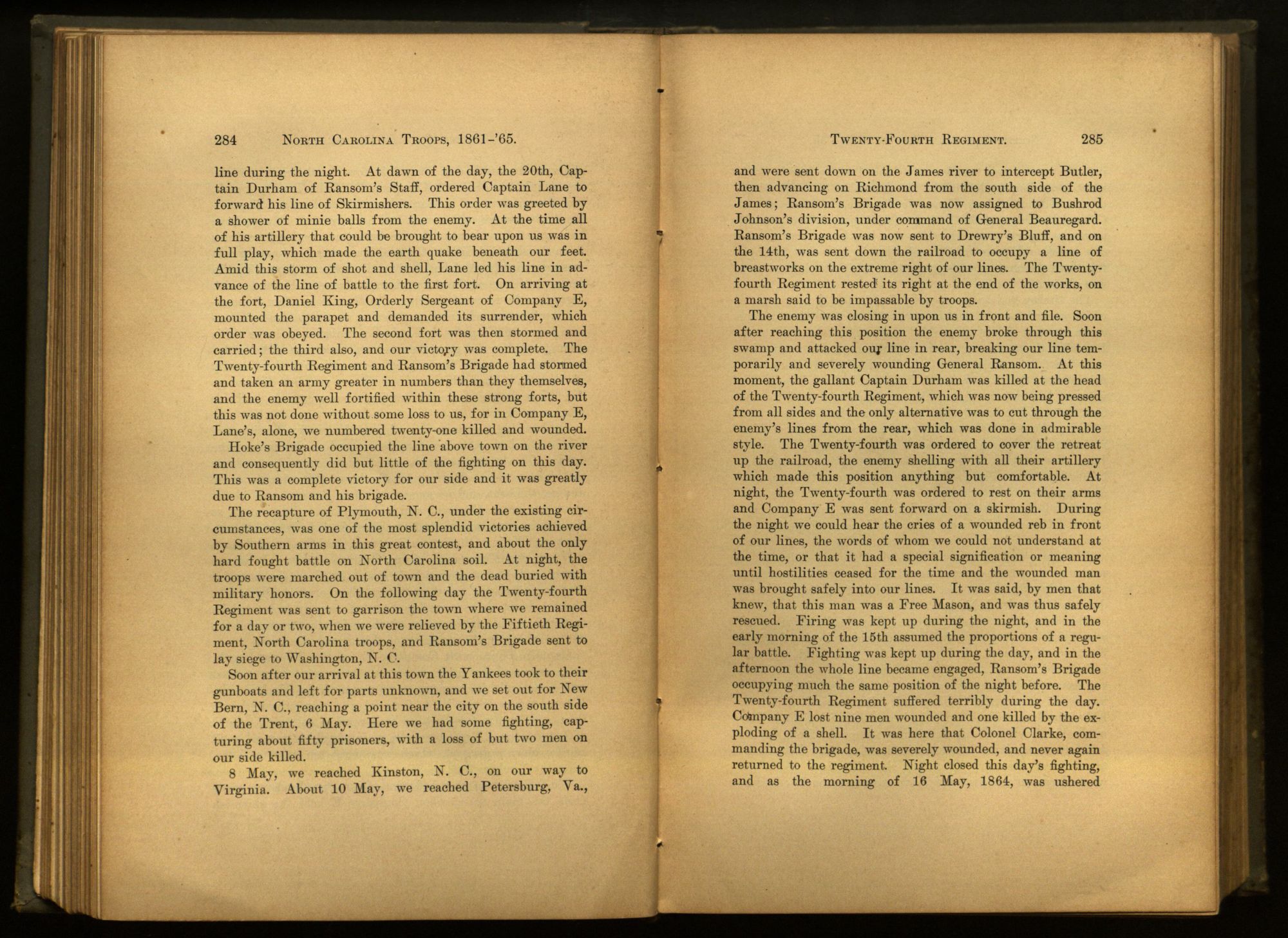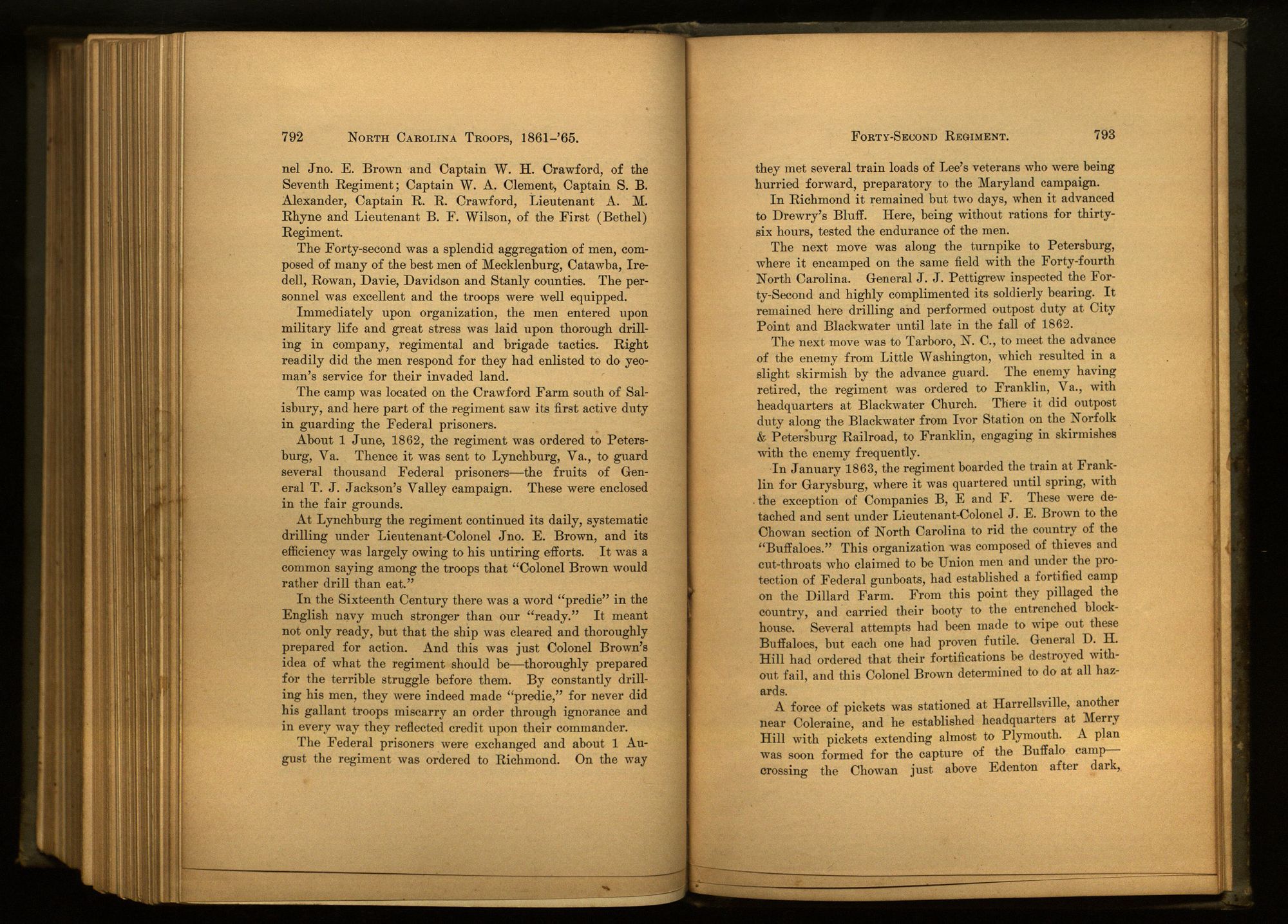 We say-and we say it advisedly-that the superiors of the North Carolina troops have never lived. The watchword of the Forty-second North Carolina was "Duty," and wherever duty called, they always responded cheerfully.