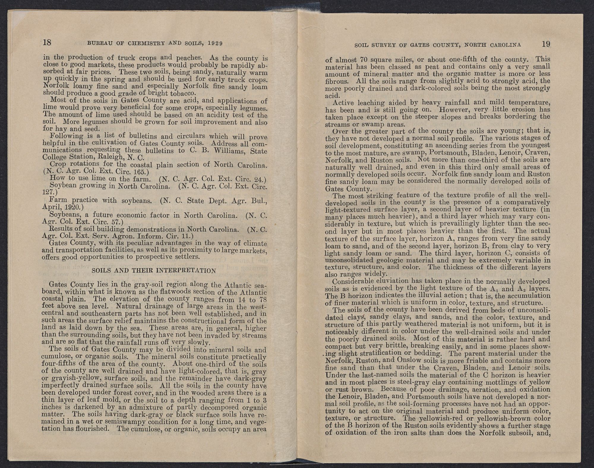 Following is a list of bulletins and circulars which will prove helpful in the cultivation of Gates County soils. Address all communications requesting these bulletins to C. B. Williams, State College Station, Raleigh, N. C.