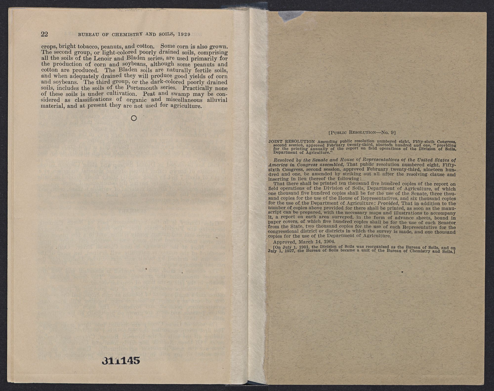 [On July 1, 1901, the Division of Soils was reorganized as the Bureau of Soils, and on July 1, 1927, the Bureau of Soils became a unit of the Bureau of Chemistry and Soils.]
