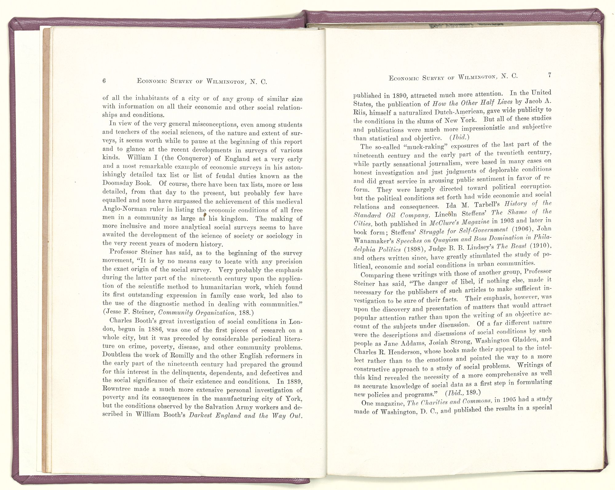 Professor Steiner has said, as to the beginning of the survey movement, “It is by no means easy to locate with any precision the exact origin of the social survey. Very probably the emphasis during the latter part of the nineteenth century upon the application of the scientific method to humanitarian work, which found its first outstanding expression in family case work, led also to the use of the diagnostic method in dealing with communities.” (Jesse F. Steiner, Community Organization, 188.)