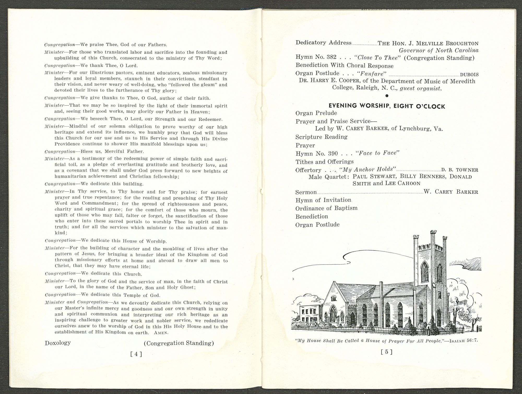 First Baptist ChurchDedication ServicesNew Bern, North Carolina