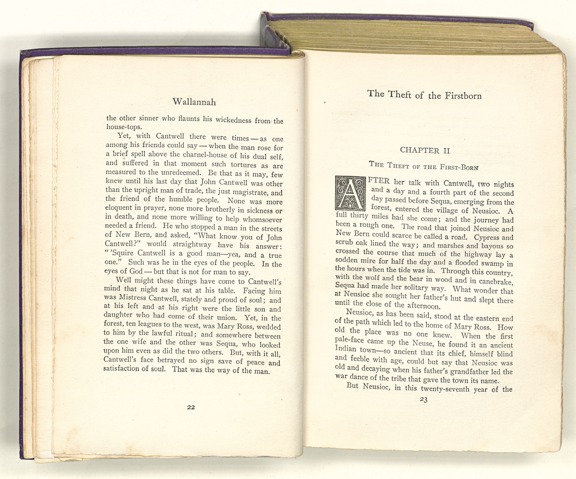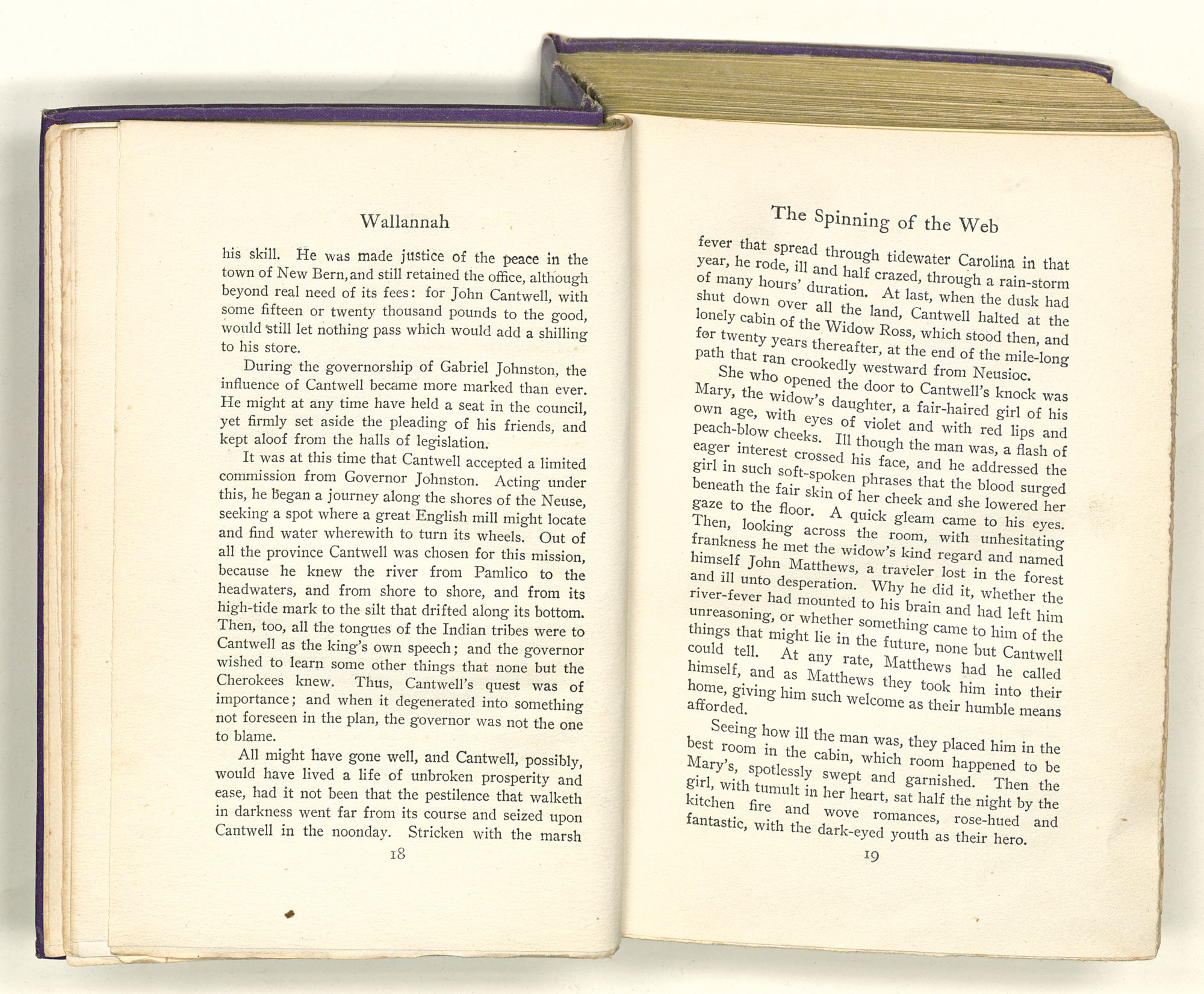 fever that spread through tidewater Carolina in that year, he rode, ill and half crazed, through a rain-storm of many hours’ duration. At last, when the dusk had shut down over all the land, Cantwell halted at the lonely cabin of the Widow Ross, which stood then, and for twenty years thereafter, at the end of the mile-long path that ran crookedly westward from Neusioc.