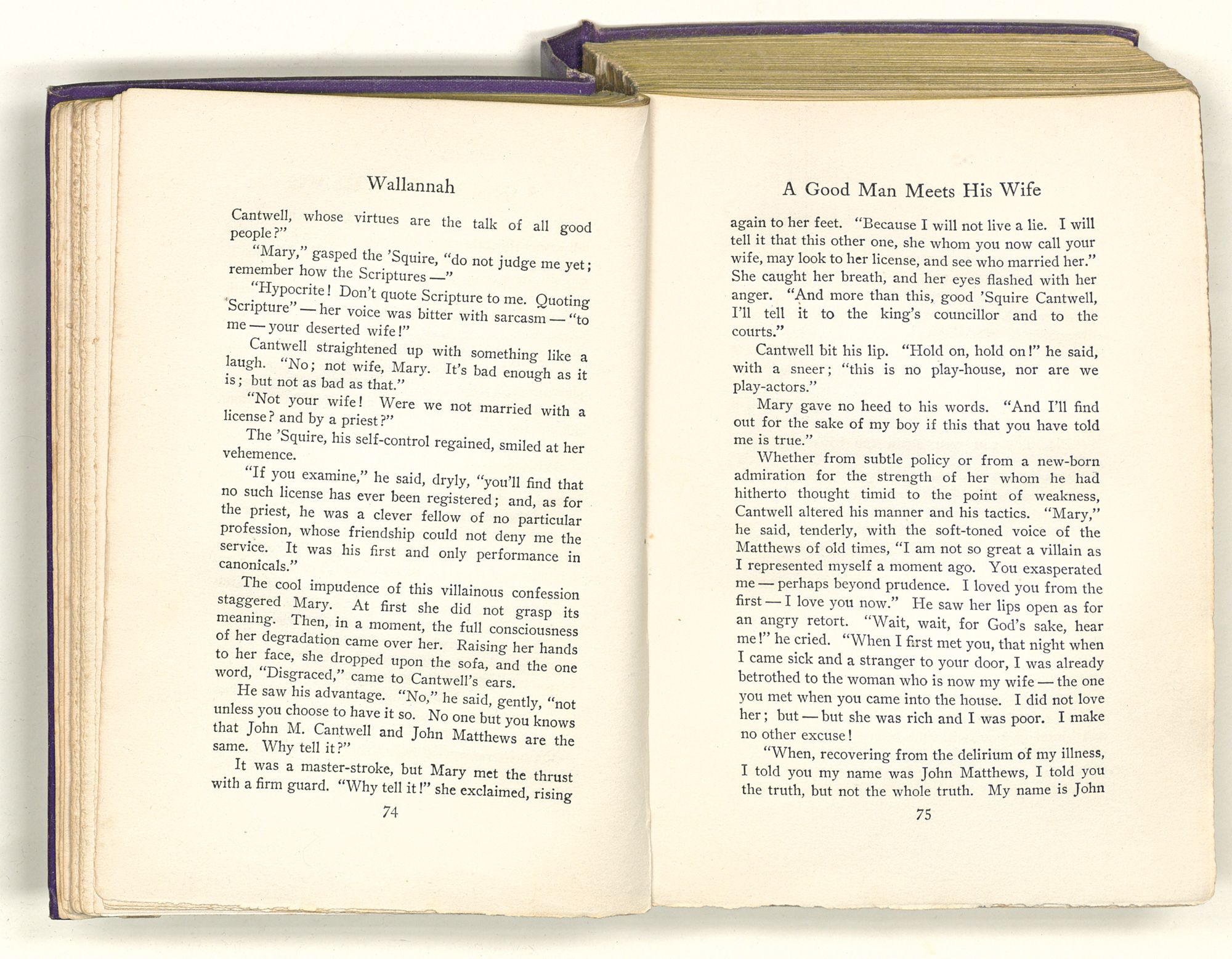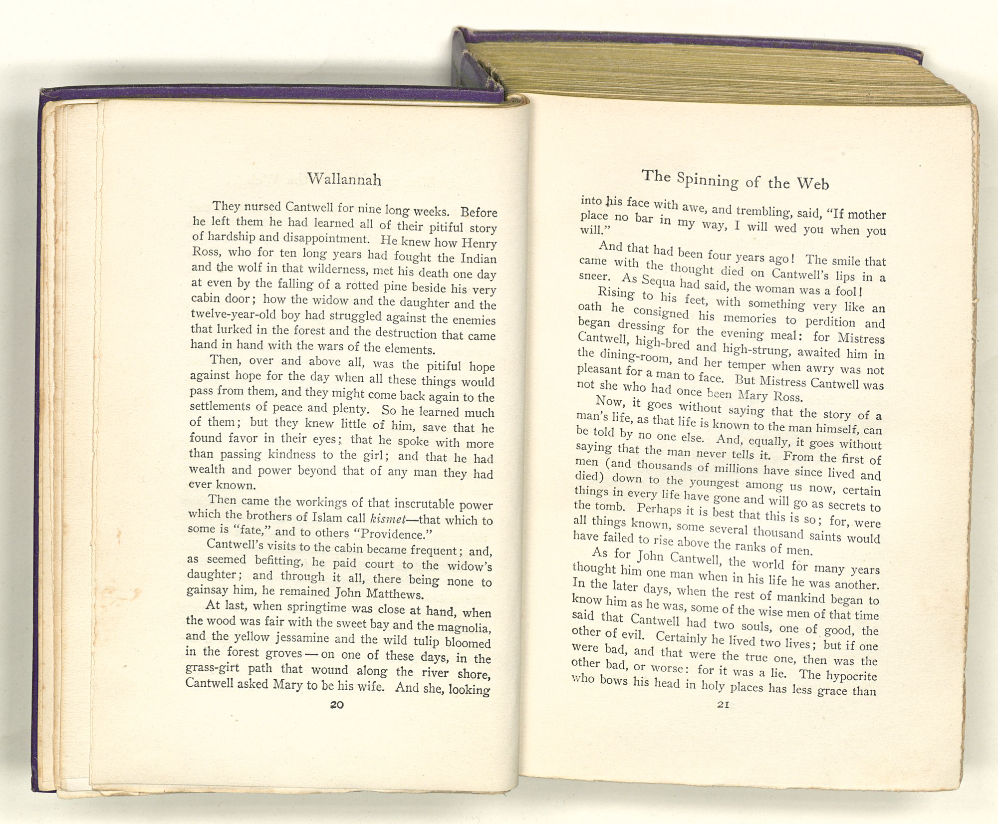 She who opened the door to Cantwell's knock was Mary, the widow's daughter, a fair-haired girl of his own age, with eyes of violet and with red lips and peach-blow cheeks. Ill though the man was, a flash of eager interest crossed his face, and he addressed the girl in such soft-spoken phrases that the blood surged beneath the fair skin of her cheek and she lowered her gaze to the floor. A quick gleam came to his eyes. Then, looking across the room, with unhesitating frankness he met the widow's kind regard and named himself John Matthews, a traveler lost in the forest and ill unto desperation. Why he did it, whether the river-fever had mounted to his brain and had left him unreasoning, or whether something came to him of the things that might lie in the future, none but Cantwell could tell. At any rate, Matthews had he called himself, and as Matthews they took him into their home, giving him such welcome as their humble means afforded.