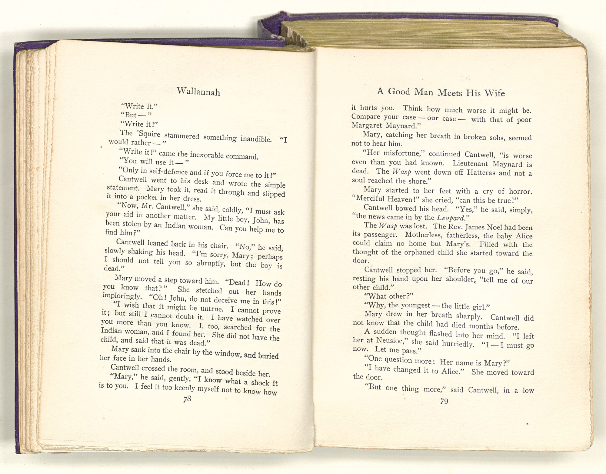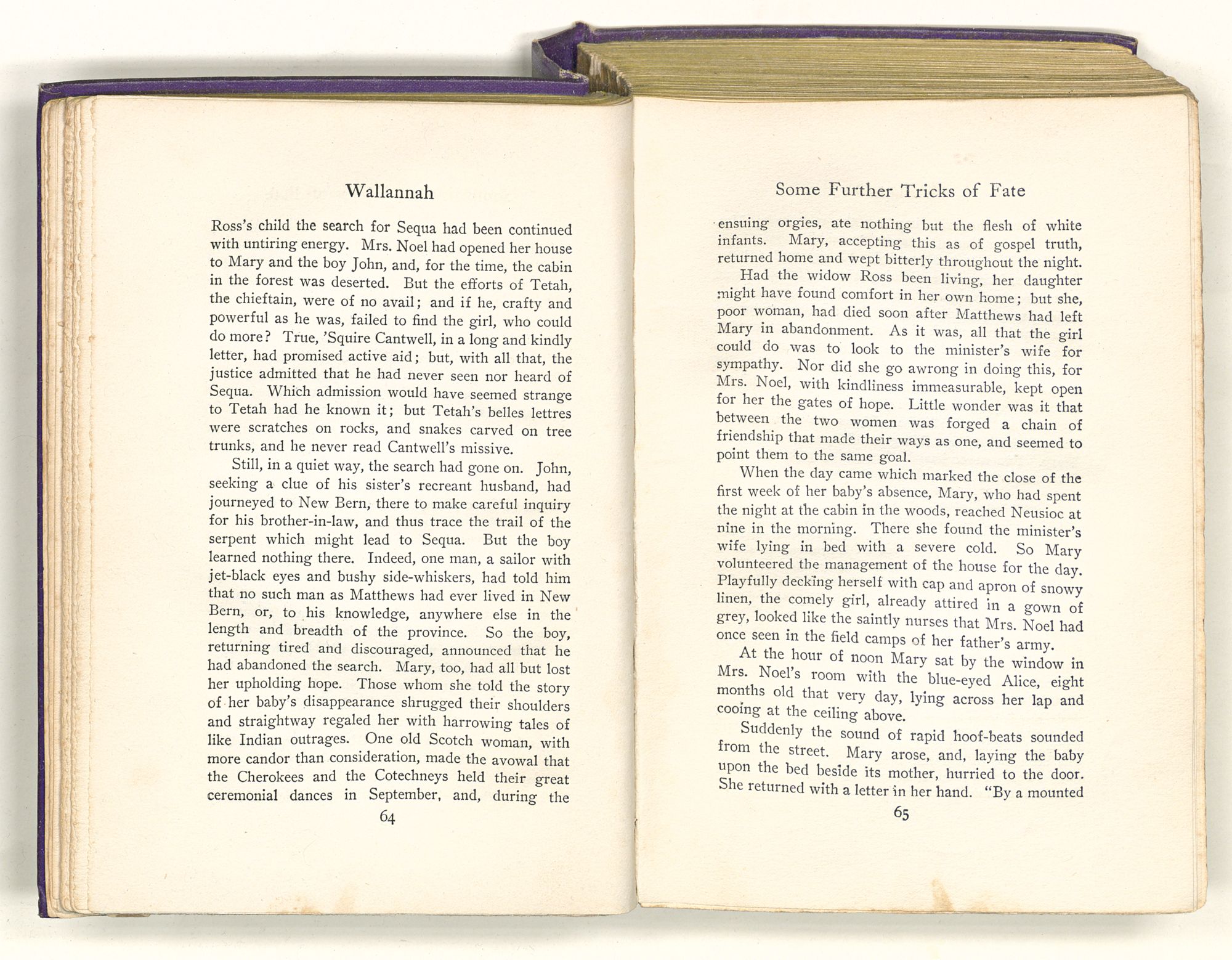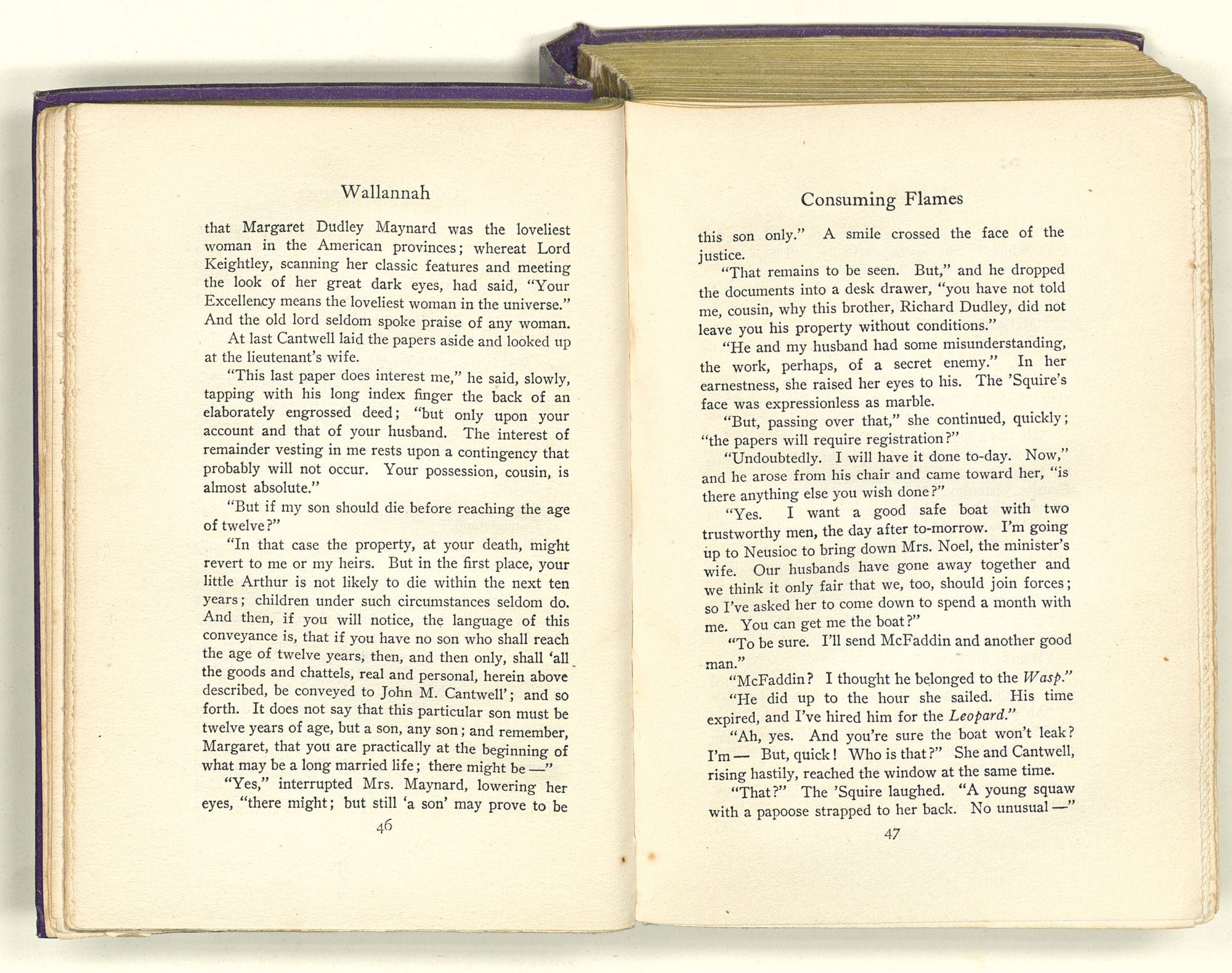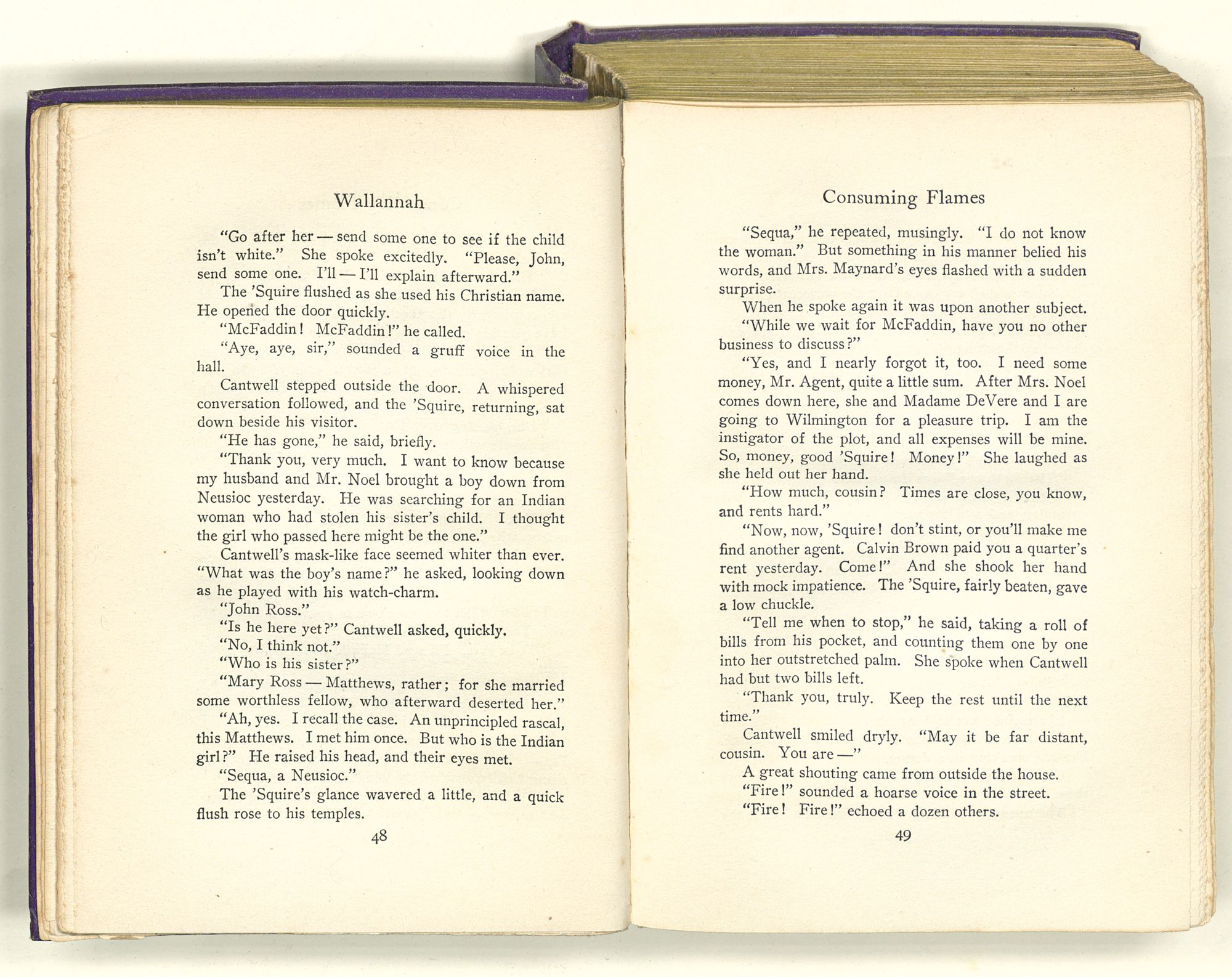 “Sequa stole Mary Ross's baby; and it died in her arms before she got to New Bern. She came by Captain Maynard's house when it first caught afire. She knew where the child's room was, and ran up there to see if it was safe. She had Mary's dead baby in her arms and found Mrs. Maynard's live one on the bed. So she changed the one for the other; and this bunch of affidavits proves that you're the live one and not the dead one. That's a twisted sentence, but I guess you know what it means.”
