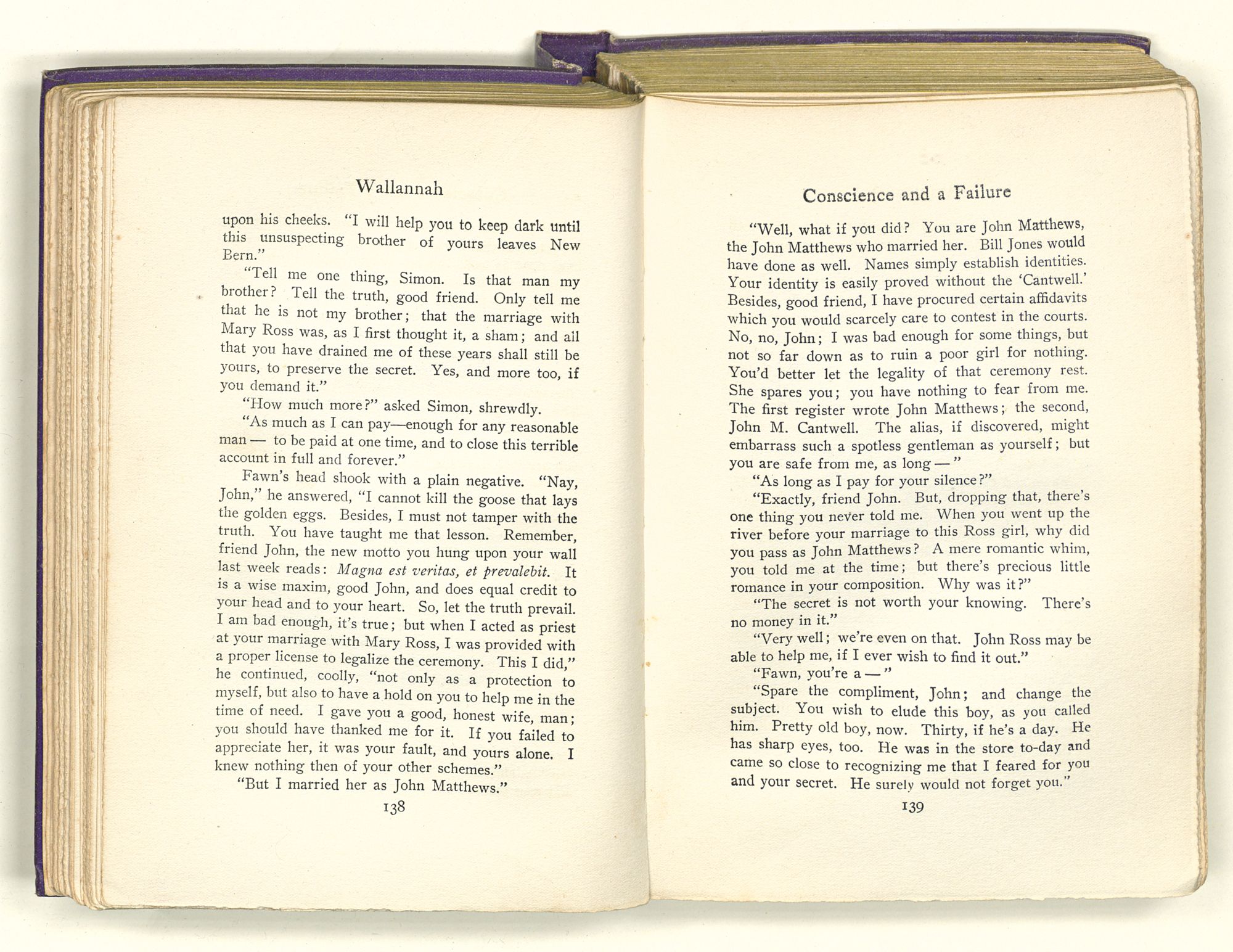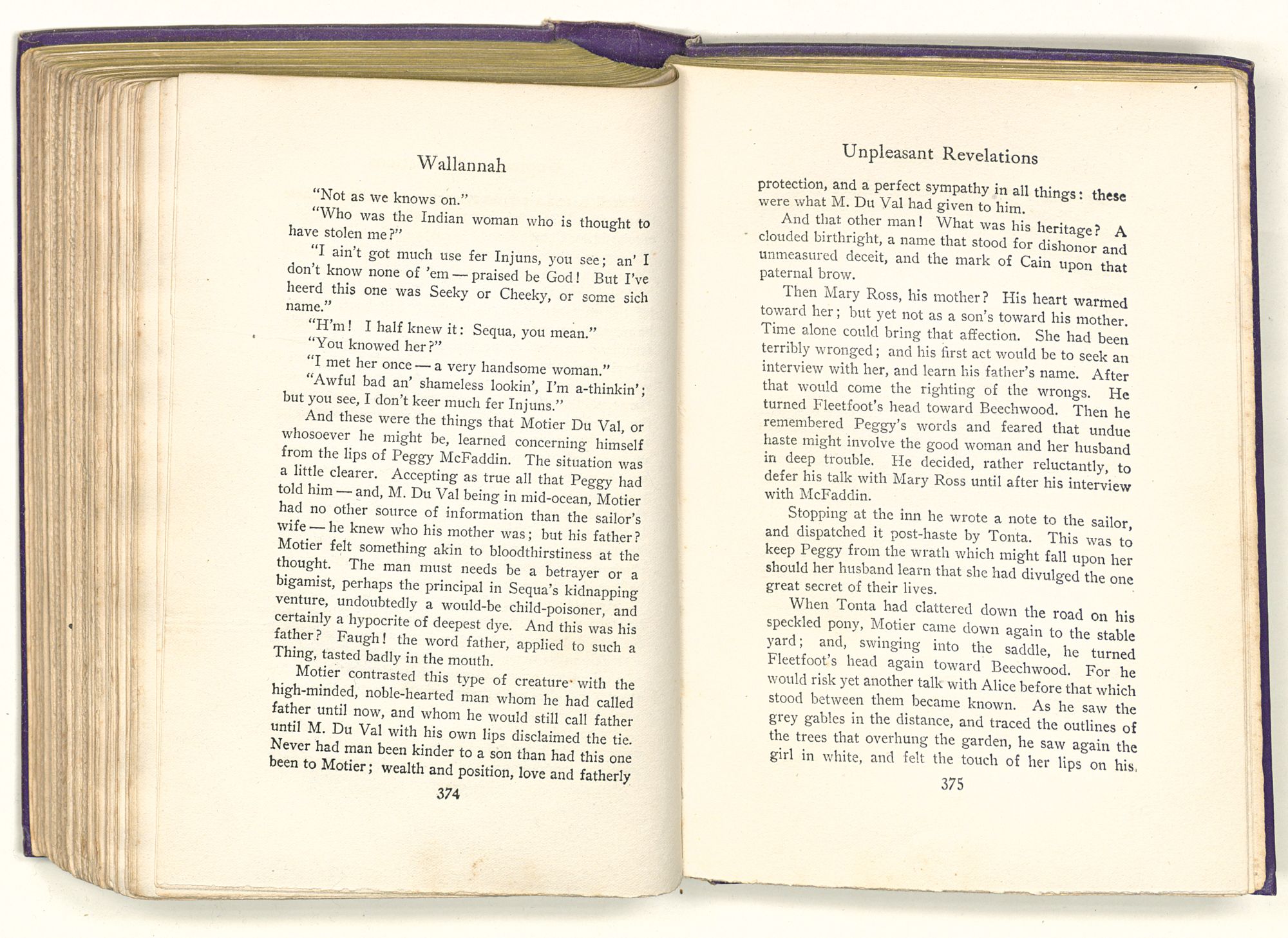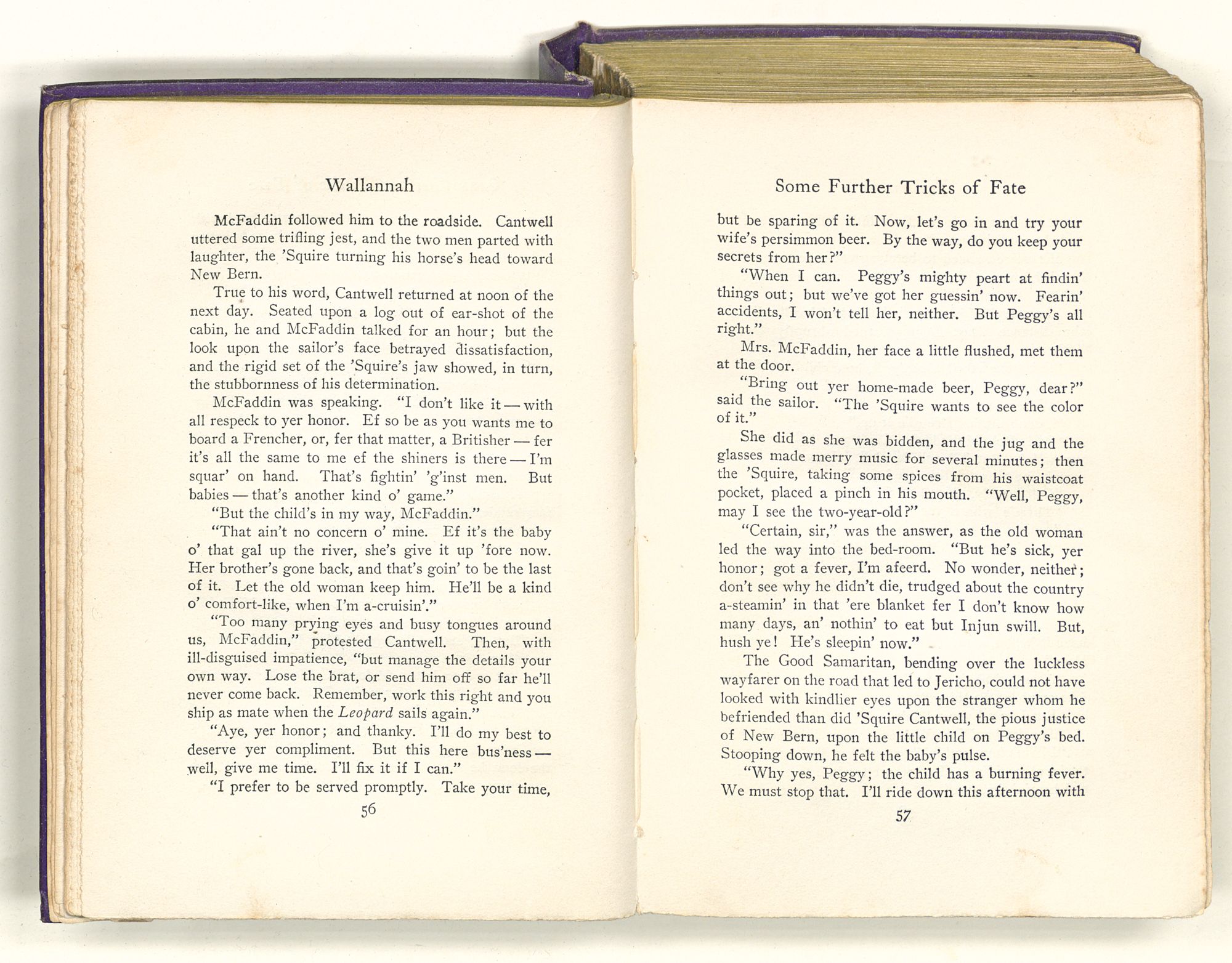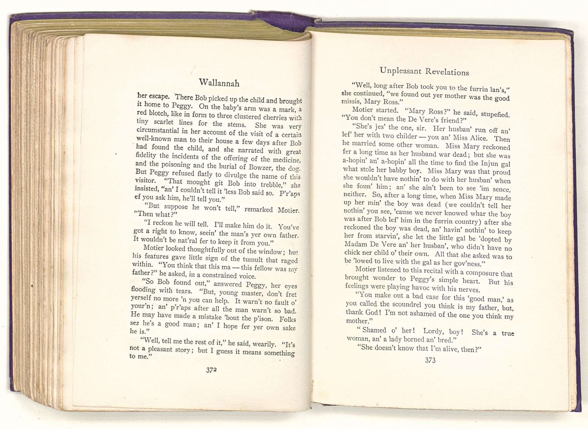 “Sequa stole Mary Ross's baby; and it died in her arms before she got to New Bern. She came by Captain Maynard's house when it first caught afire. She knew where the child's room was, and ran up there to see if it was safe. She had Mary's dead baby in her arms and found Mrs. Maynard's live one on the bed. So she changed the one for the other; and this bunch of affidavits proves that you're the live one and not the dead one. That's a twisted sentence, but I guess you know what it means.”