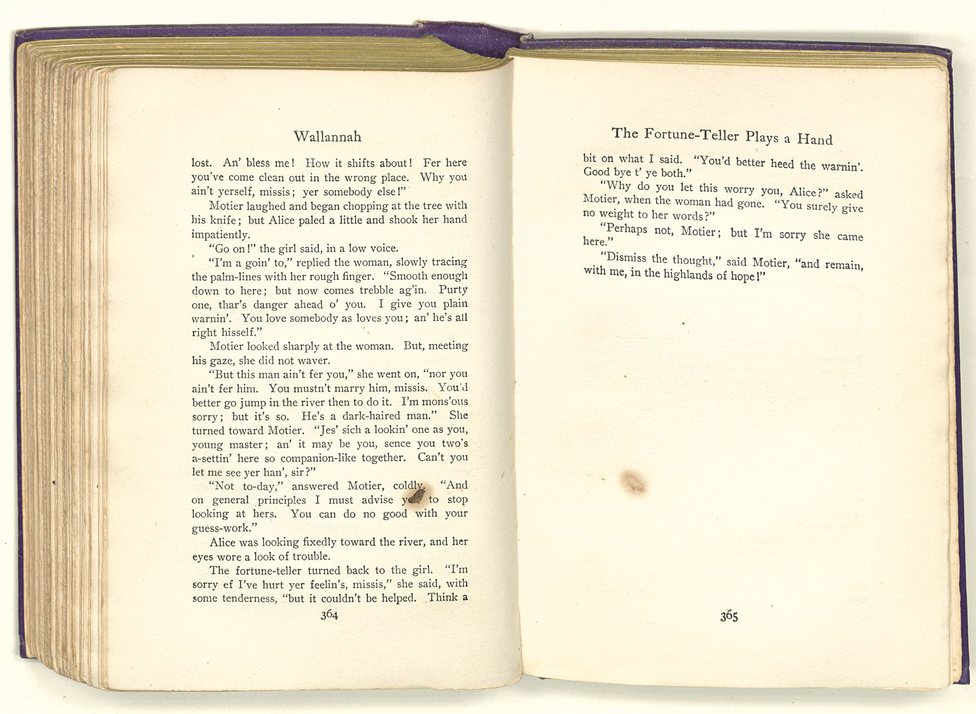 Seeing how ill the man was, they placed him in the best room in the cabin, which room happened to be Mary's, spotlessly swept and garnished. Then the girl, with tumult in her heart, sat half the night by the kitchen fire and wove romances, rose-hued and fantastic, with the dark-eyed youth as their hero.