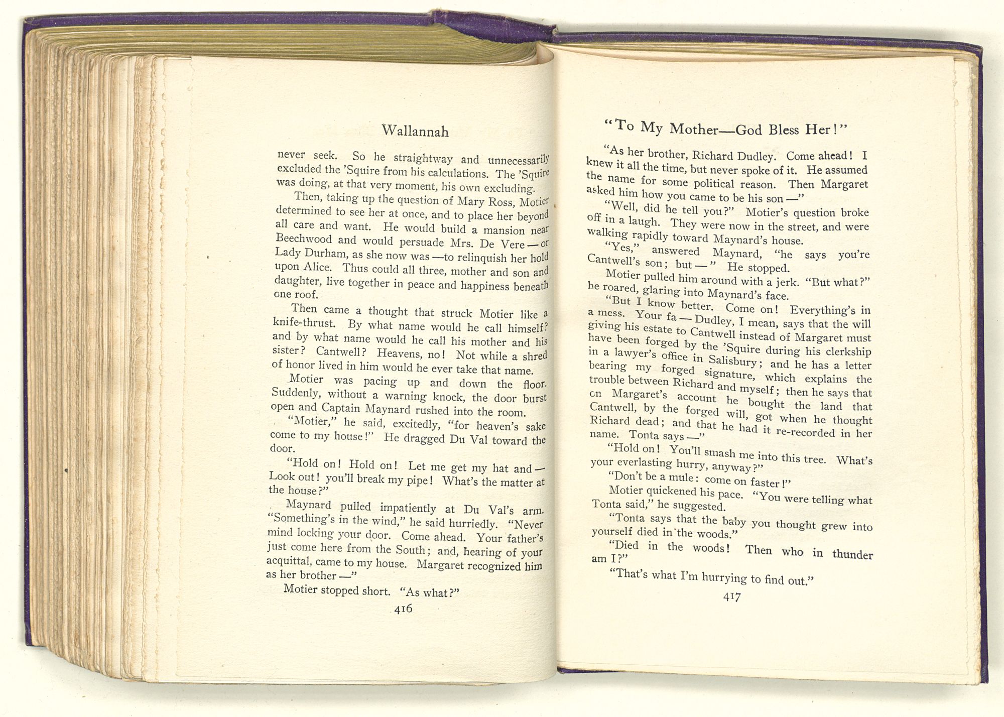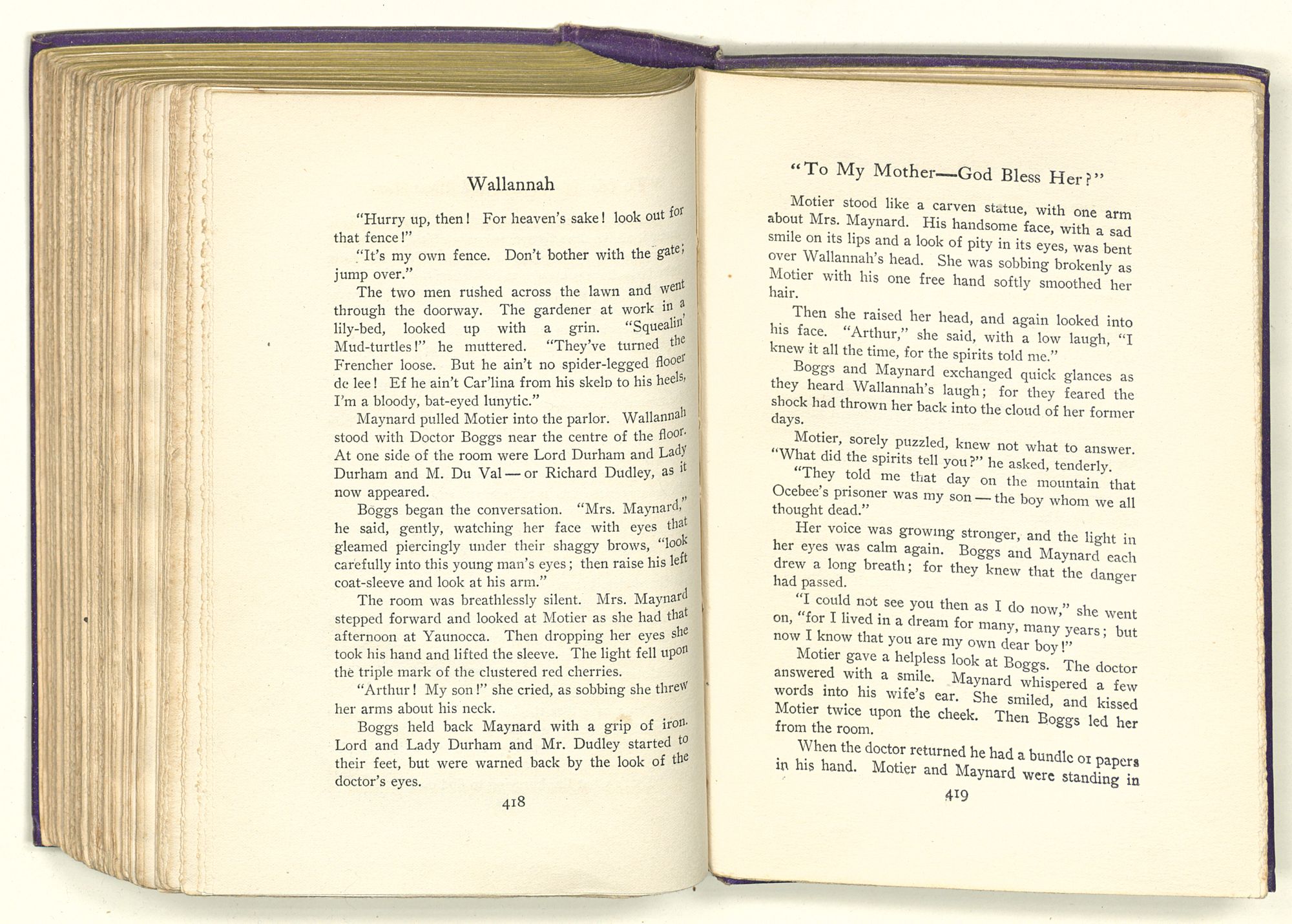 An hour later Motier stood at the head of the table in his father's dining-room. At his right hand stood Captain Maynard, tall and broad-shouldered like his son. Beyond him was Lady Durham, handsome and stately; and at her side stood Lord Durham, his noble height and classic features marking him for a man among men. At Motier's left was Richard Dudley, graceful and patrician in every line; and Mary Ross, with the light of goodness in her comely face; and Ignatius Boggs, M.D., shaggy-browed but kindly-eyed. smiling quietly as one who has attained his dearest desires.