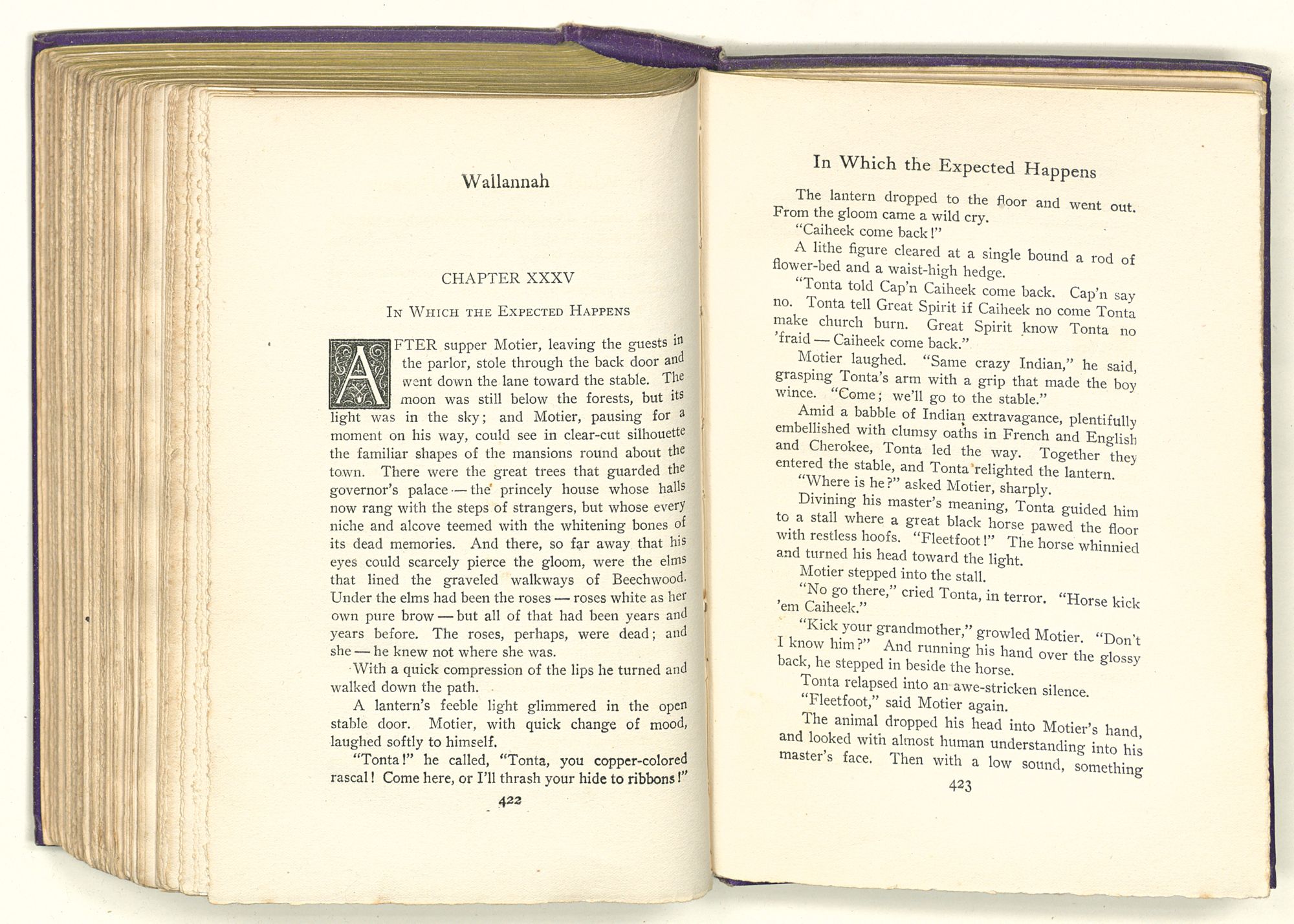 Amid a babble of Indian extravagance, plentifully embellished with clumsy oaths in French and English and Cherokee, Tonta led the way. Together they entered the stable, and Tonta relighted the lantern.