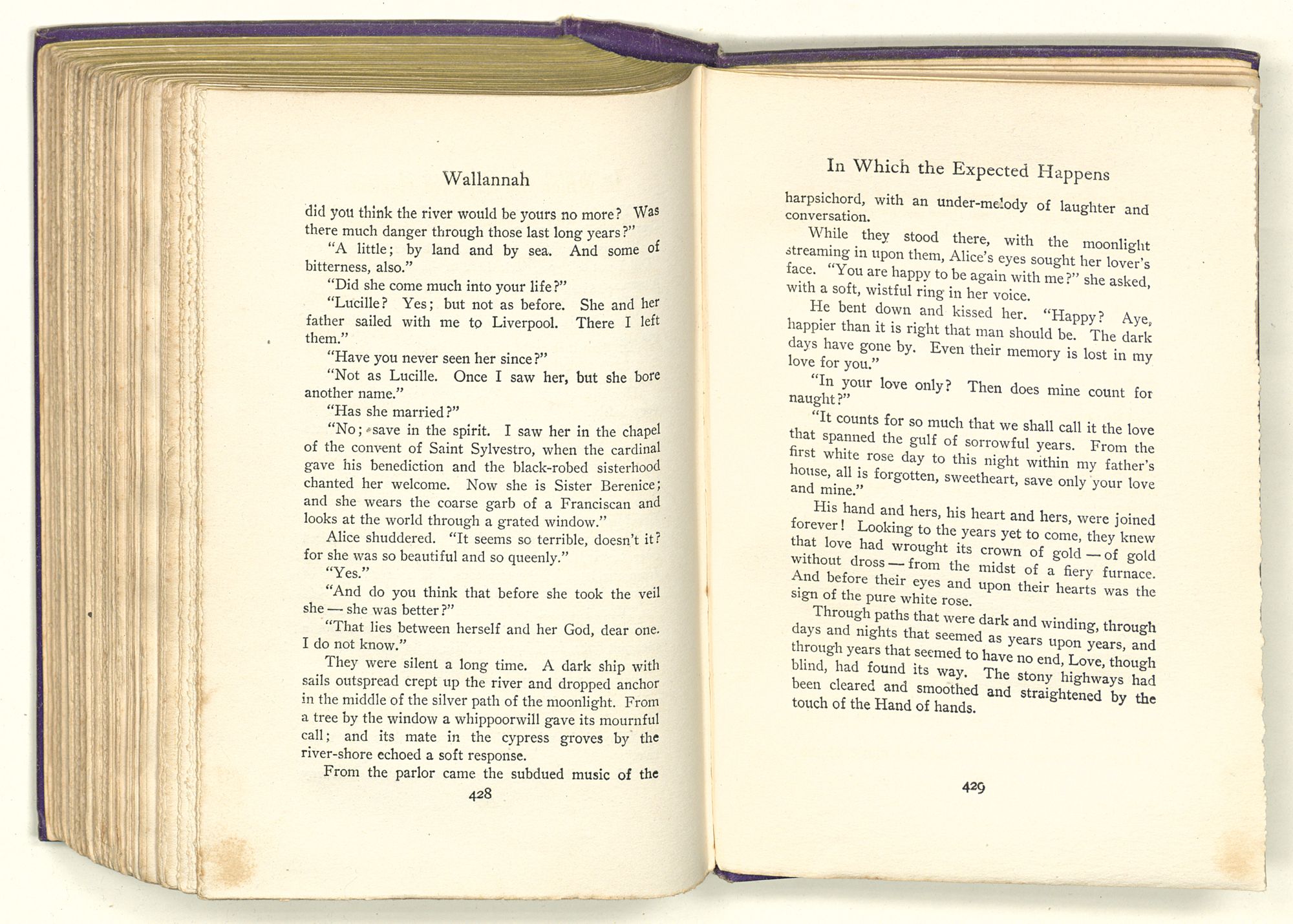 While they stood there, with the moonlight streaming in upon them, Alice's eyes sought her lover's face. “You are happy to be again with me?” she asked, with a soft, wistful ring in her voice.