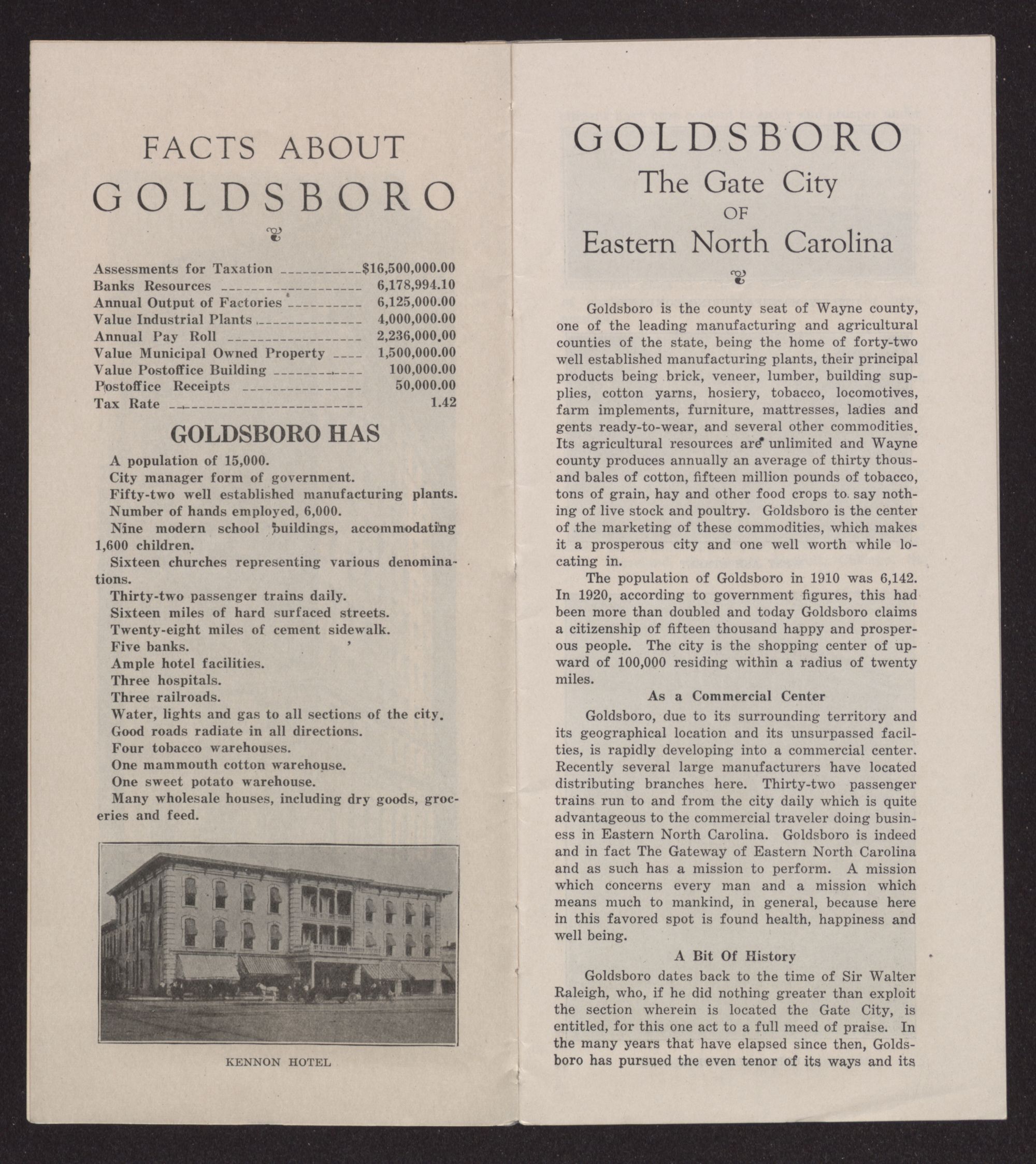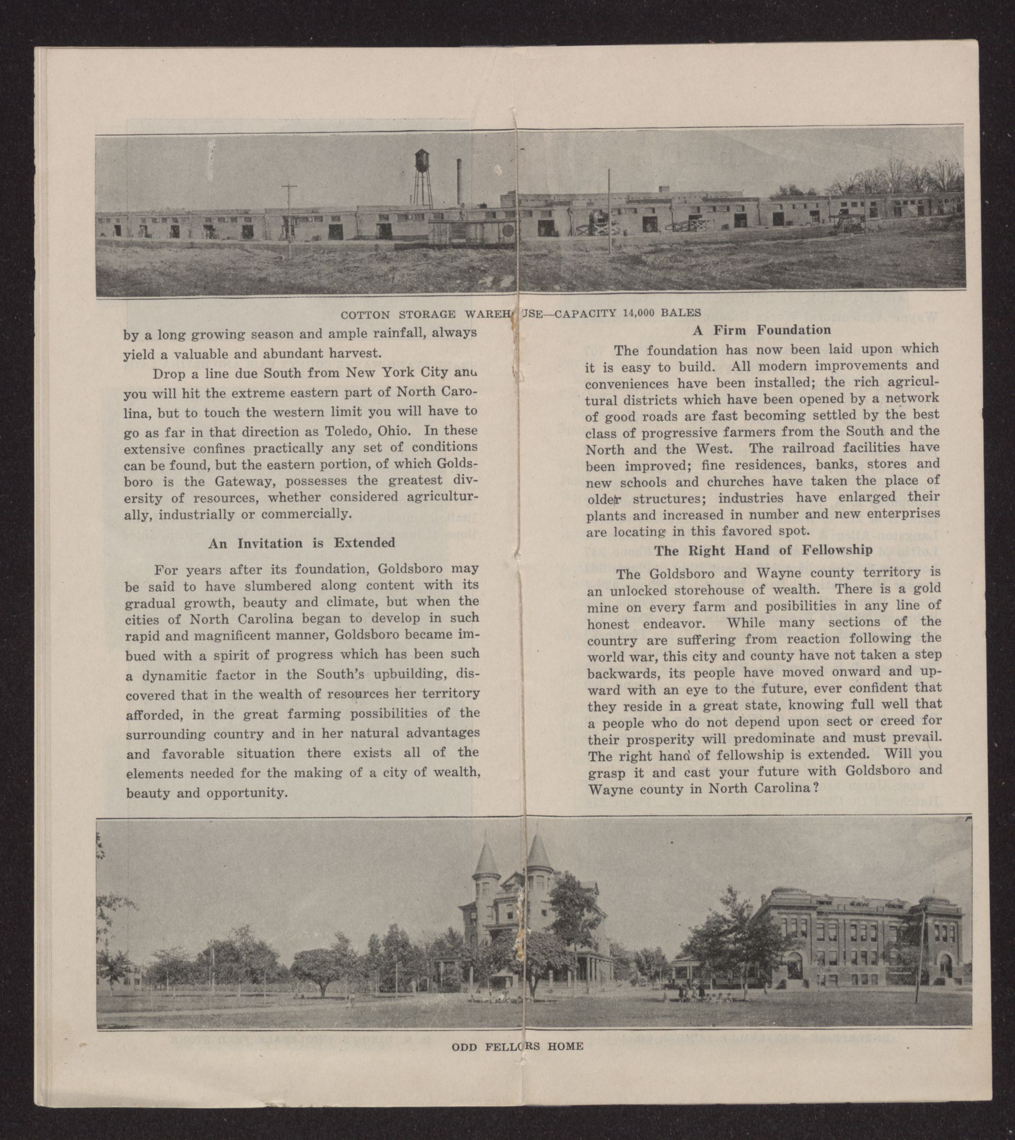 Why Come To Goldsboro?Health conditions are ideal, the death rate averaging less than nine to a thousand. The city owns its splendid water system, furnishing at a minimum
