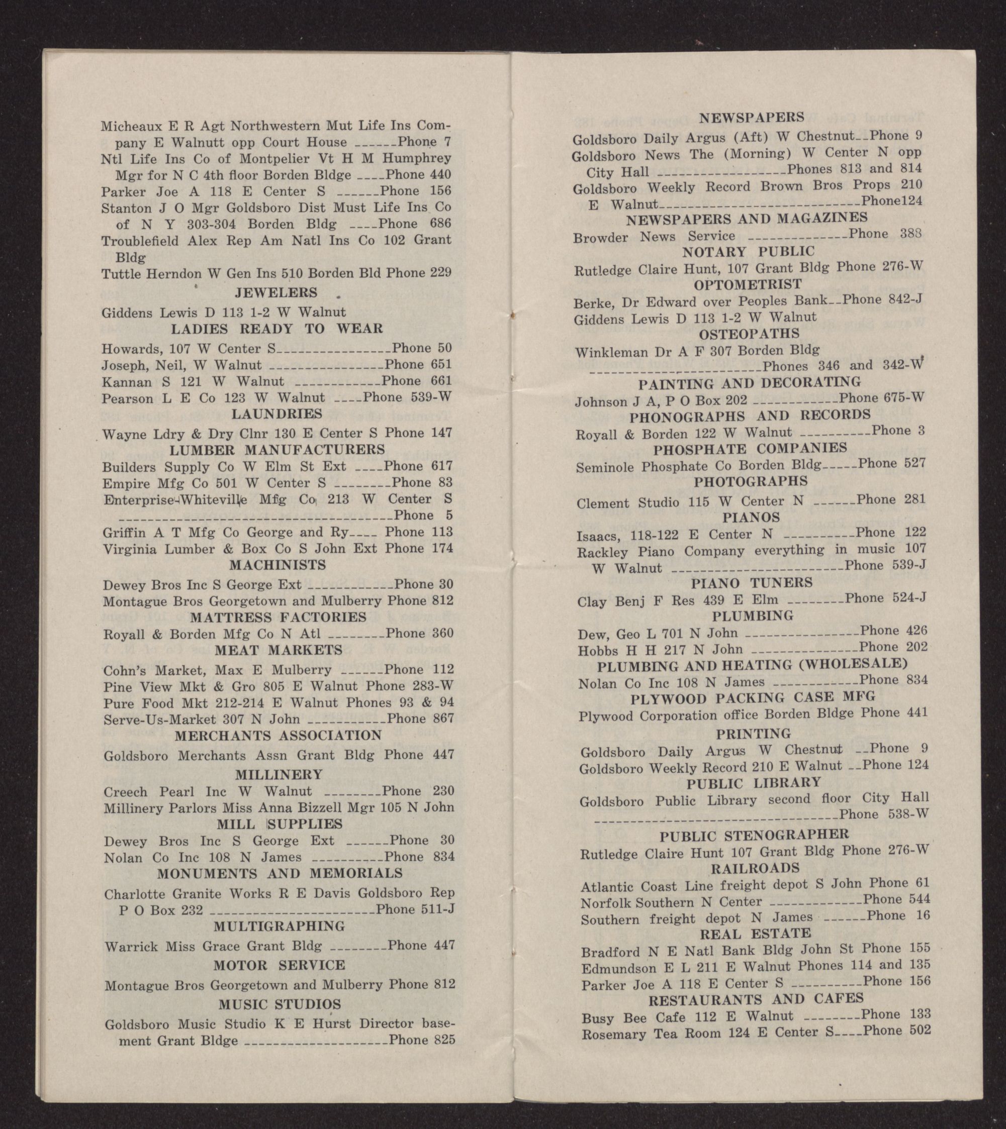 | Goldsboro News The (Morning) W Center N opp City Hall | Phones 813 and 814 |