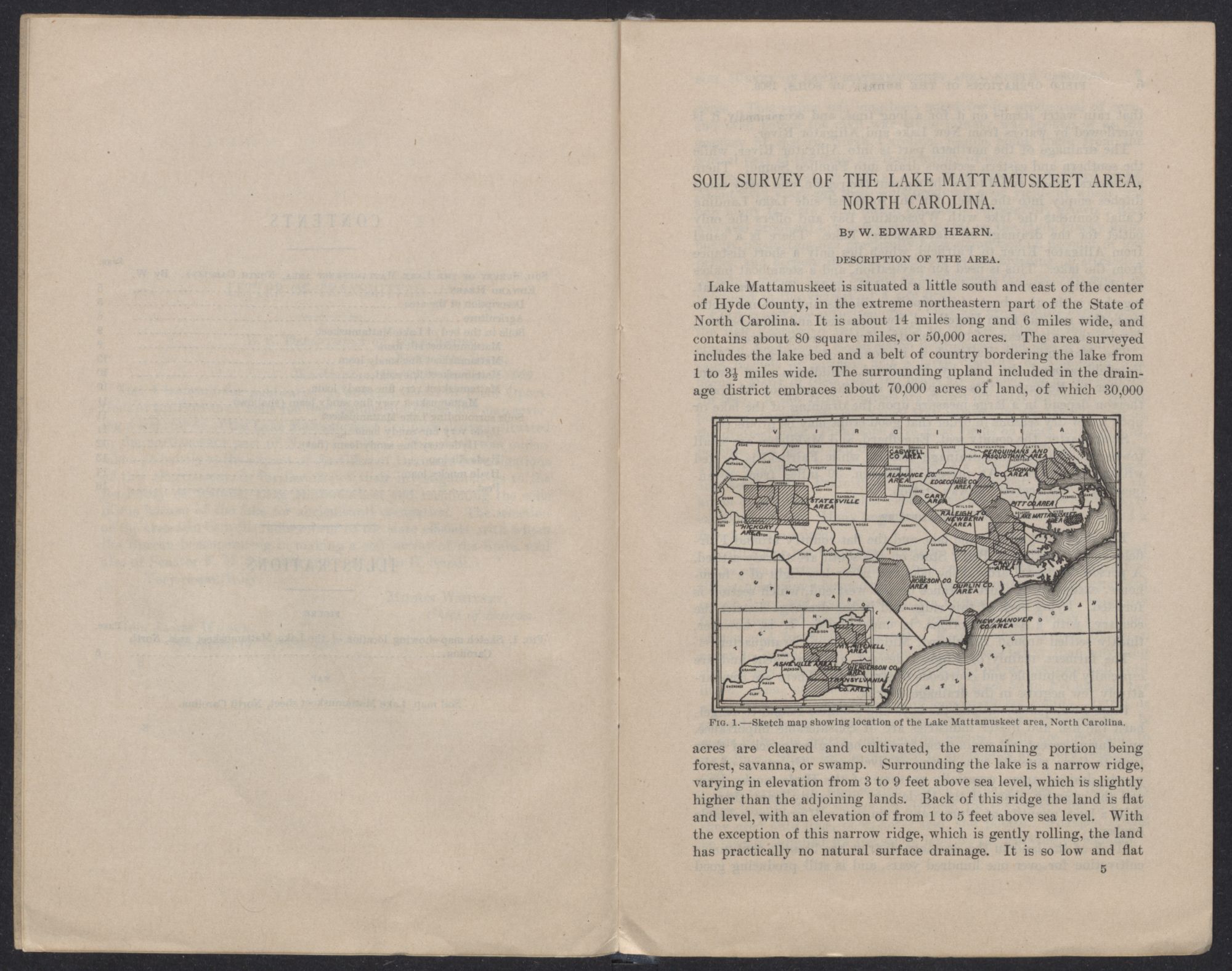 | Soil Survey of the Lake Mattamuskeet area, North Carolina. By W. Edward Hearn | 5 |