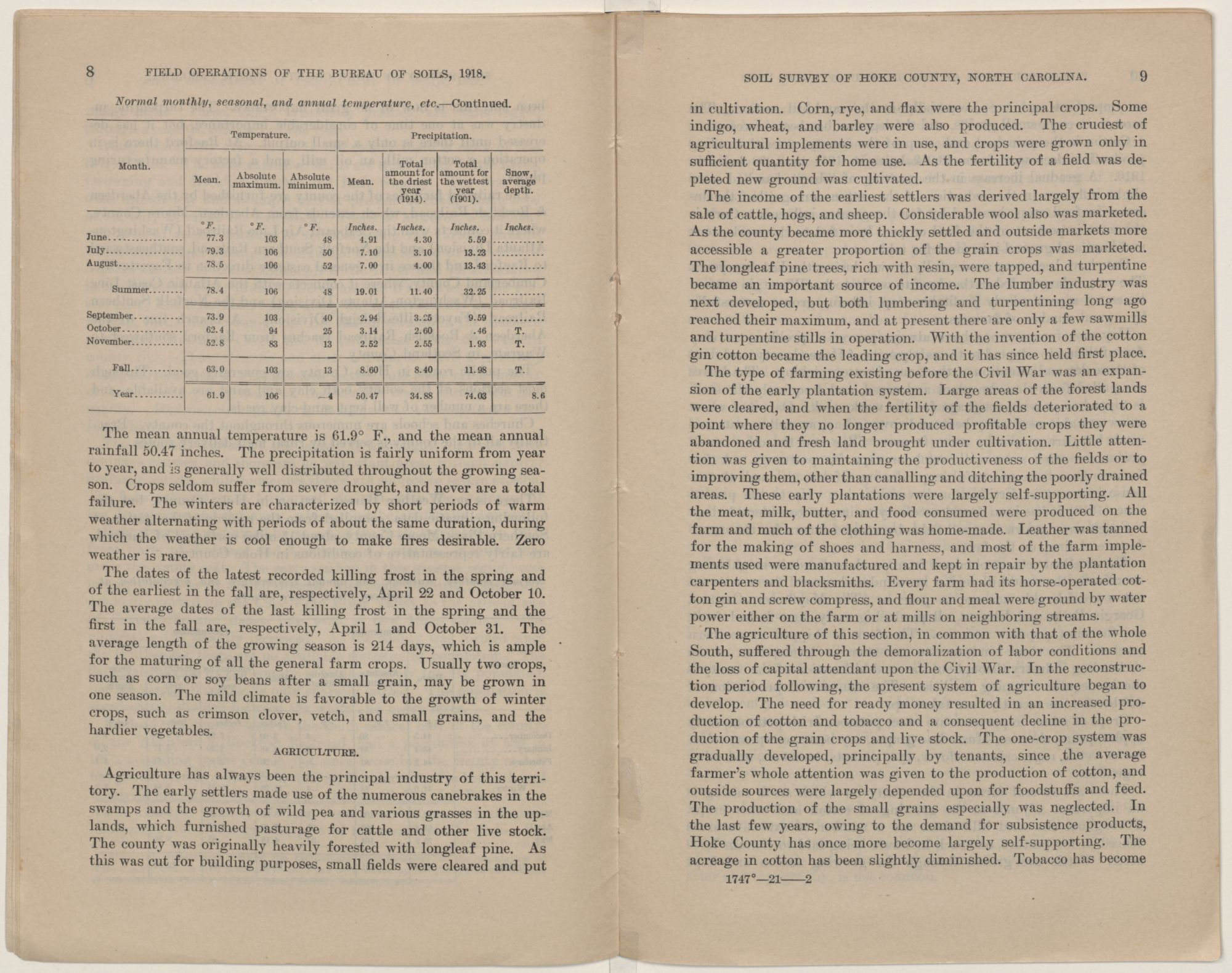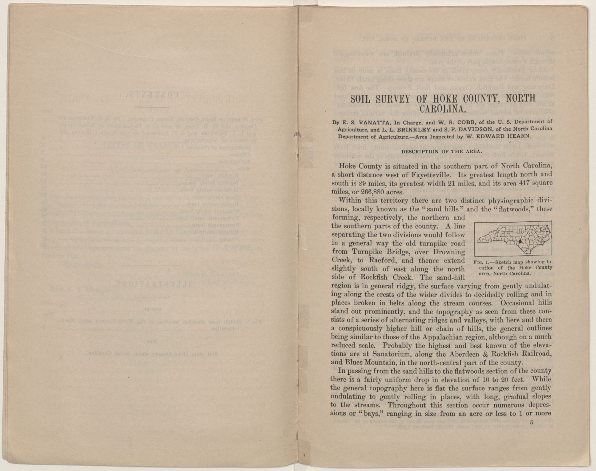 SOIL SURVEY OF HOKE COUNTY, NORTH CAROLINA.BYE. S. VANATTA, IN CHARGE, AND W. B. COBB, OF THE U. S. DEPARTMENT OF AGRICULTURE, AND L. L. BRINKLEY AND S. F. DAVIDSON, OF THE NORTH CAROLINA DEPARTMENT OF AGRICULTURE.
