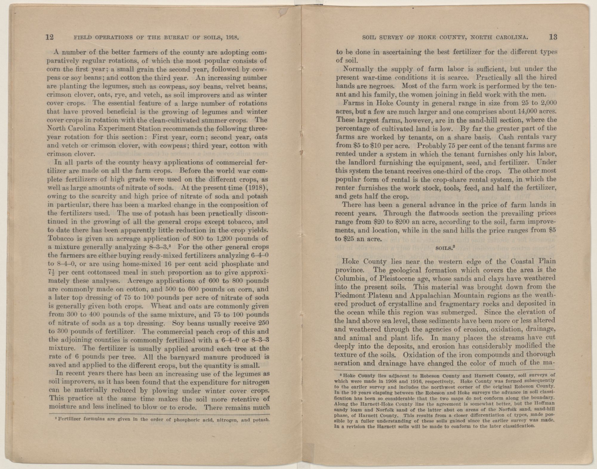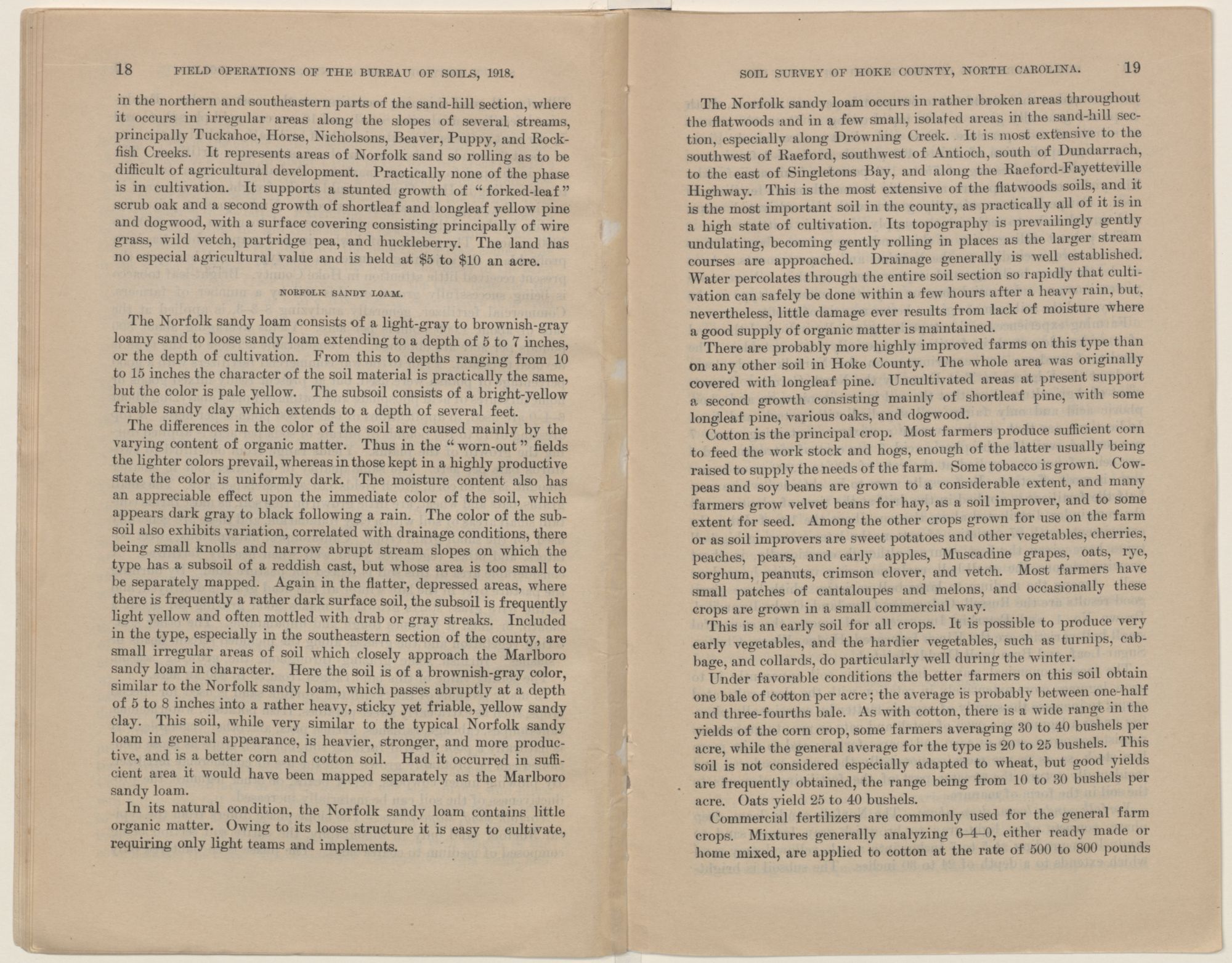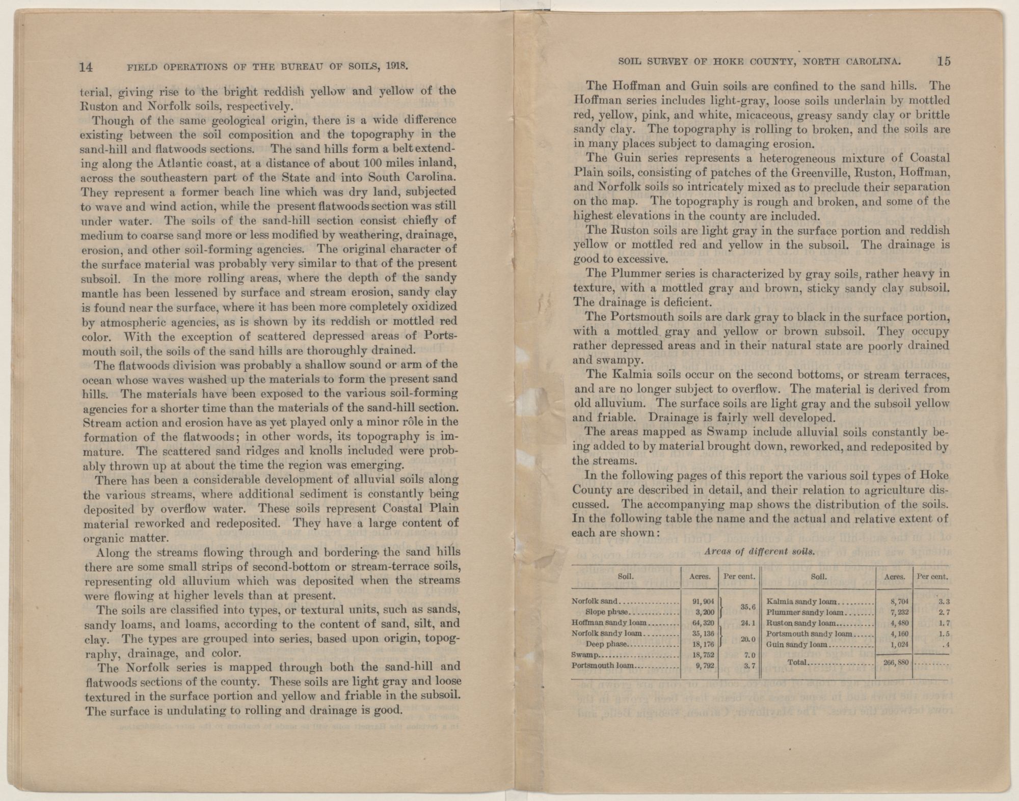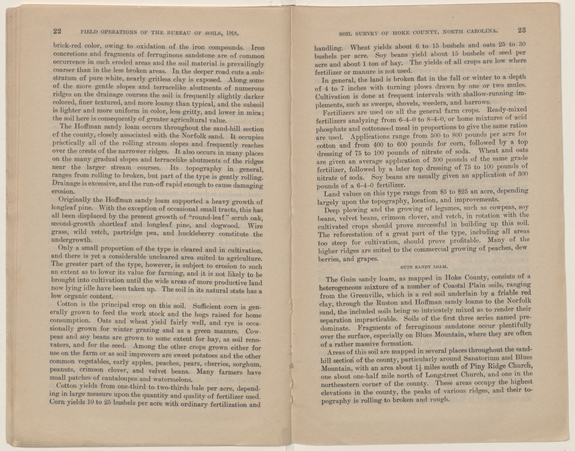 Most of the soils of Hoke County are easily handled, and light implements and work stock are in general use.