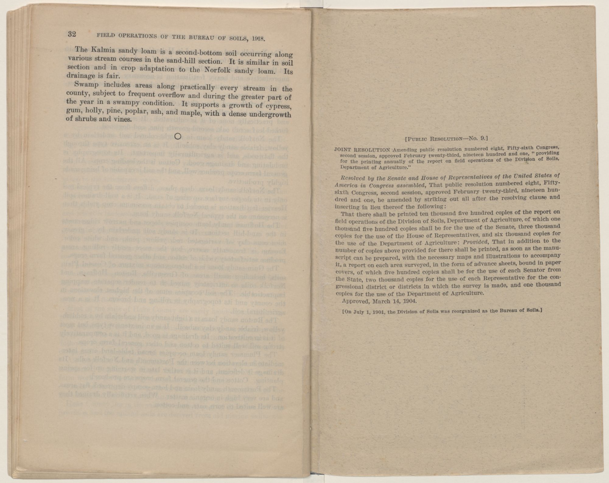[PUBLIC RESOLUTION—NO. 9.]JOINT RESOLUTION Amending public resolution numbered eight, Fifty-sixth Congress, second session, approved February twenty-third, nineteen hundred and one, “providing for the printing annually of the report on field operations of the Division of Soils, Department of Agriculture.”