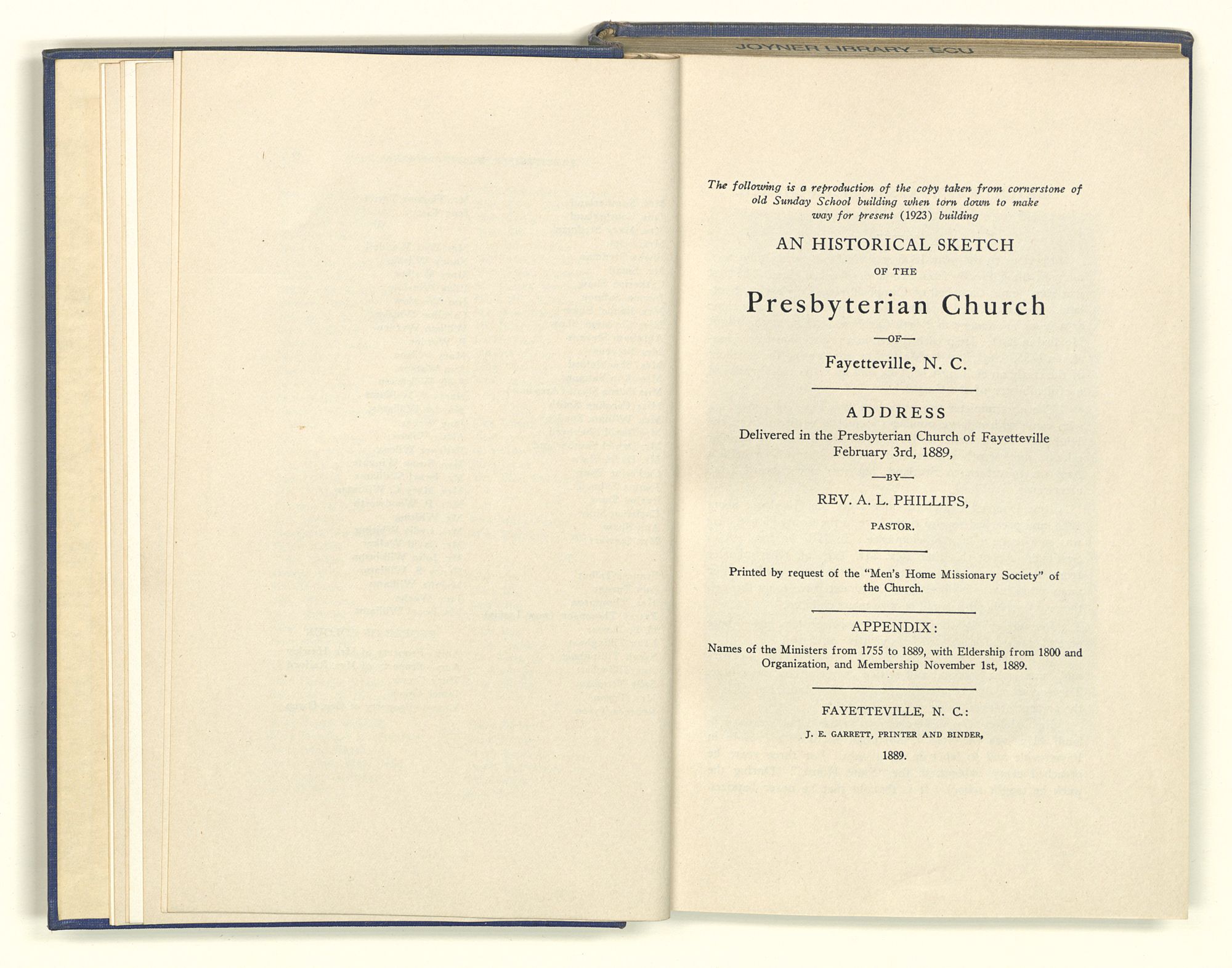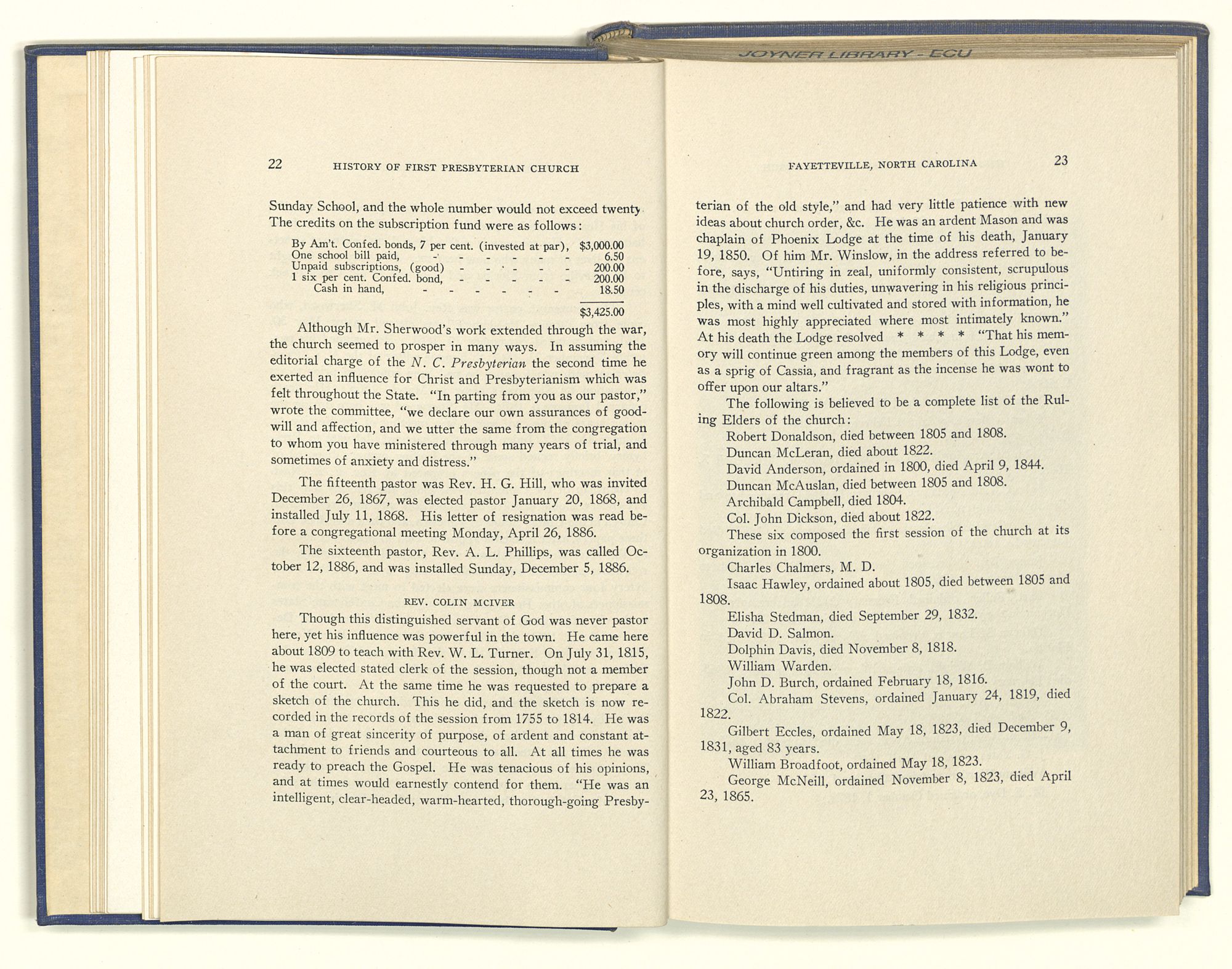 Historyof theFirstPresbyterianChurchFayetteville,N.C.