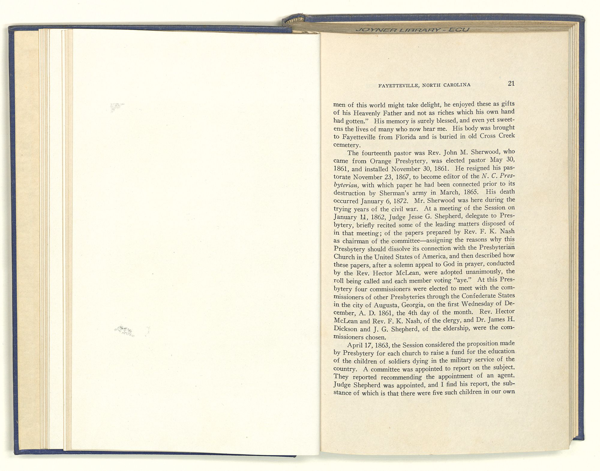 Occurring within the Jurisdiction of the Presbyterian Church's Session at Fayetteville, North Carolina