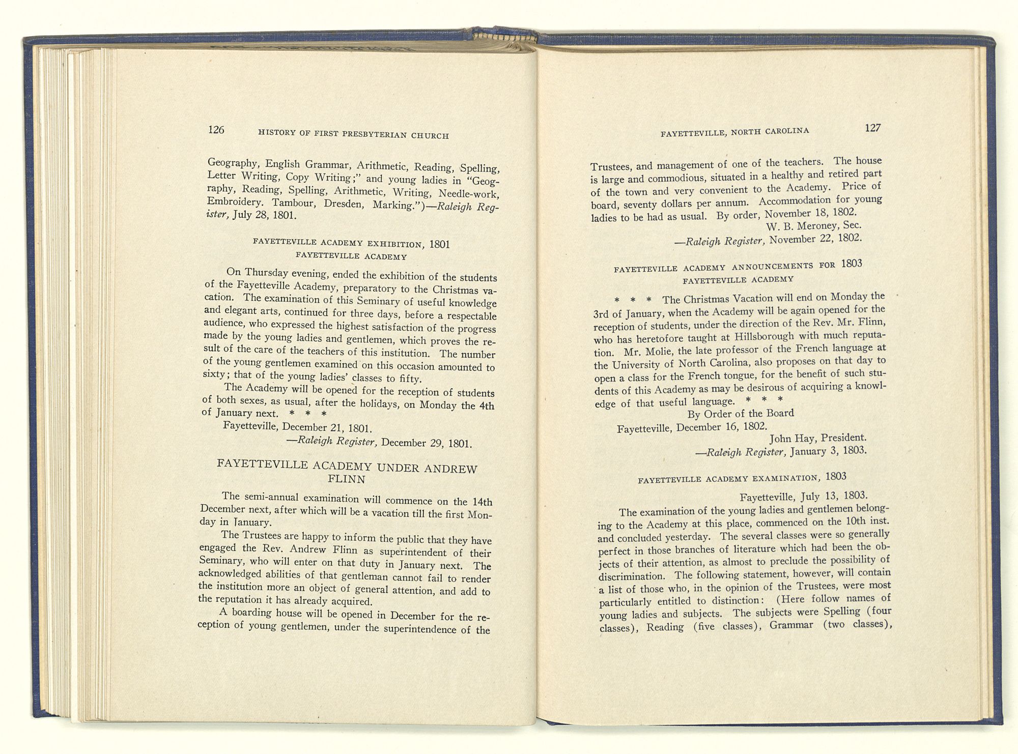 THE FAYETTEVILLE PRESBYTERIAN CHURCH REGISTER