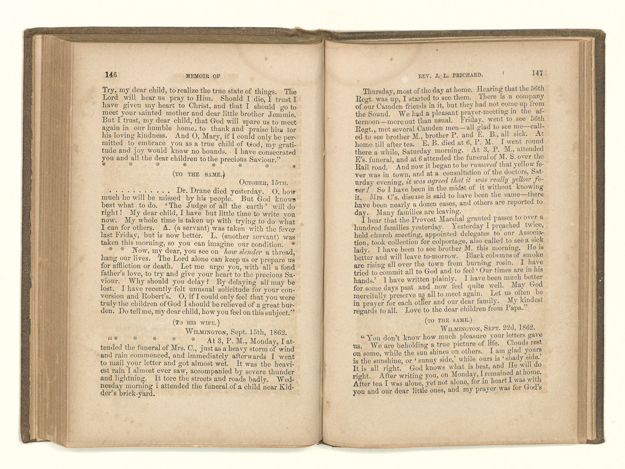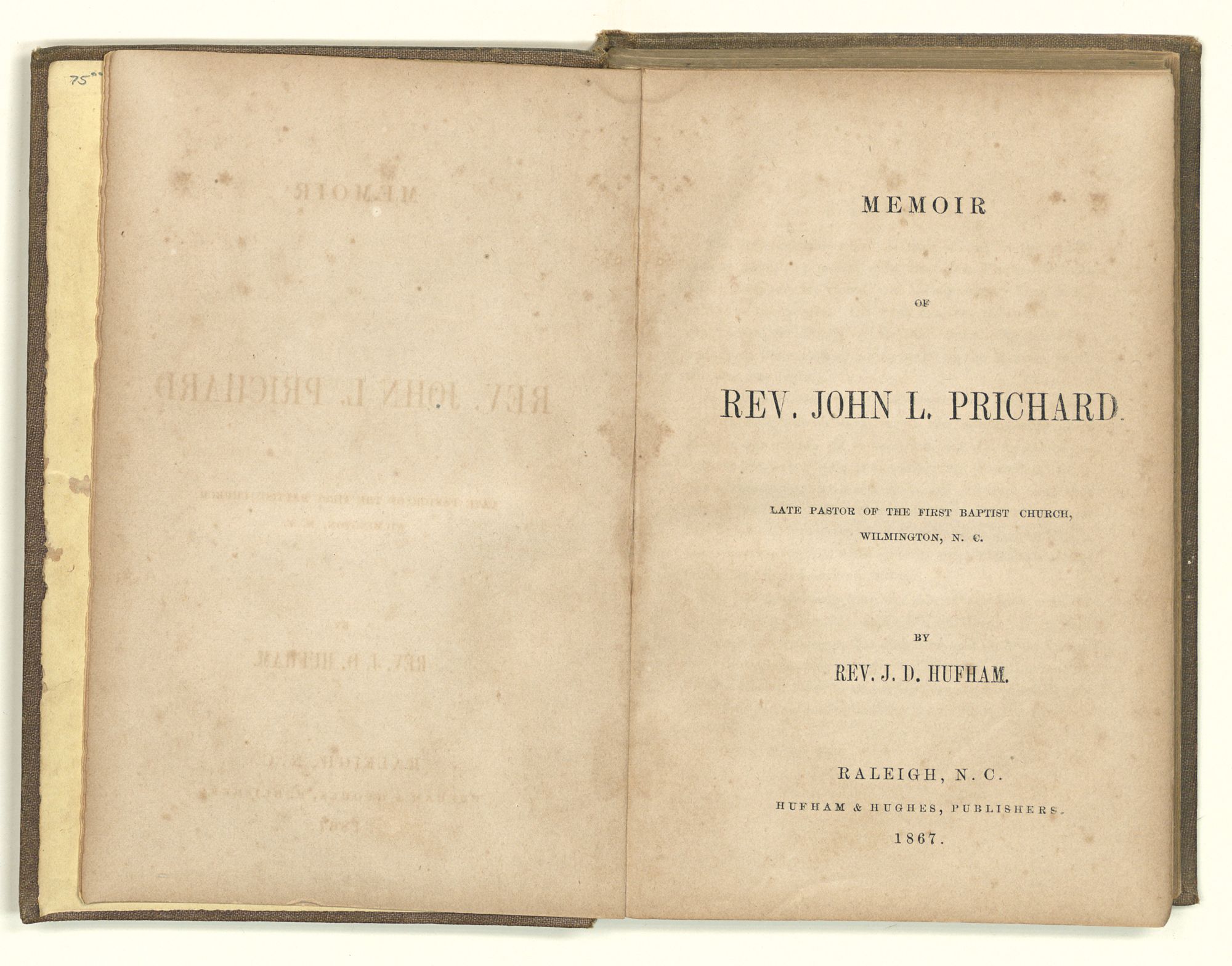 MEMOIR OF REV. JOHN L. PRICHARD.LATE PASTOR OF THE FIRST BAPTIST CHURCH, WILMINGTON, N. C.BY REV. J. D. HUFHAM.RALEIGH, N. C.HUFHAM & HUGHES, PUBLISHERS.1867.