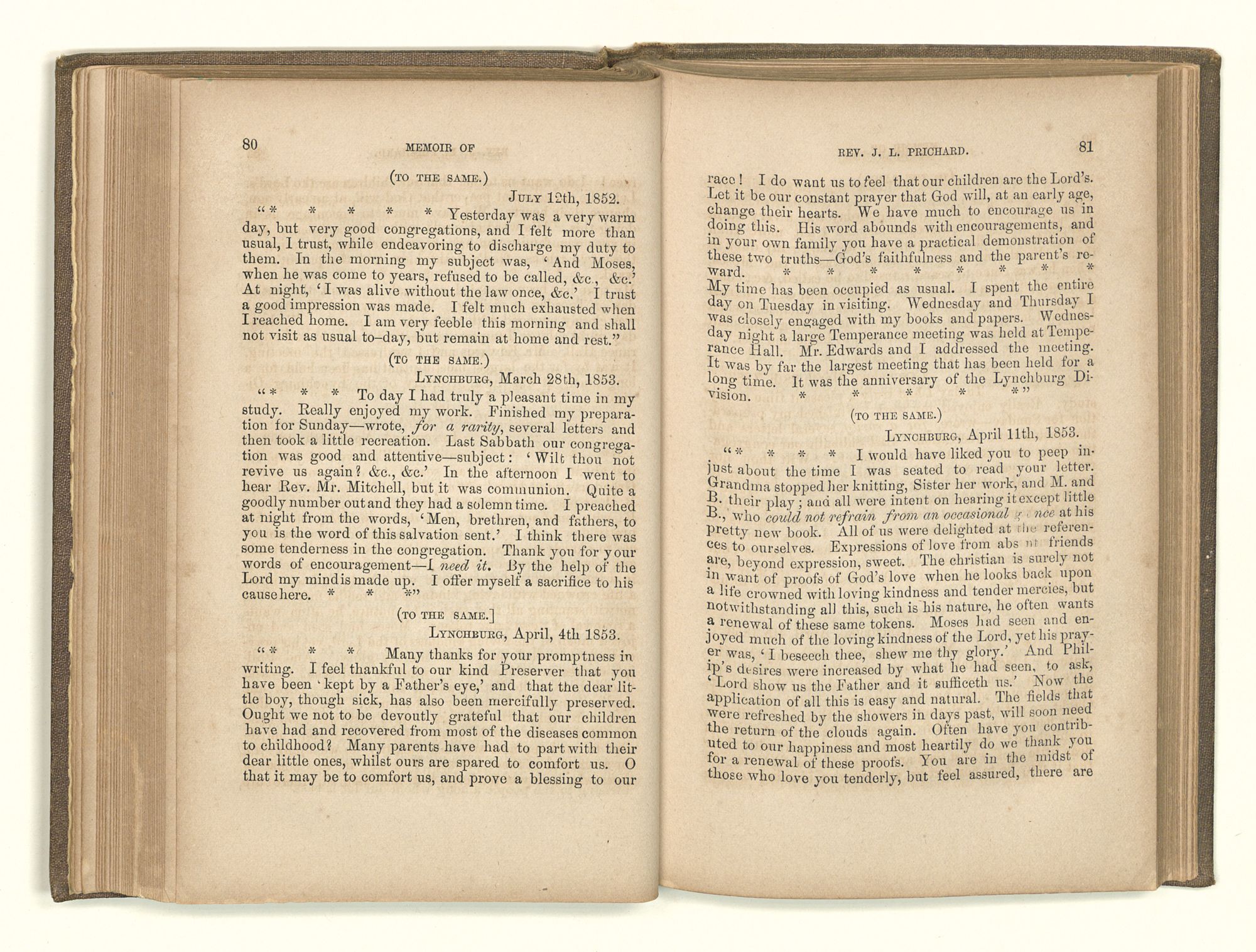 This survey will be closed by a reference to Mr. Prichard's character and influence by one of his Virginia brethren, who knew him intimately: