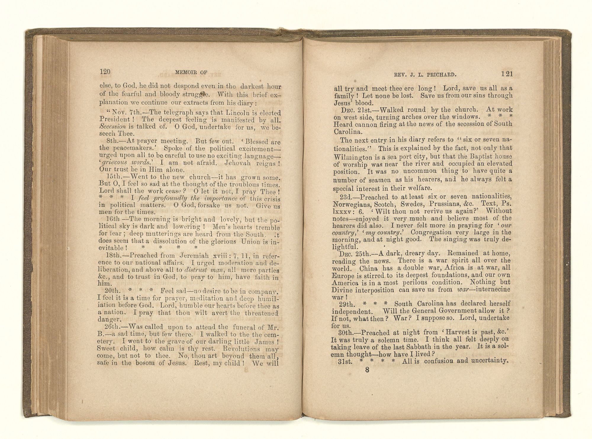 The little volume, which is now offered to the public, was to have been issued soon after Mr. Prichard's death while his name, his virtues and his labors were fresh in the minds of the people. The work has been delayed by several causes, principally by the difficulties experienced in collecting the materials which make up the Memoir, while the war was raging.