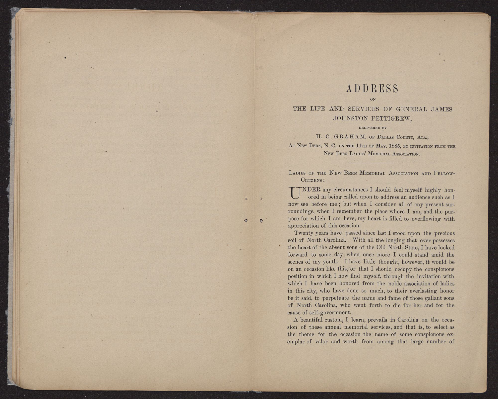 DELIVERED BY H. C. GRAHAM, of Dallas County, Ala., At New Bern, N. C., on the 11th of May, 1885, by invitation from the New Bern Ladies’ Memorial Association.