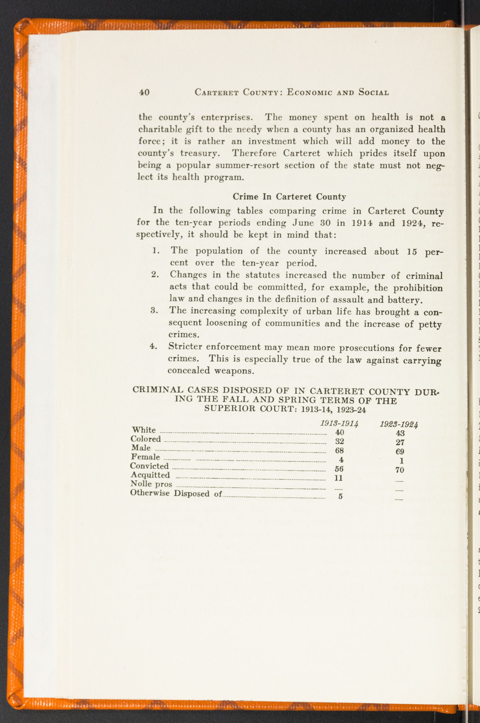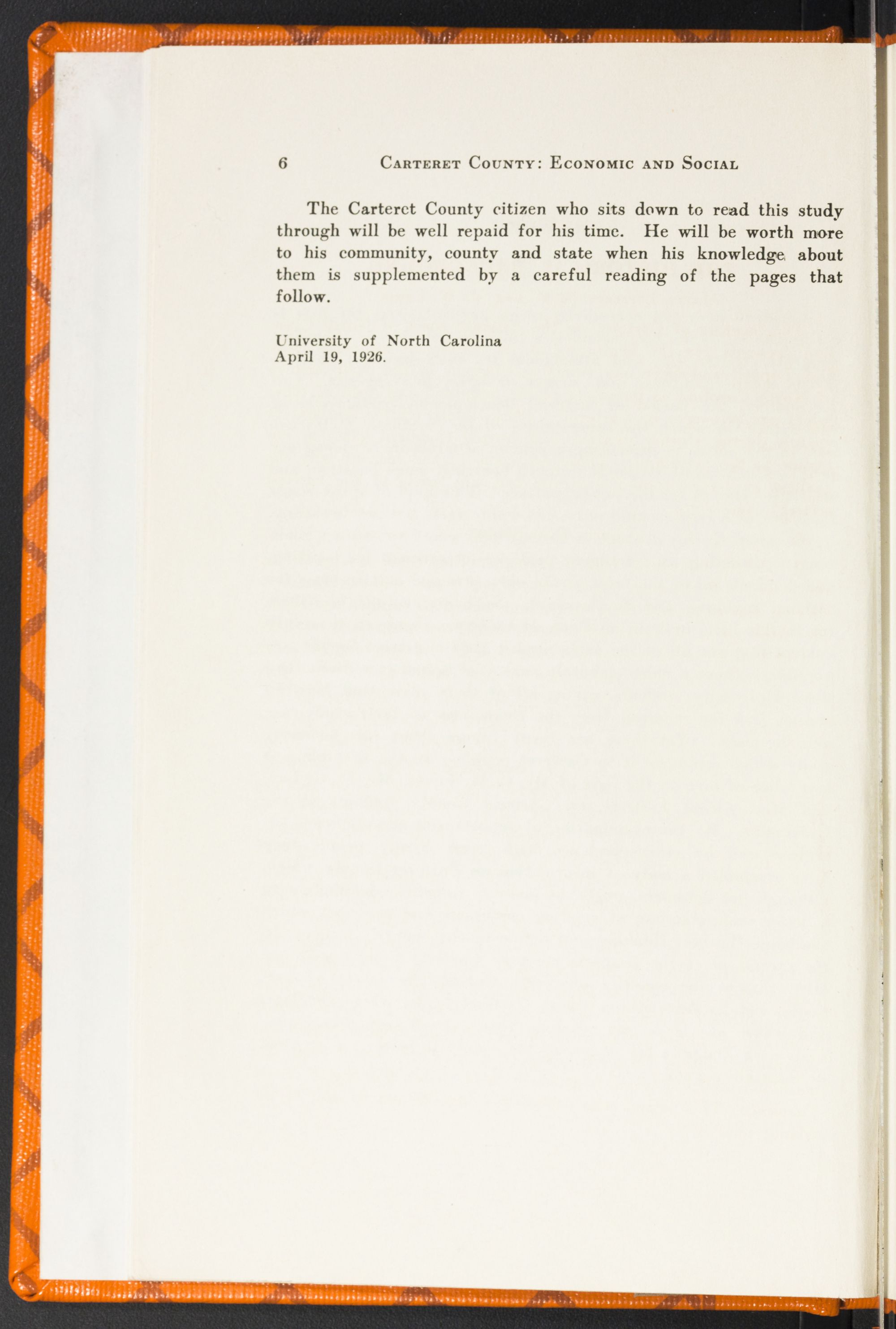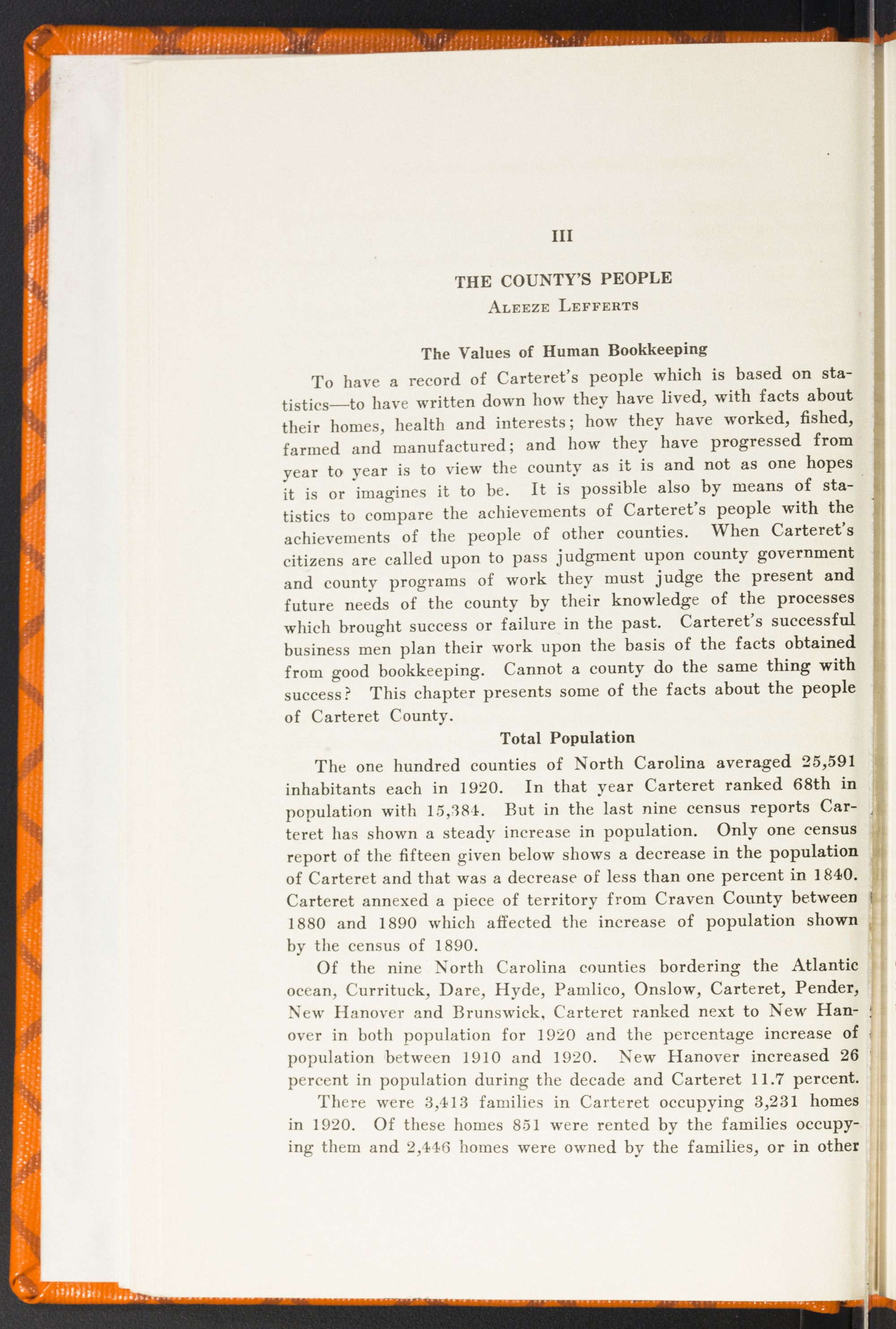 In this chapter are briefly reviewed six major problems of direct vital concern to Carteret County people. We have many others, but those presented here are deemed fundamental and basic. They are hard and knotty ones but not incapable of solution. Our people applying themselves to the task of making Carteret a better county to live in will daily grow in the graces of citizenship and fraternity, which, after all, are the best products of human existence anywhere.