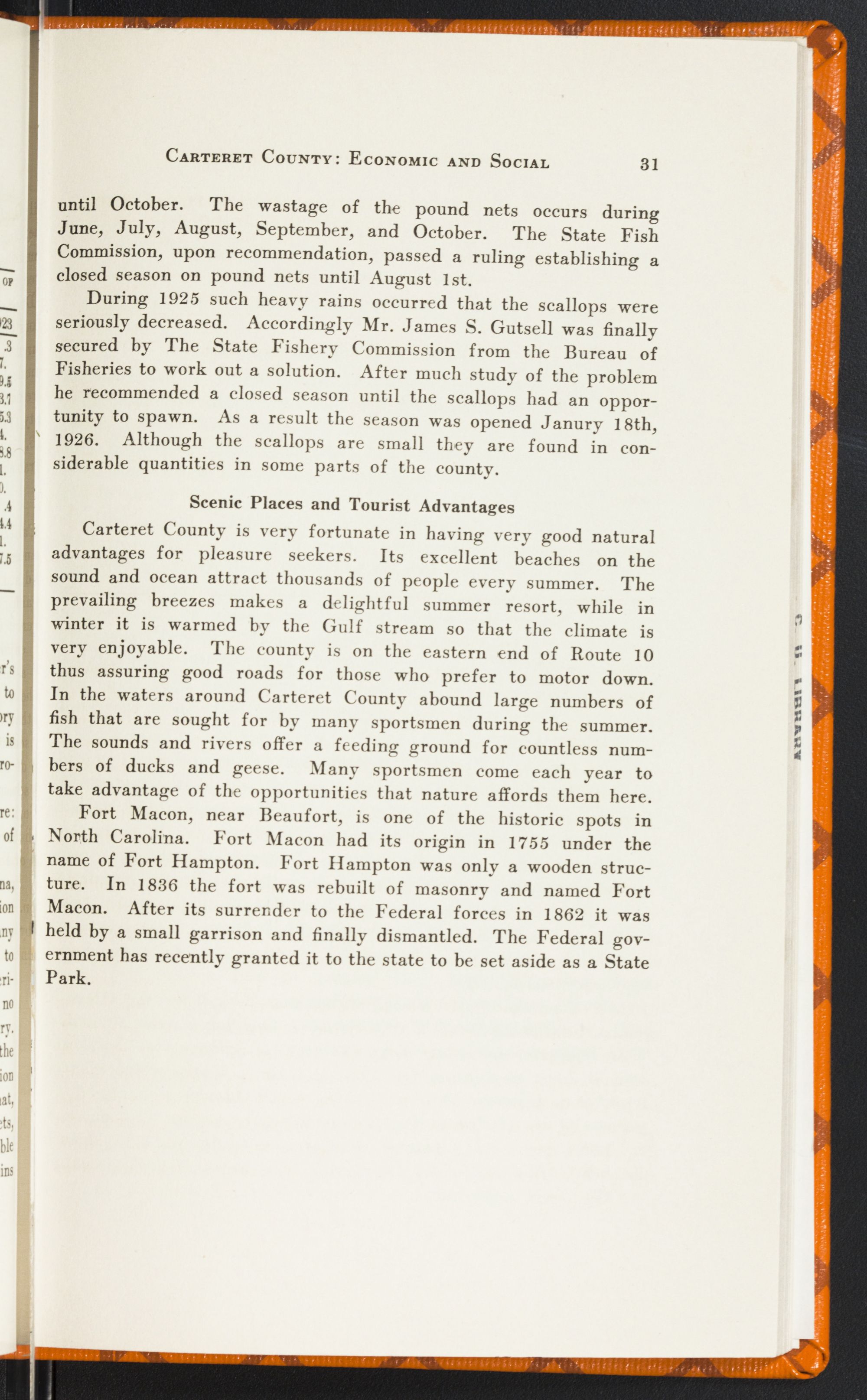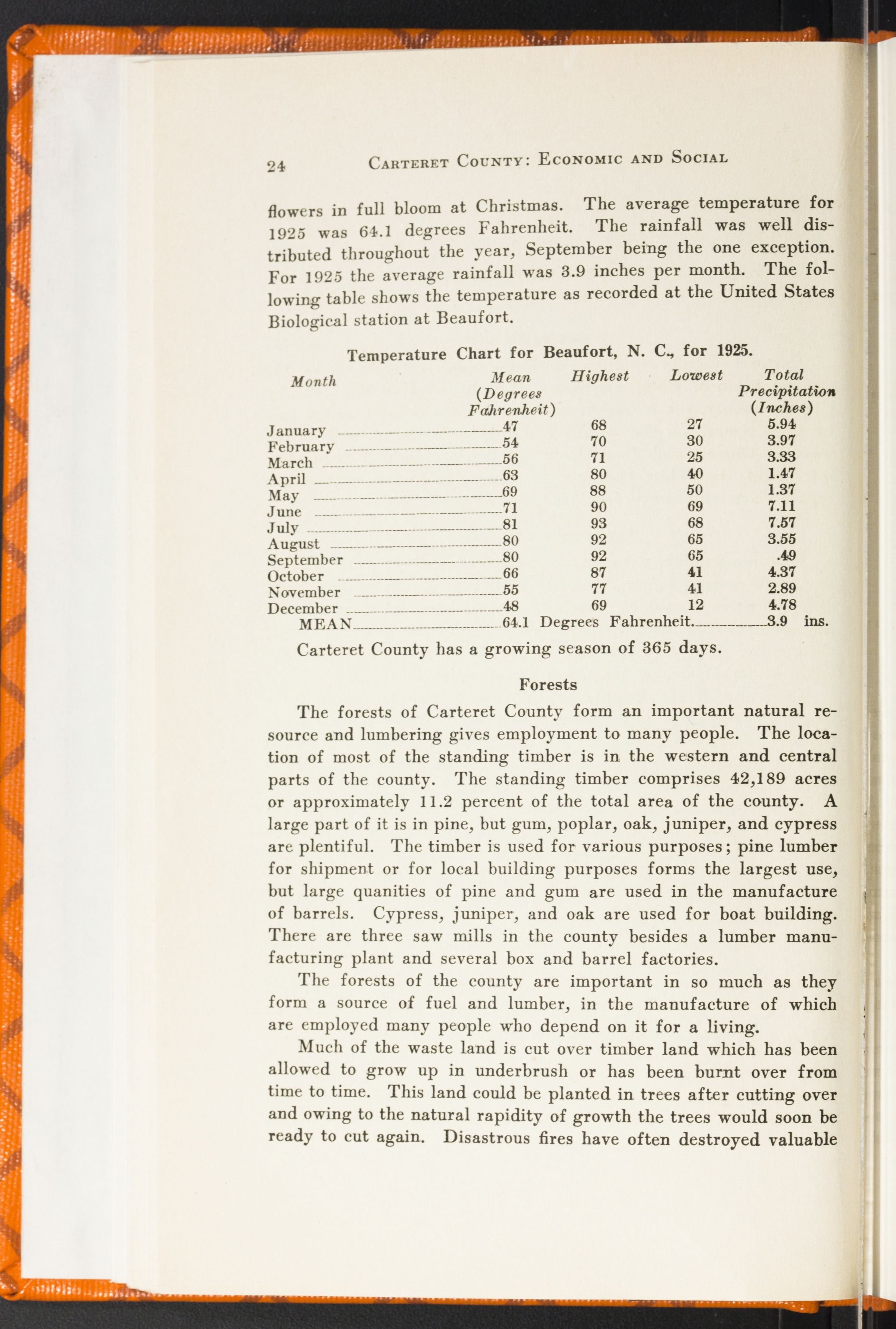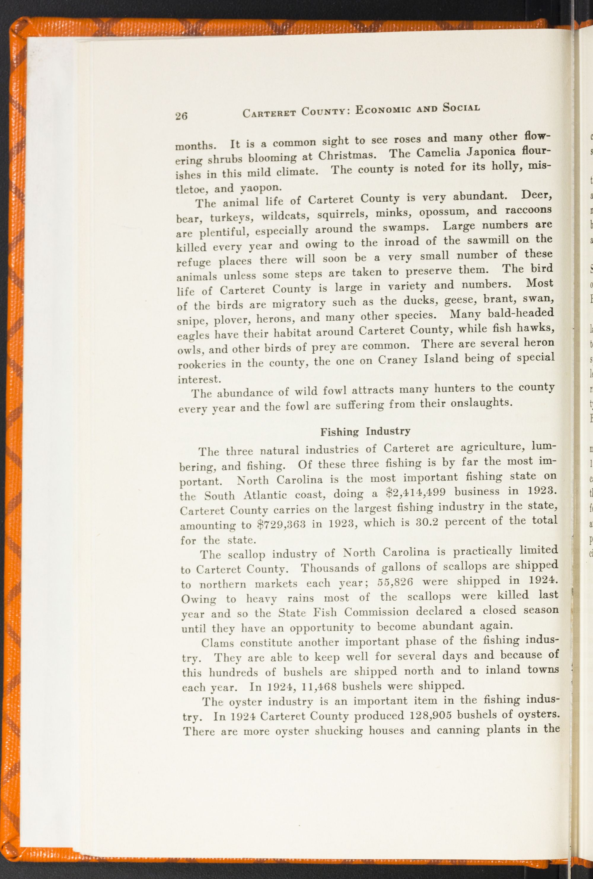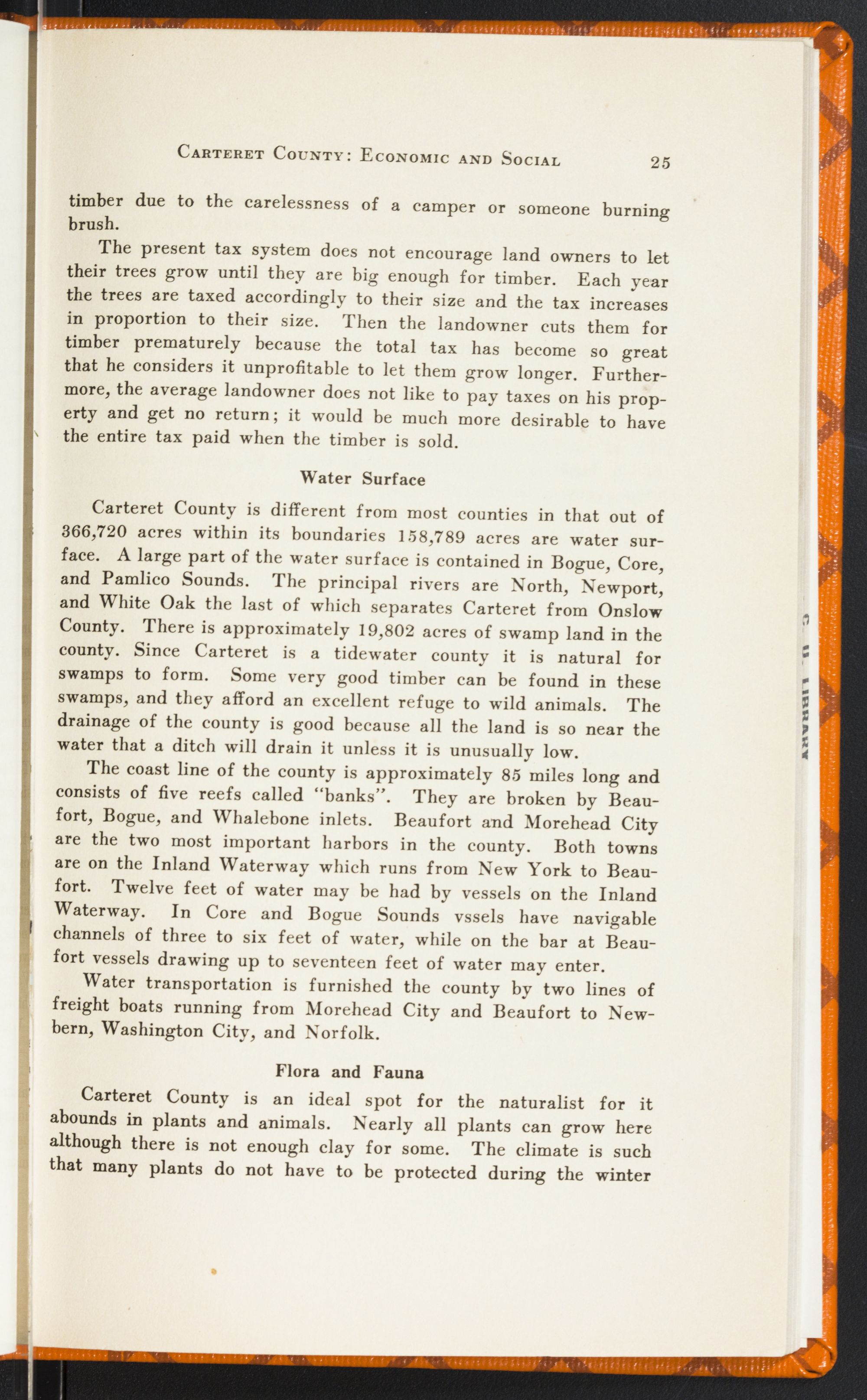 North Carolina in 1912 was cutting away her timber resources faster than thirty-eight other states. And in the six-year period between 1916 and 1921, $1,497,732 worth of timber in this State went up in forest fires. The rate of cut and fire damage is not available for Carteret County specifically, but it is safe to say that we are doing none too much in the way of sane conservation and preservation of our natural resources. Our forests are dwindling and how badly do we need a State-wide policy for their better protection.
