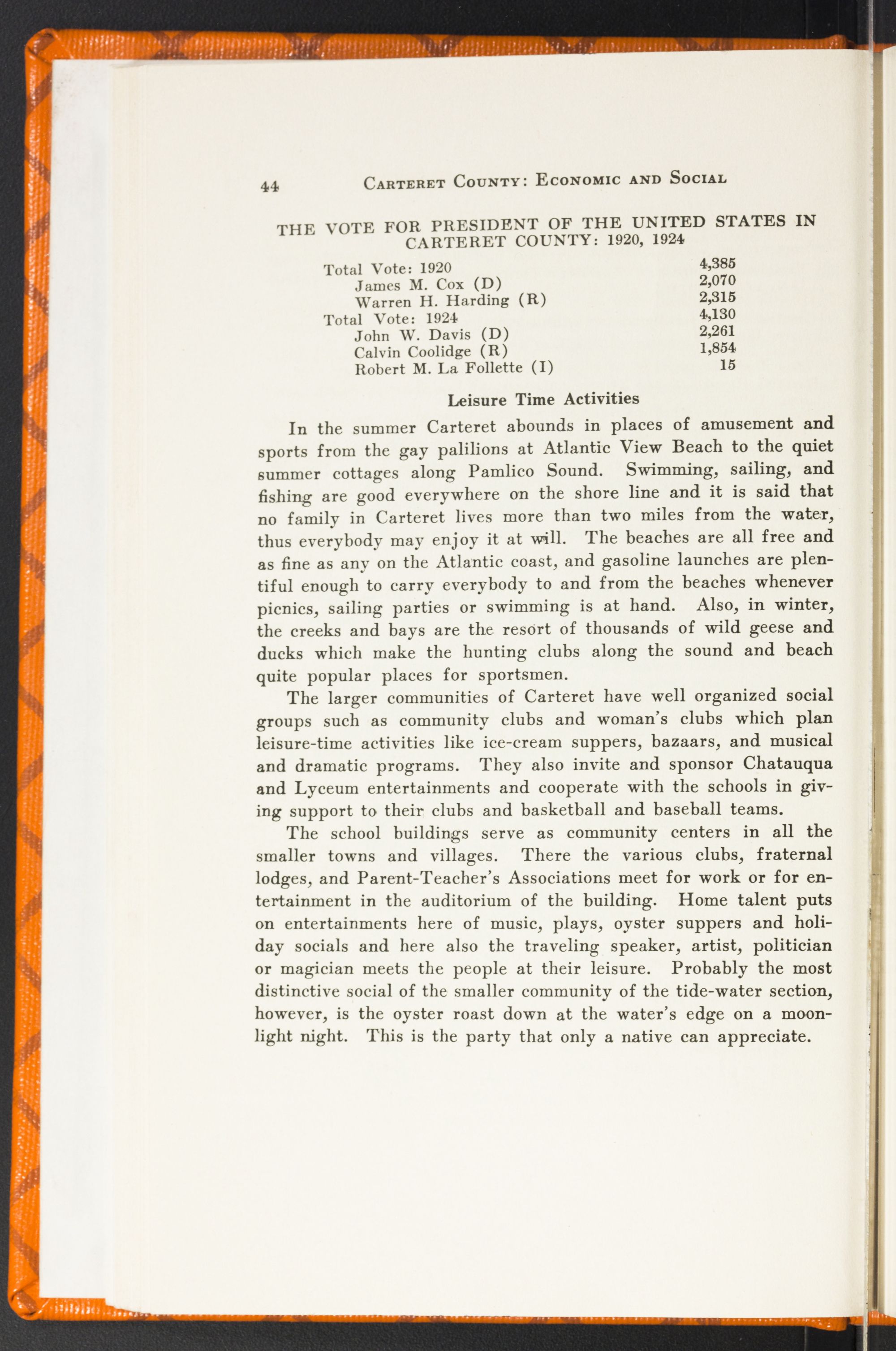 The two newspapers of the county, The Beaufort News, of Beaufort, and The Coaster, of Morehead City, are very progressive and do a great deal for the betterment and advancement